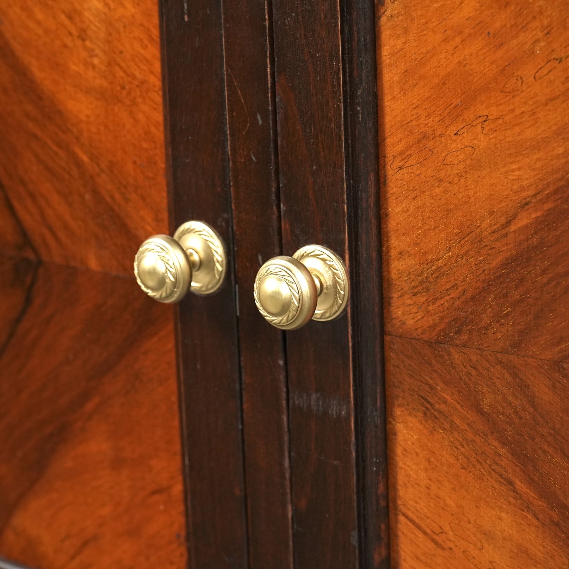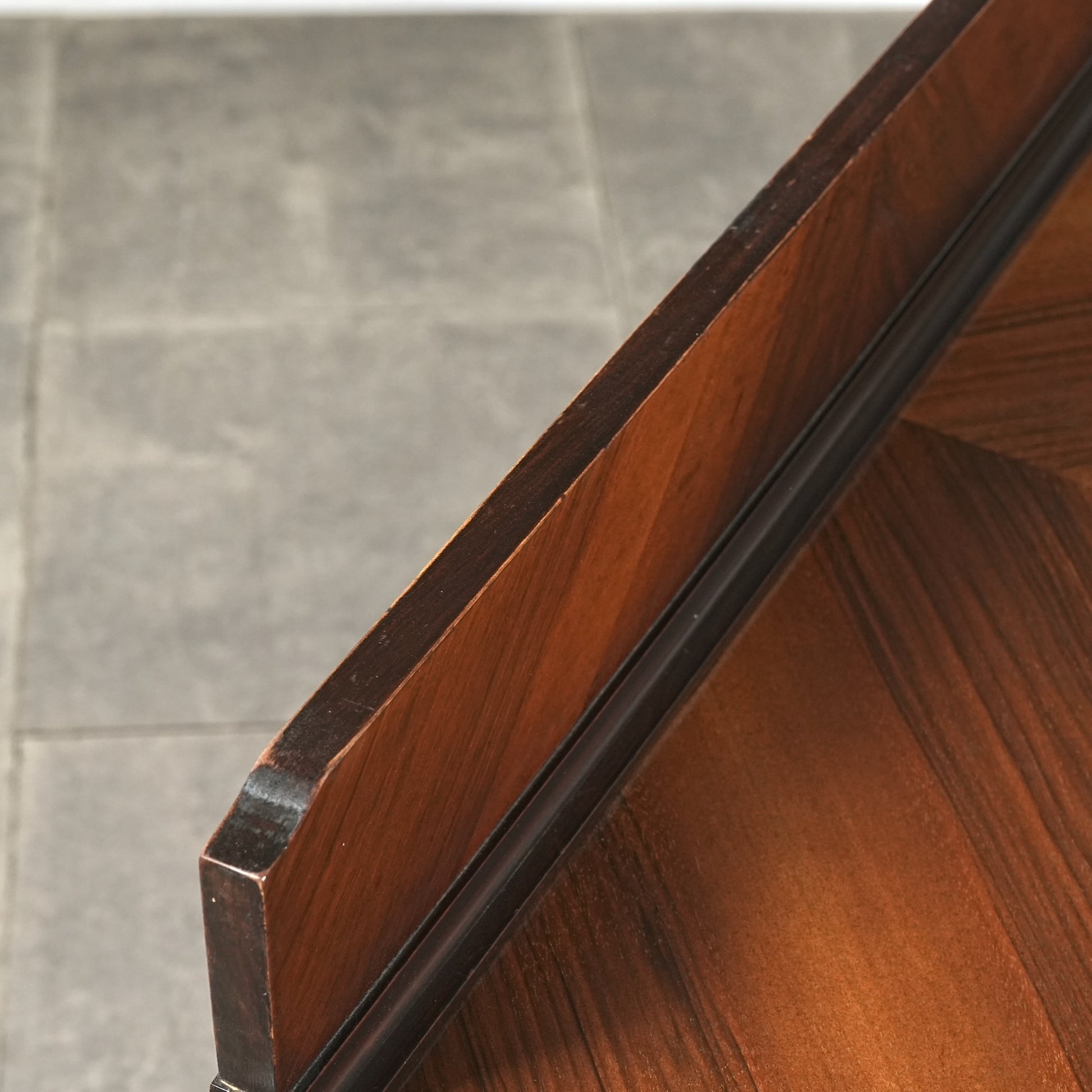 良質なウォルナットを使用した寄木細工の美しいパターンが存在感を放つ一台です。