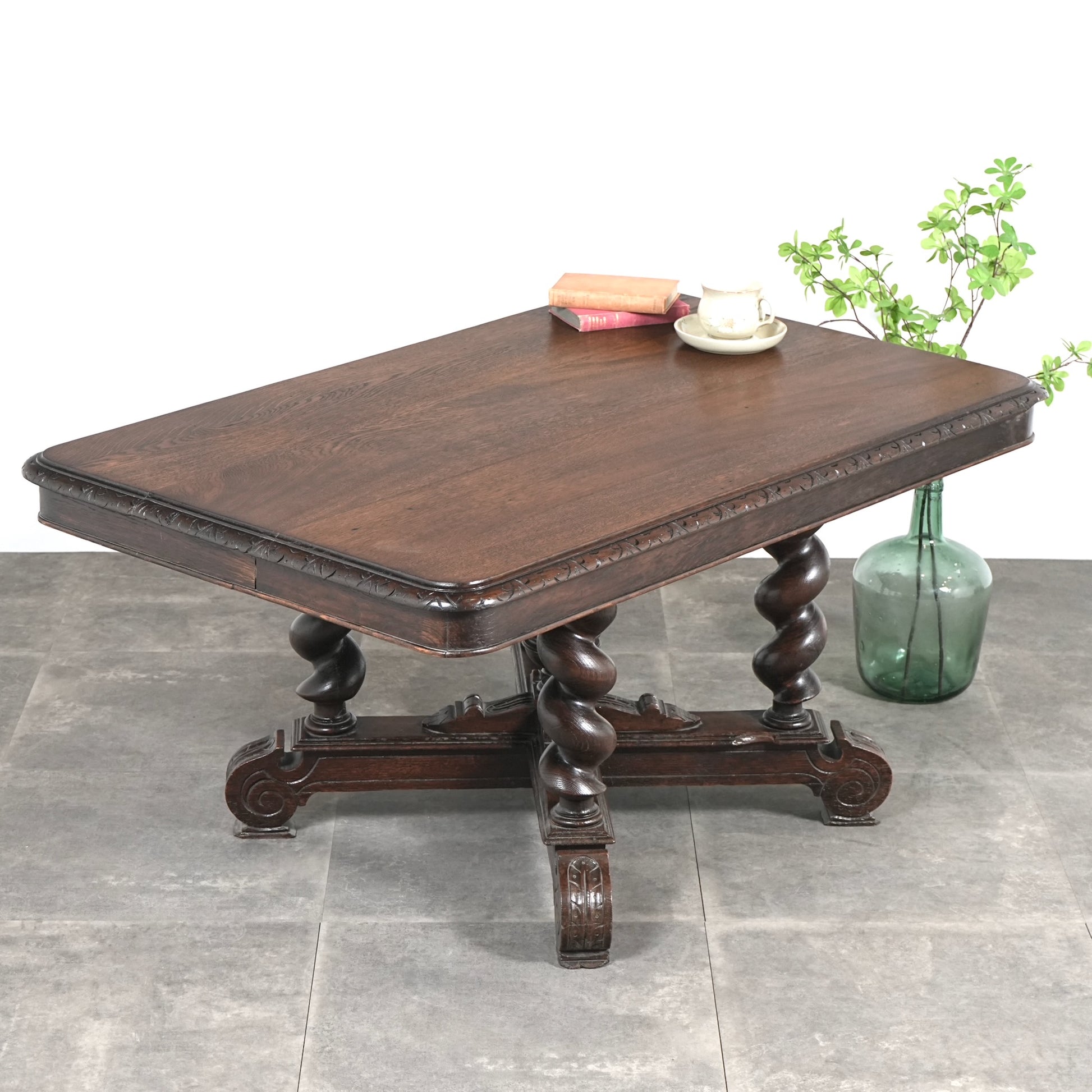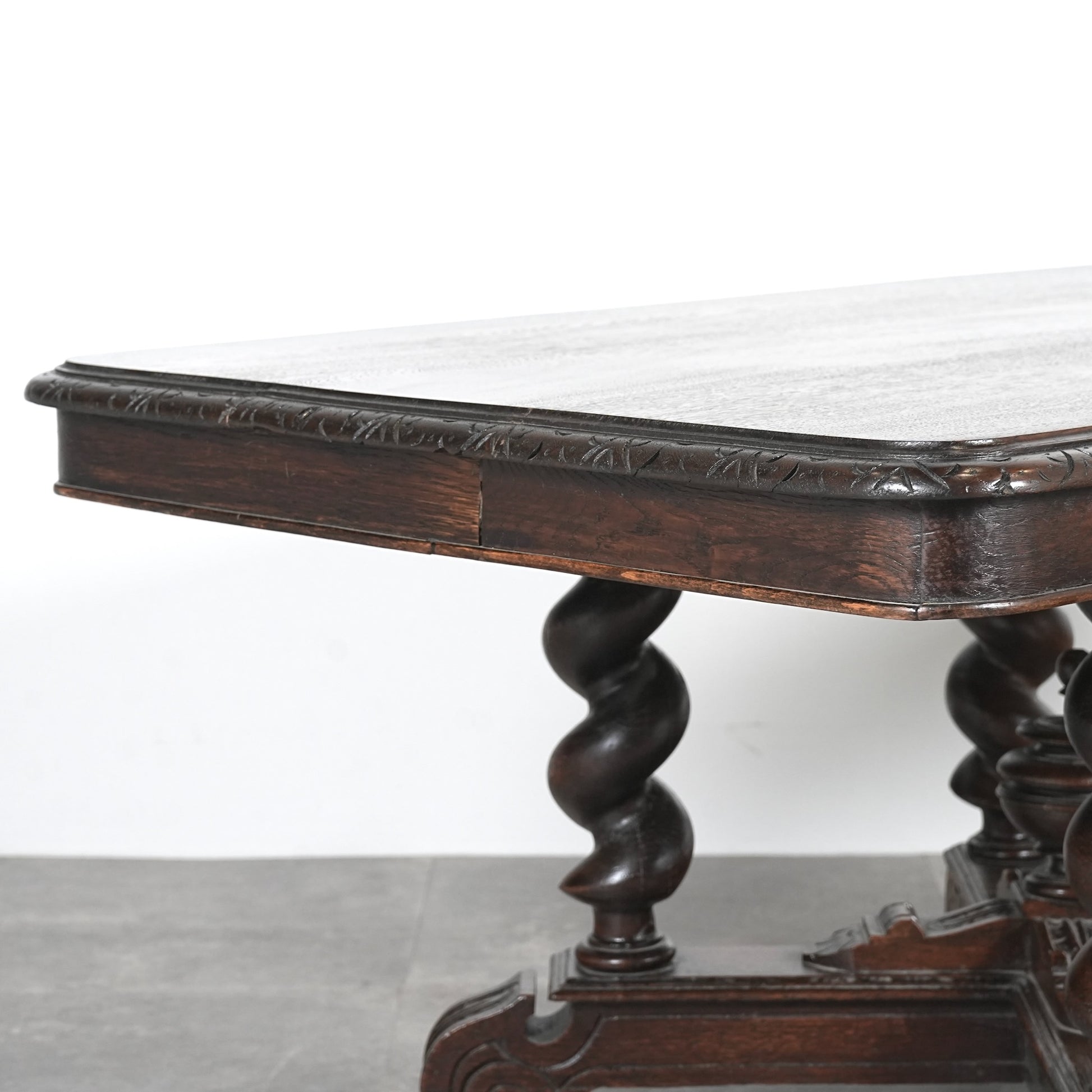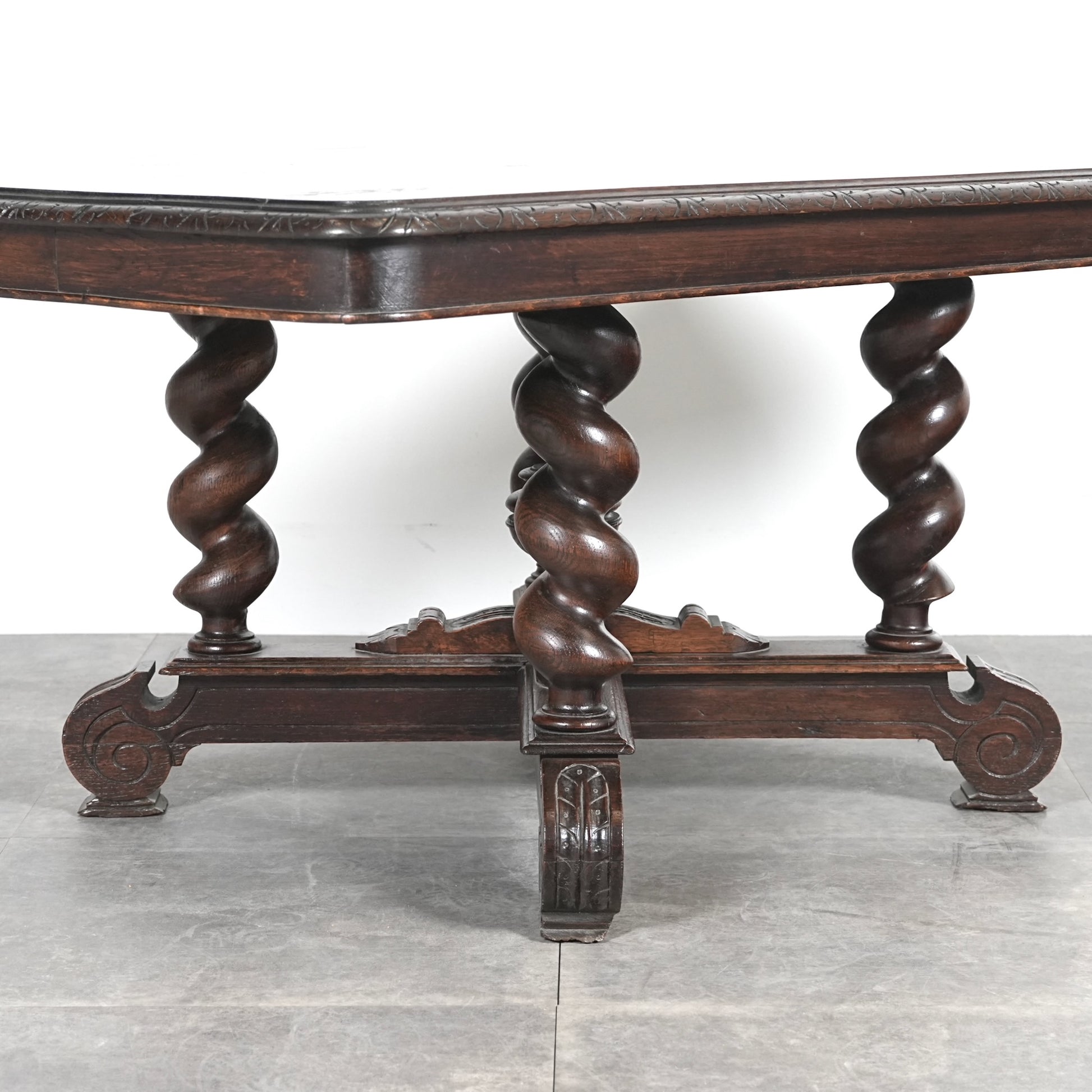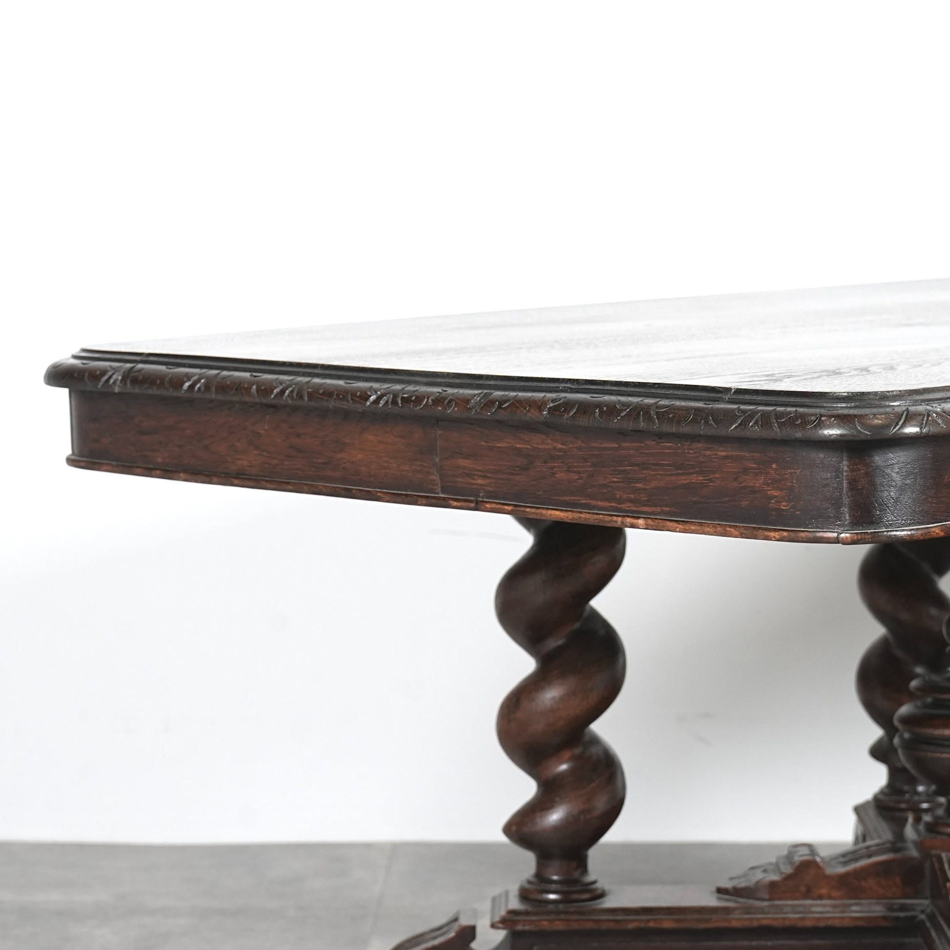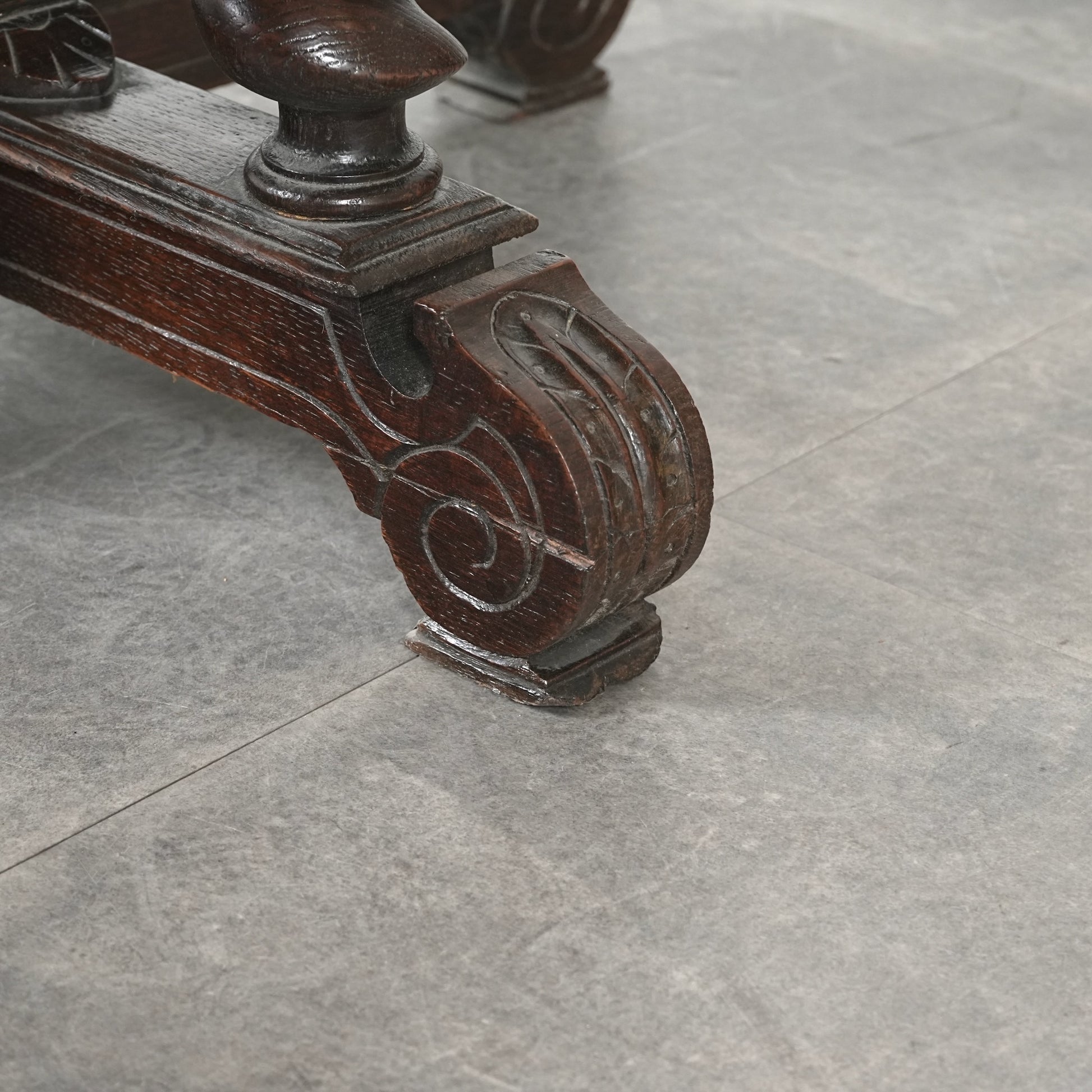 上質なオーク材の重厚な質感に加えて、美しい脚部の意匠はまさに圧巻で、当時の職人の技術力と多大な労力が伝わってくるハイグレードな一台です。
