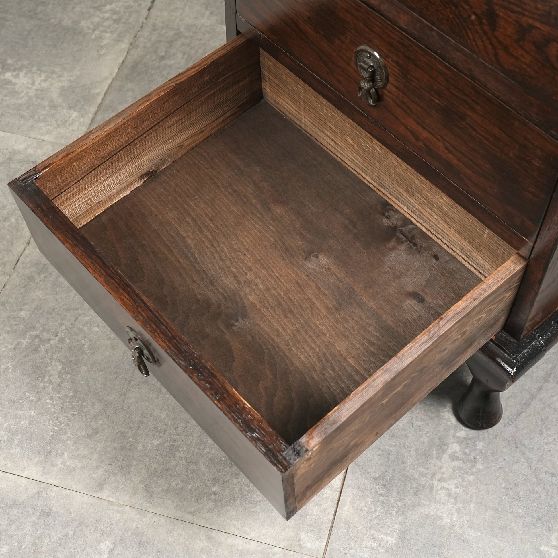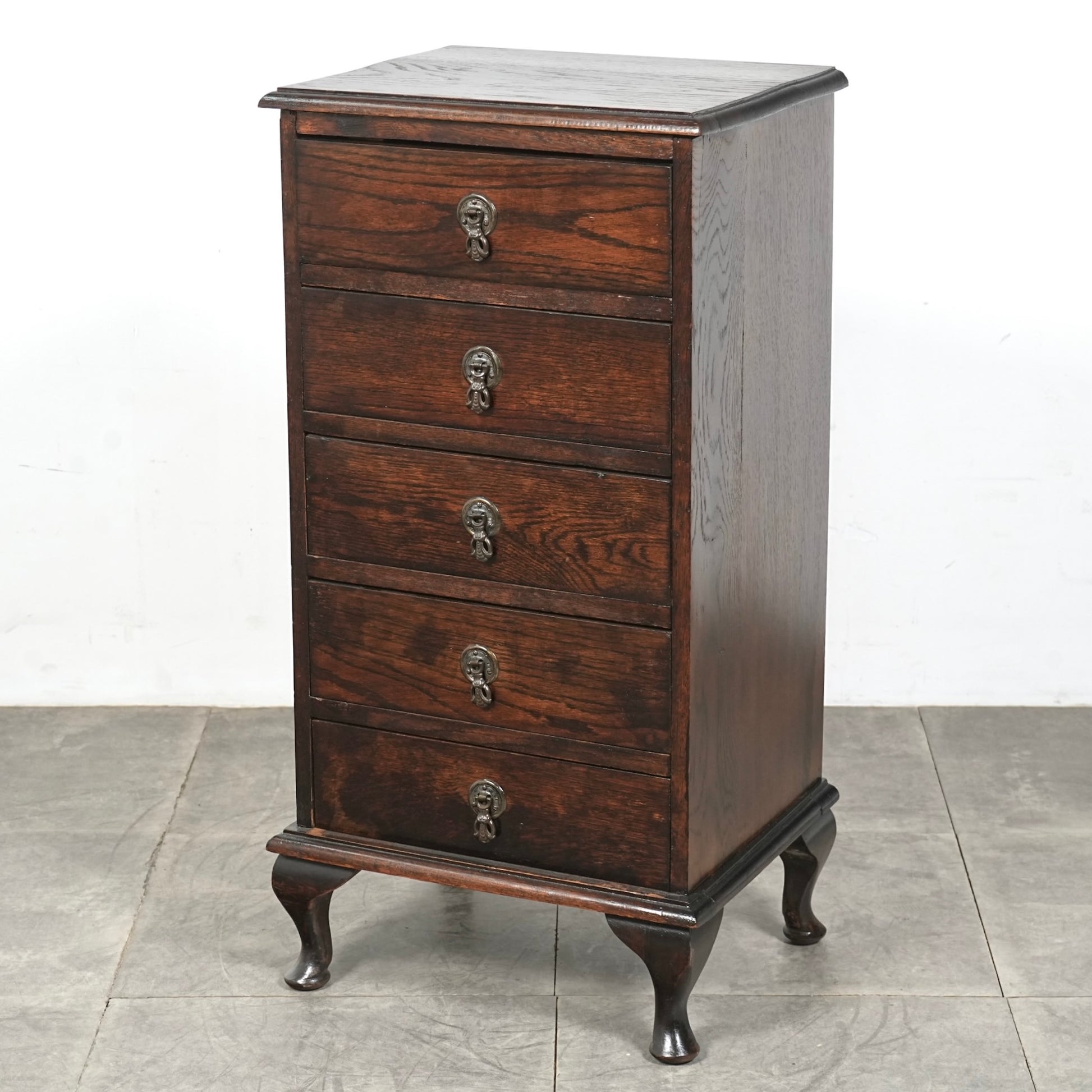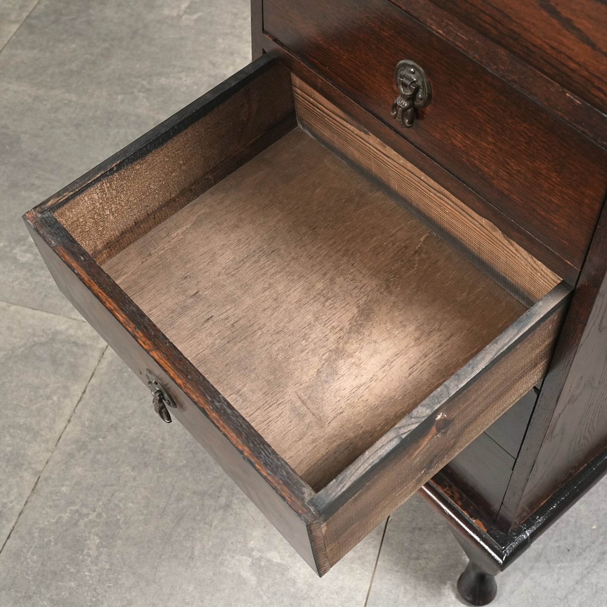良質なオーク材の見事な木目と質感を感じられる上品な佇まいで、クラシカルな取手や猫脚も可愛らしく、その主張しすぎないデザインが、素材やディテールの美しさと作りの丁寧さを際立たせています。