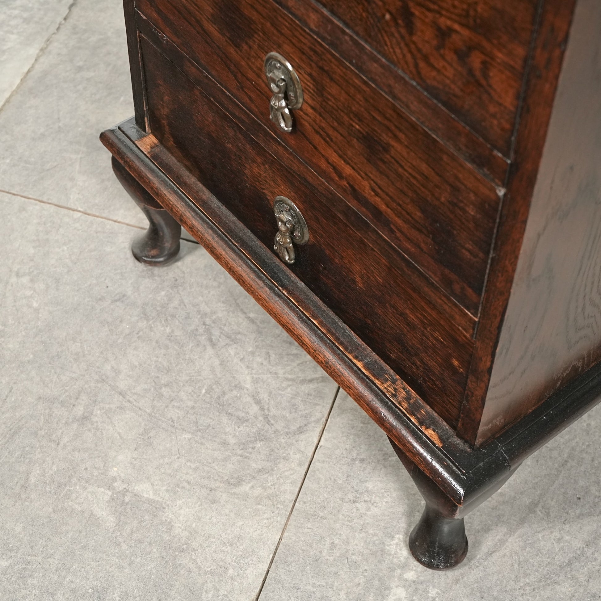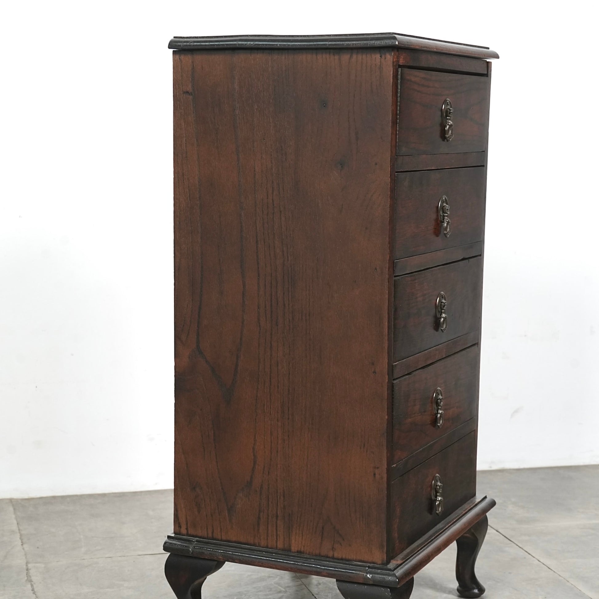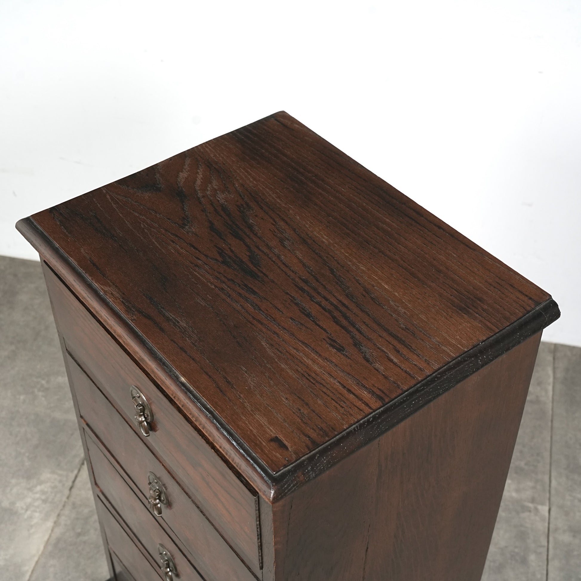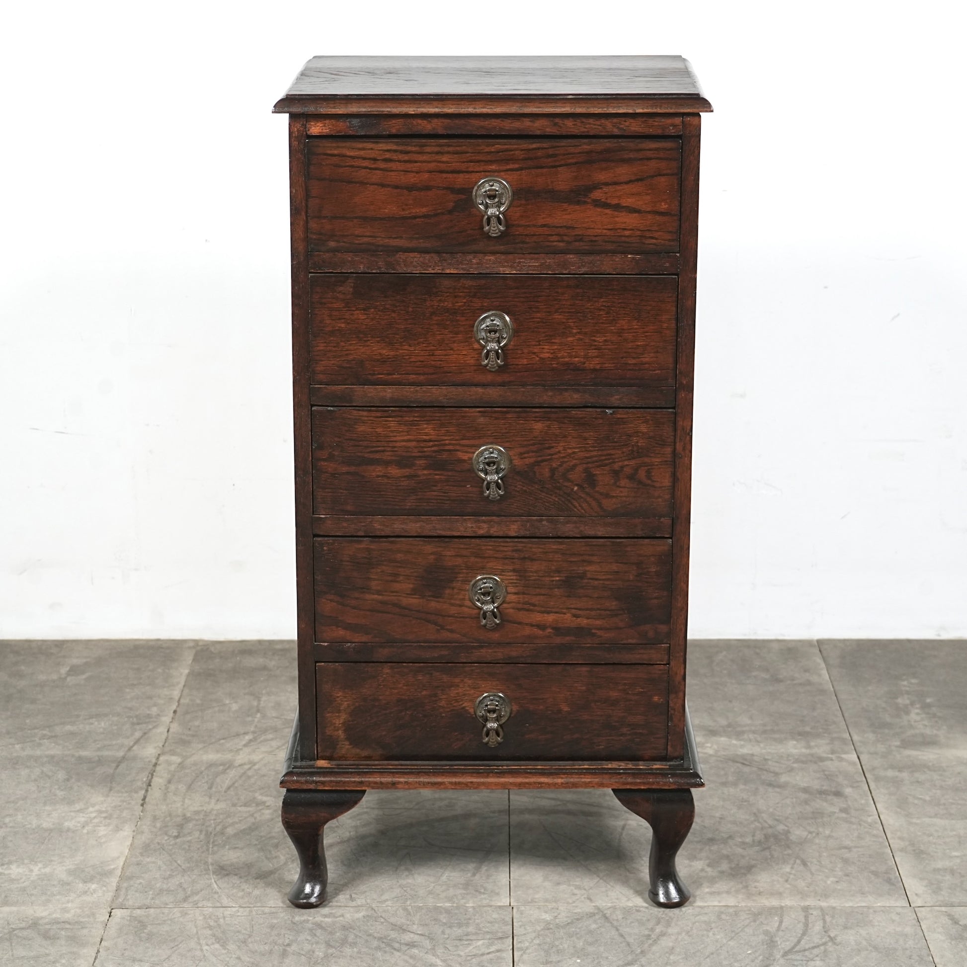 良質なオーク材の見事な木目と質感を感じられる上品な佇まいで、クラシカルな取手や猫脚も可愛らしく、その主張しすぎないデザインが、素材やディテールの美しさと作りの丁寧さを際立たせています。