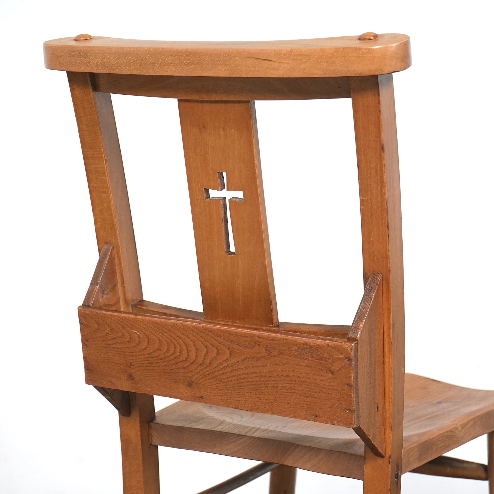 こちらのチャーチチェアは十字架の意匠と聖書を入れるポケットが備えられたモデル。
