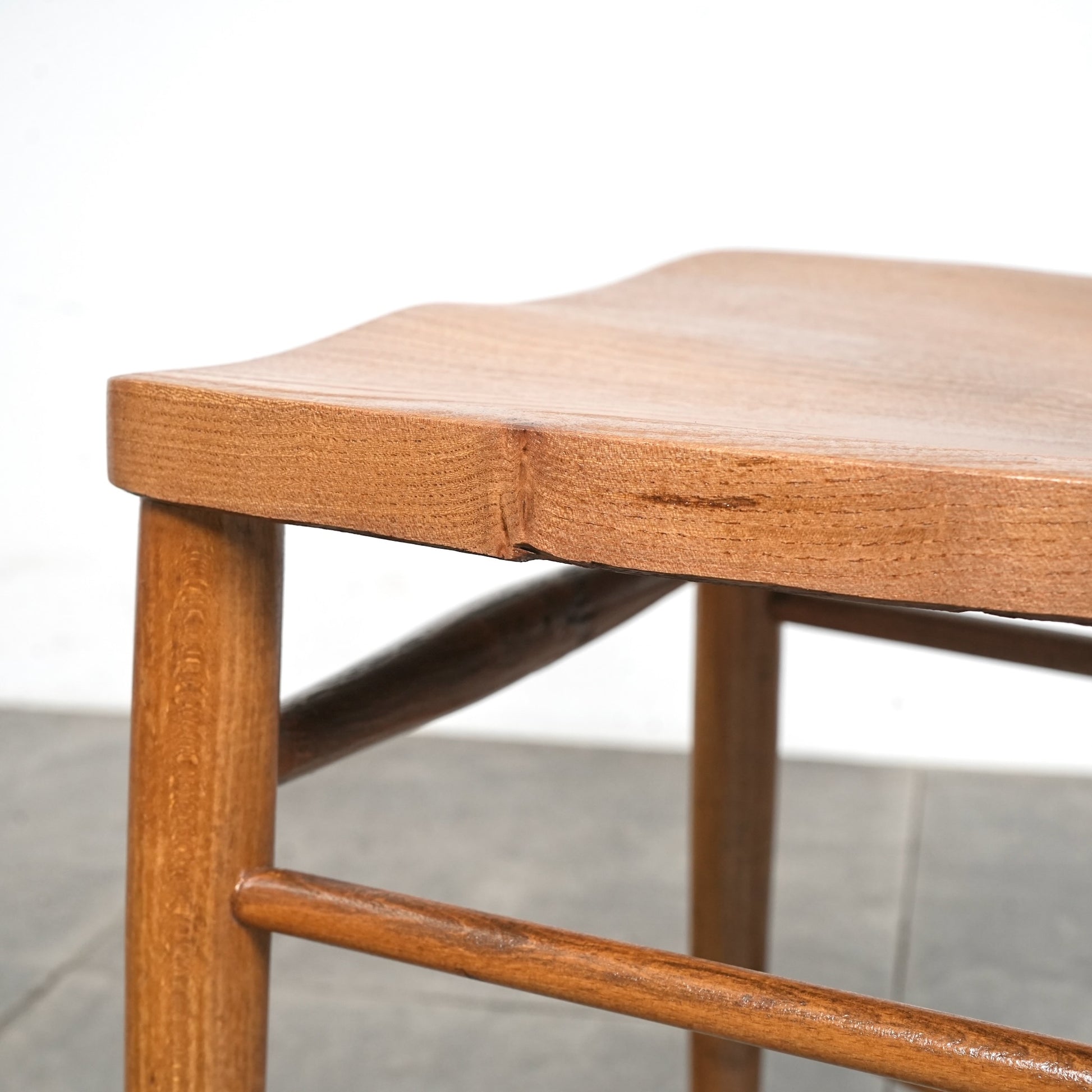 エルム材の柔らかな質感と美しい木目が印象的な座面は、教会で長時間座っていられるようにお尻の形状に合わせた丁寧な座ぐりが施されています。