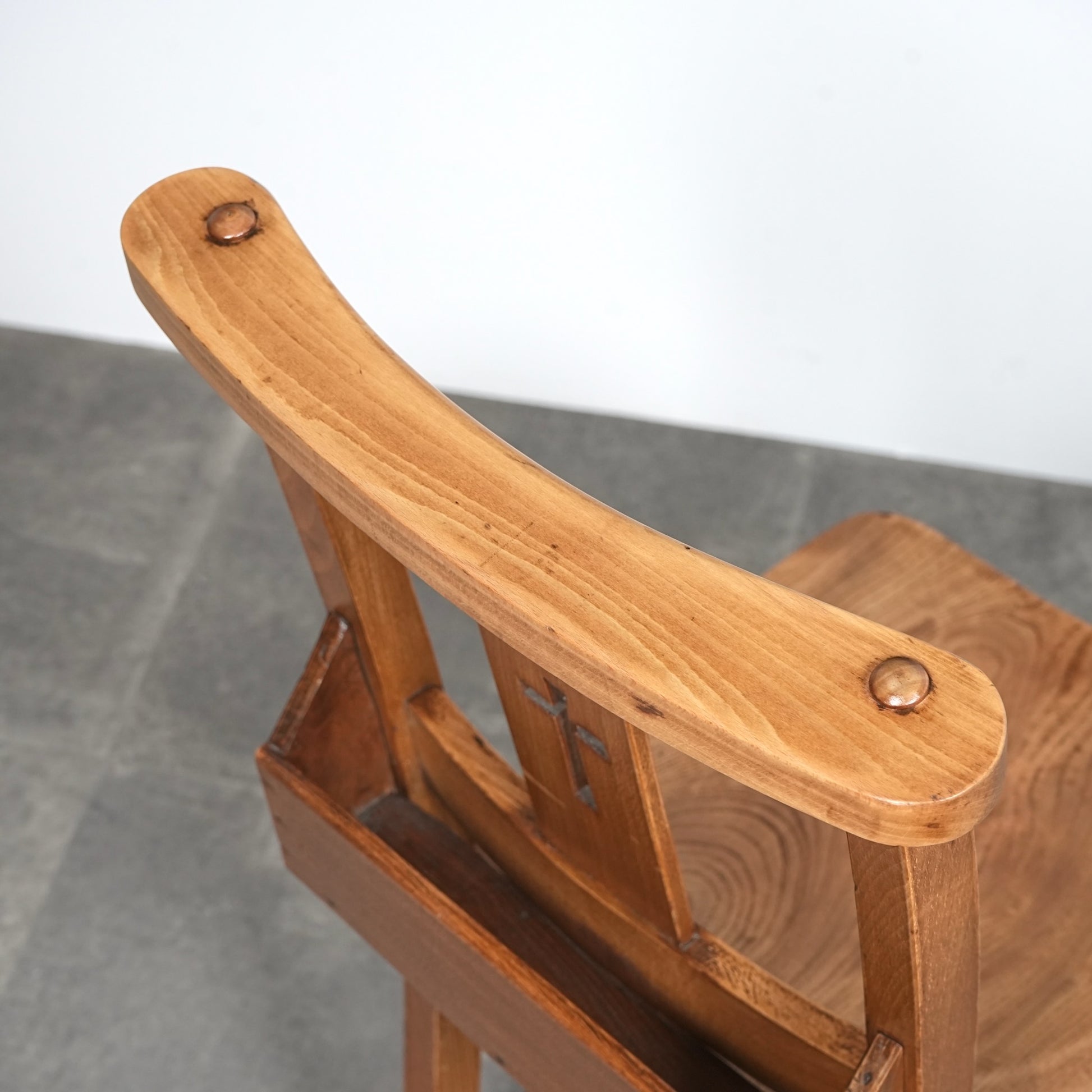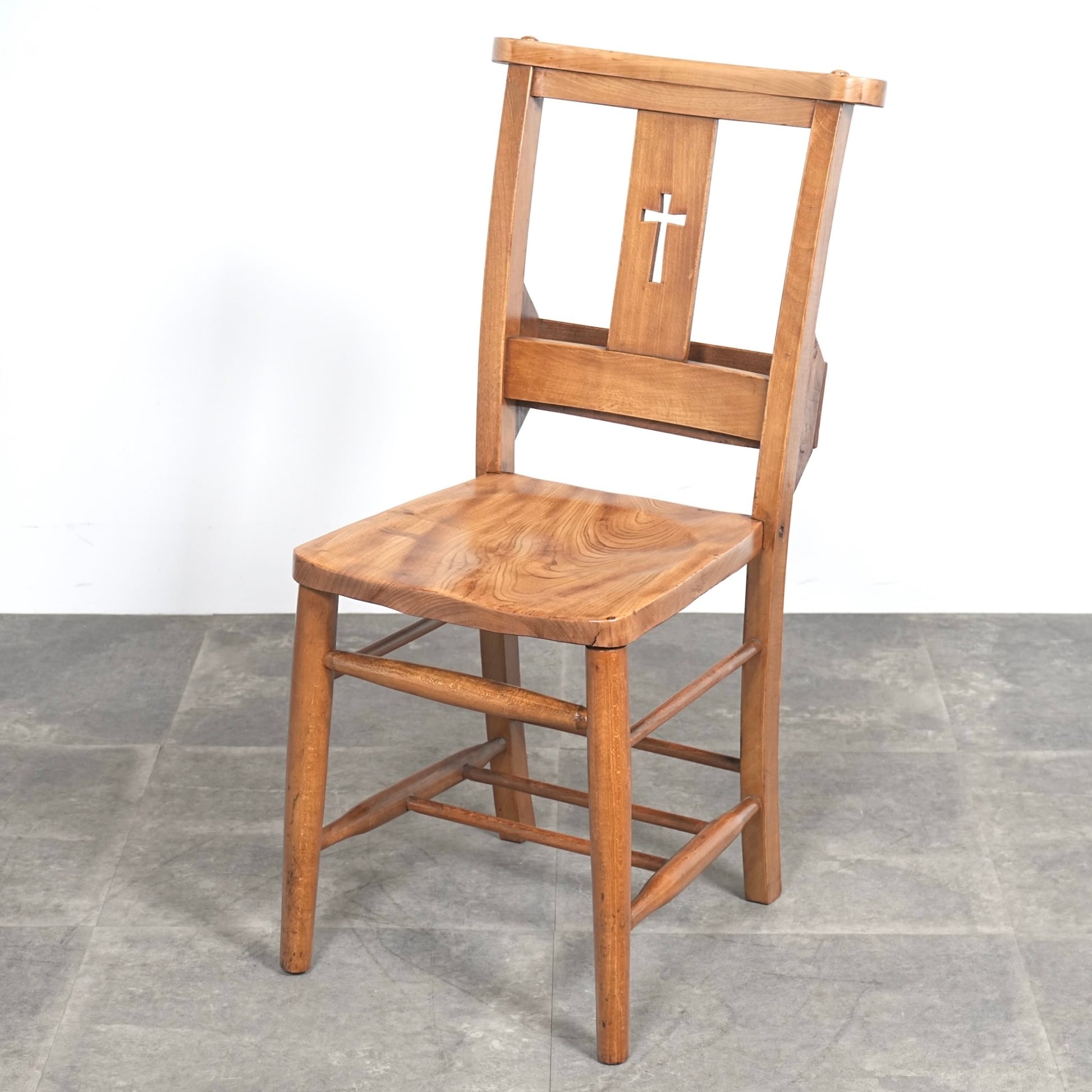 推定年代1930年〜1940年代頃、英国アンティークのチャーチチェア。