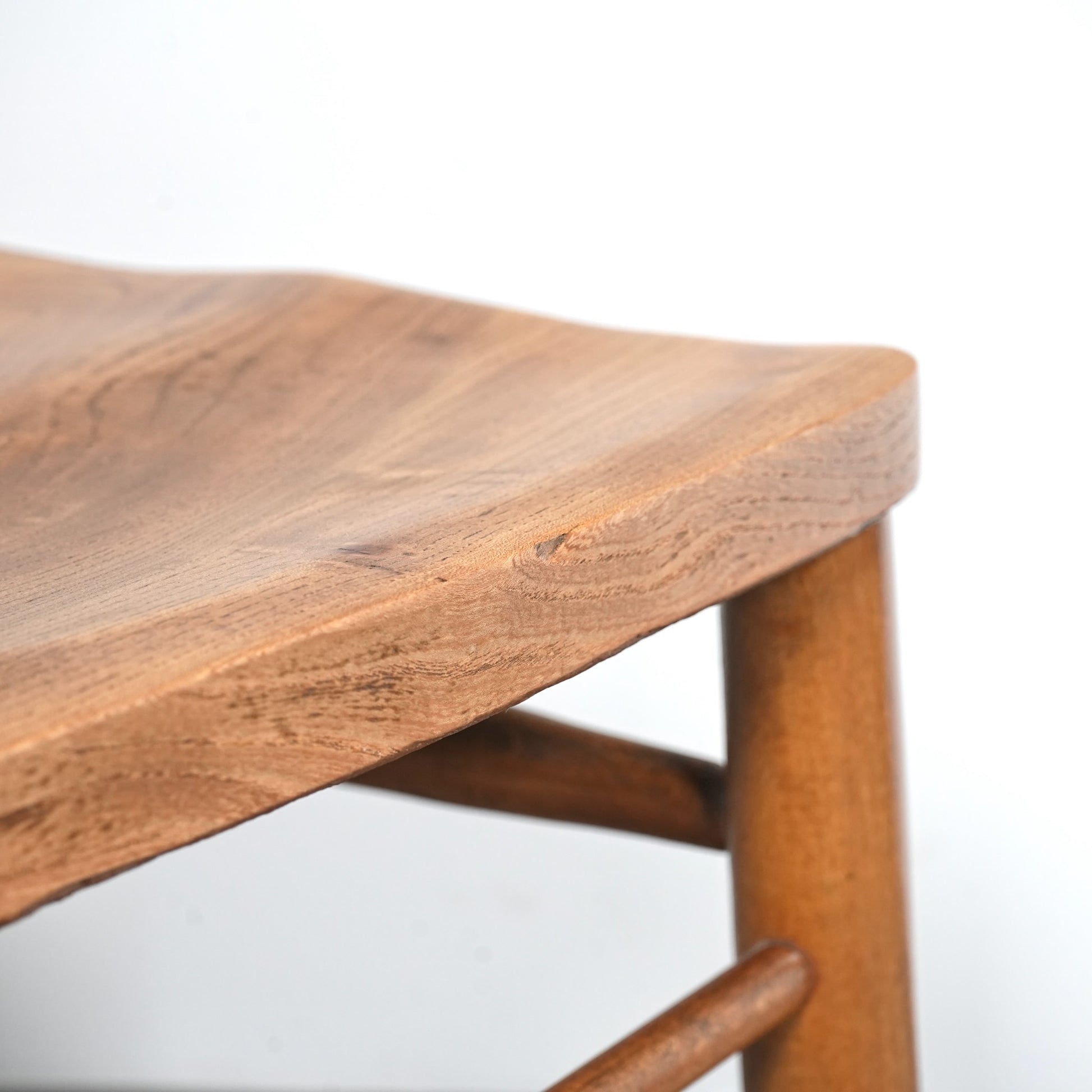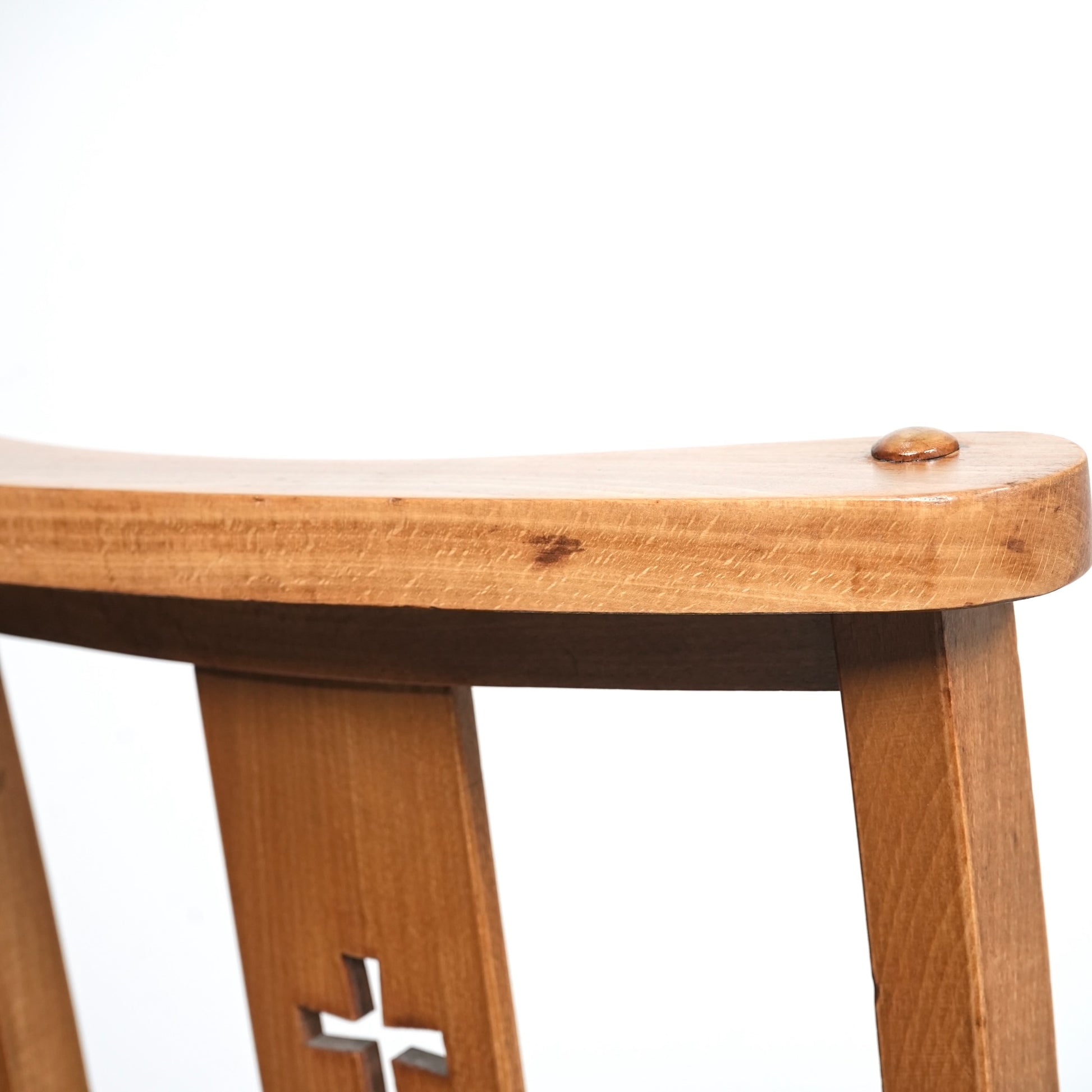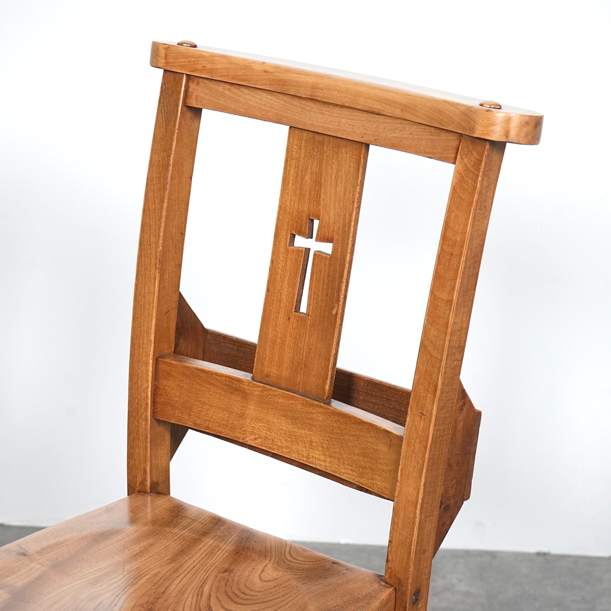 エルム材の柔らかな質感と美しい木目が印象的な座面は、教会で長時間座っていられるようにお尻の形状に合わせた丁寧な座ぐりが施されています。