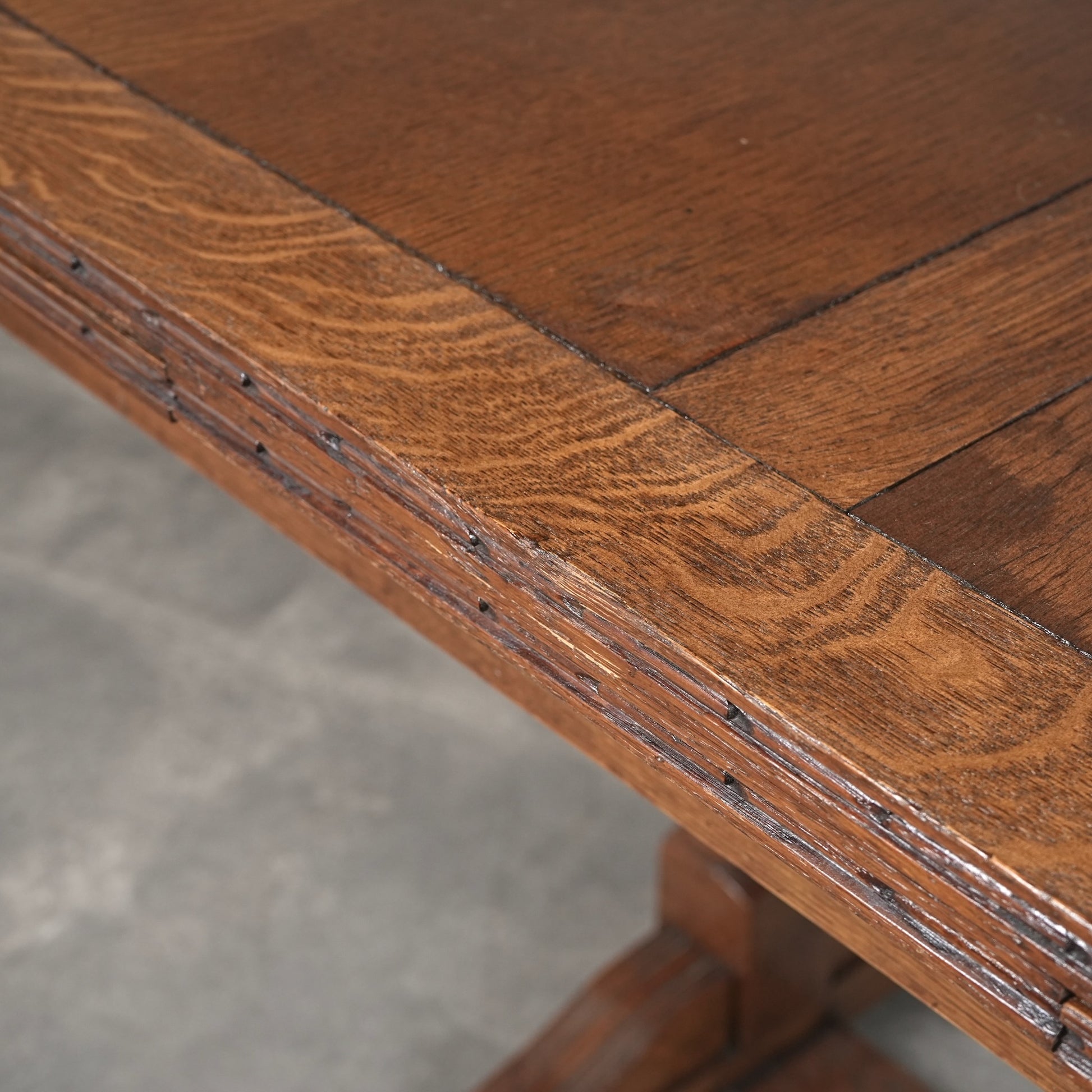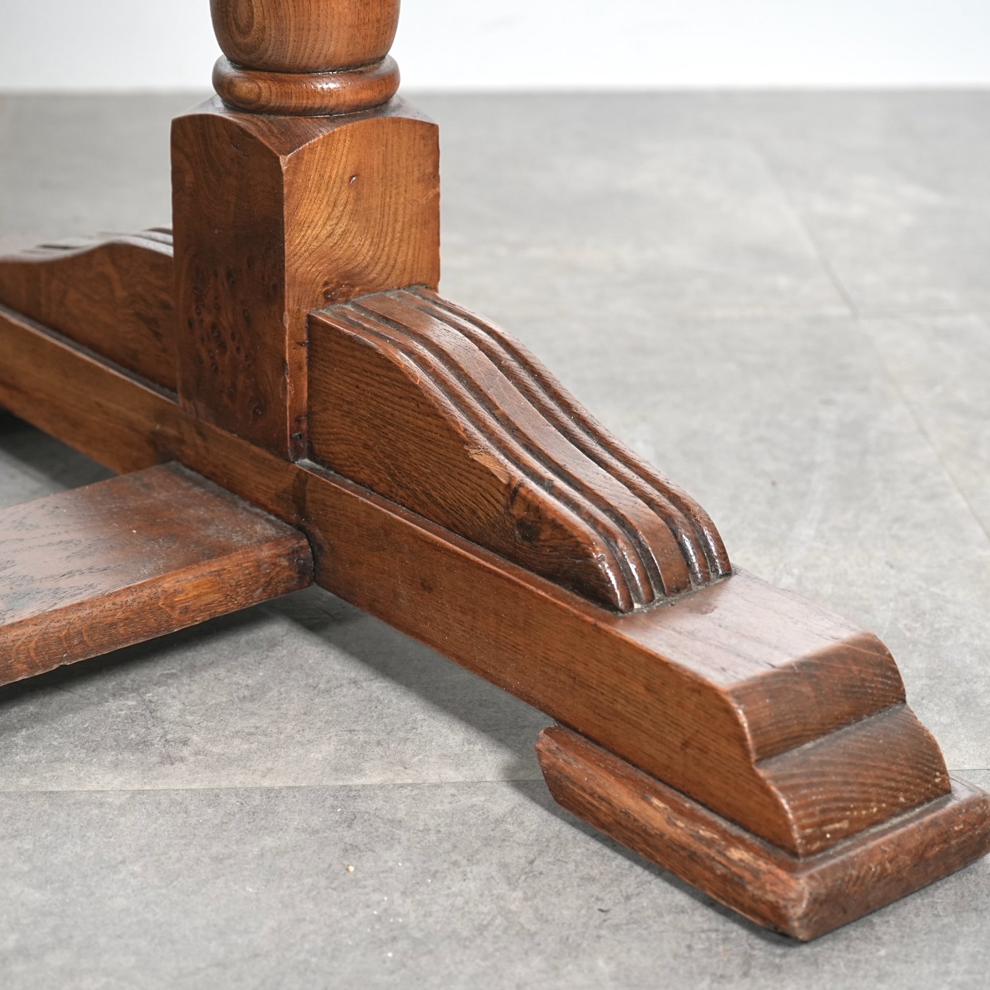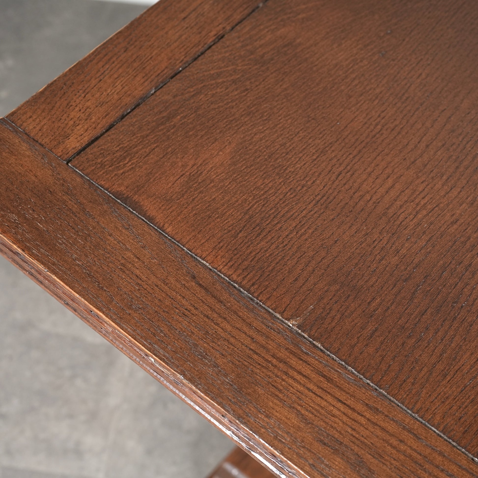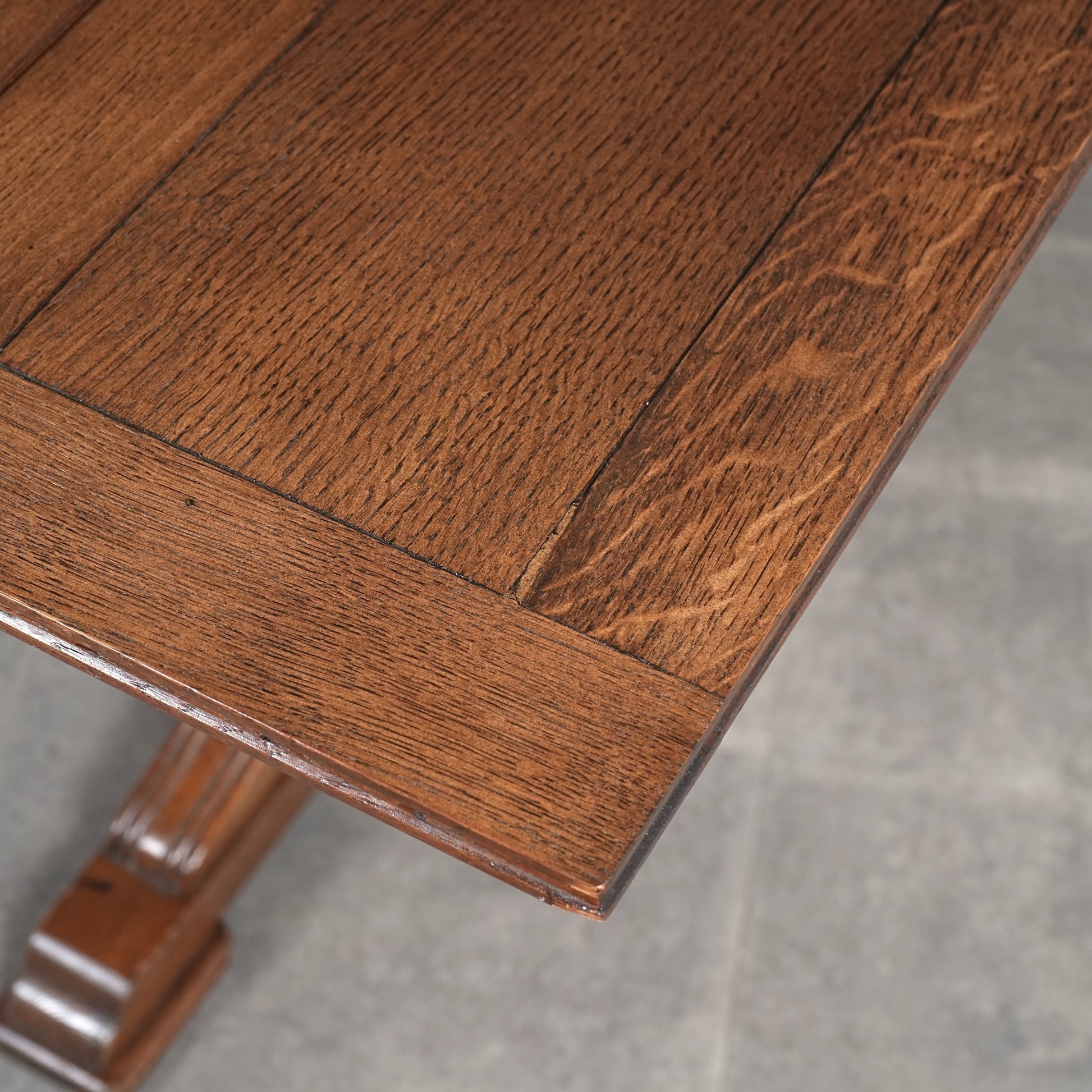 英国アンティークらしい良質なオーク材の木目と質感が見事で、脚部のバルボスレッグは主張しすぎない控えめなバランス。