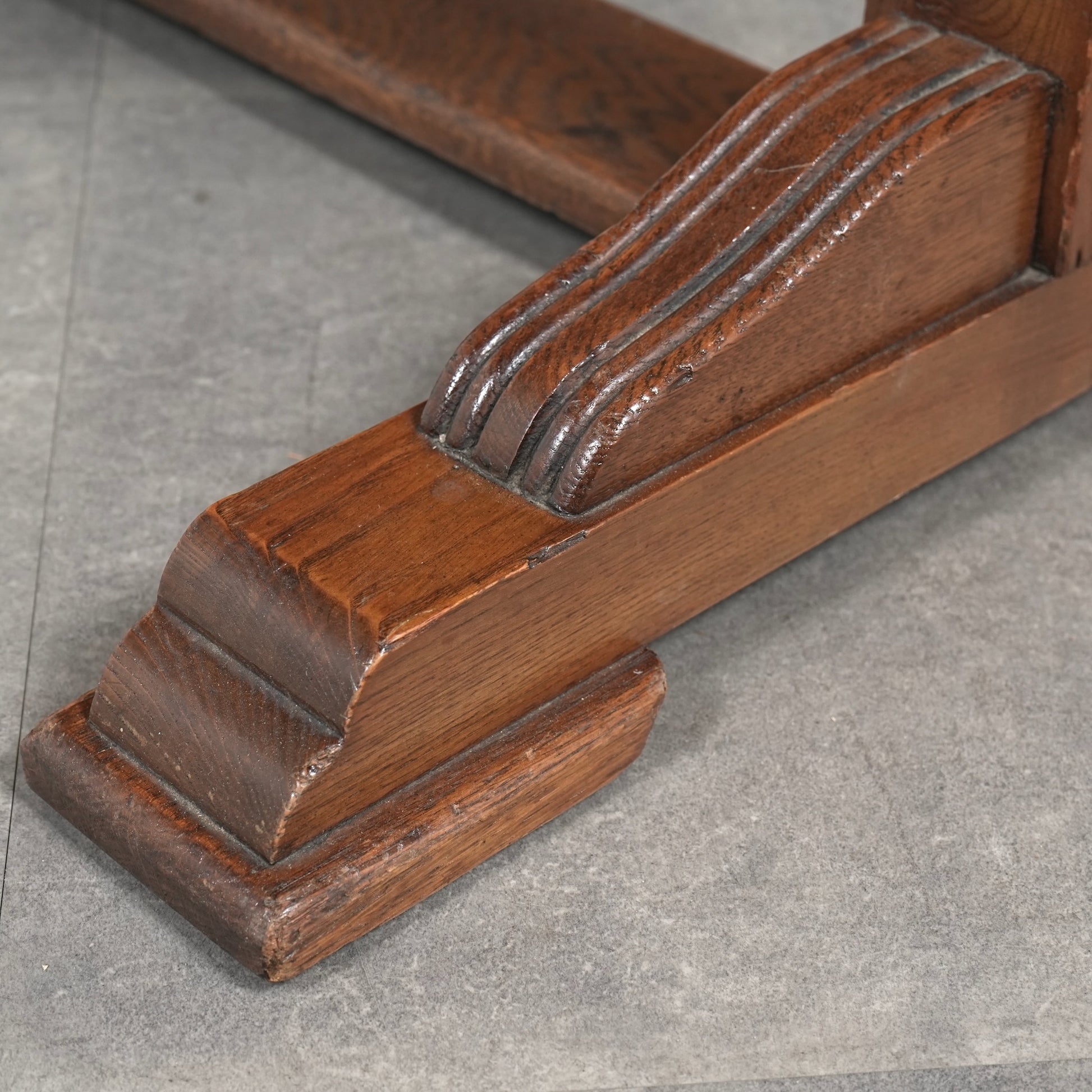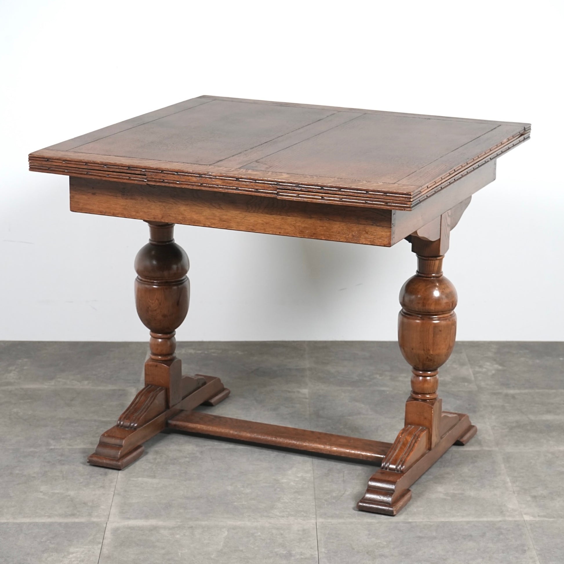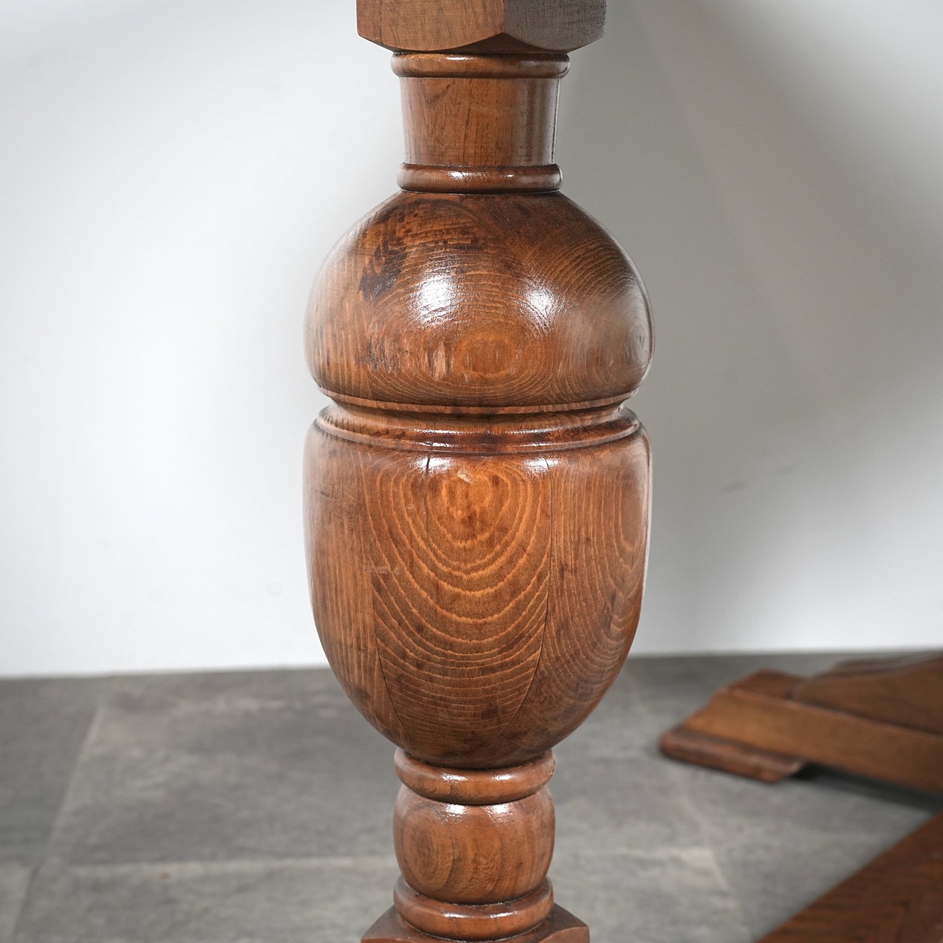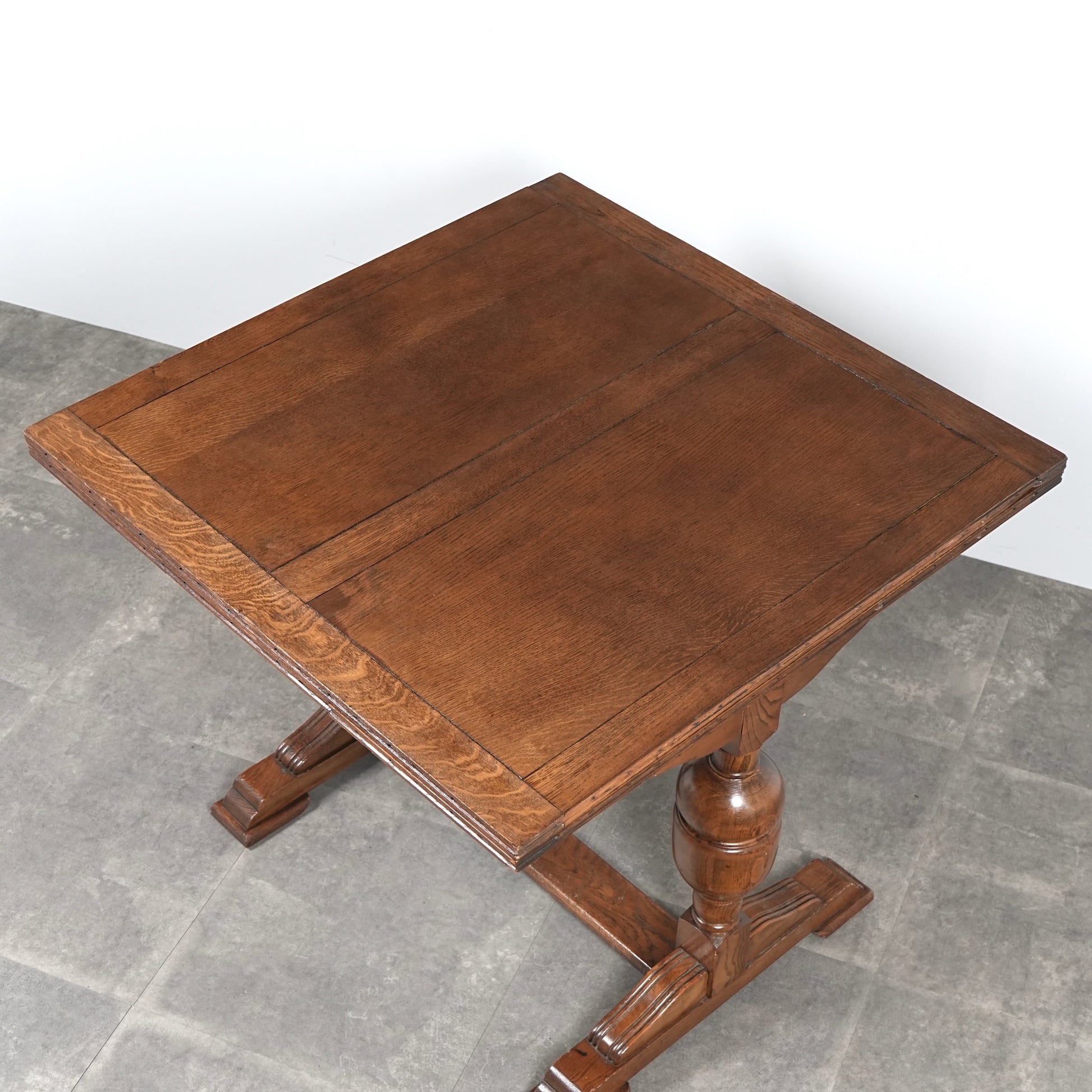 英国アンティークらしい良質なオーク材の木目と質感が見事で、脚部のバルボスレッグは主張しすぎない控えめなバランス。