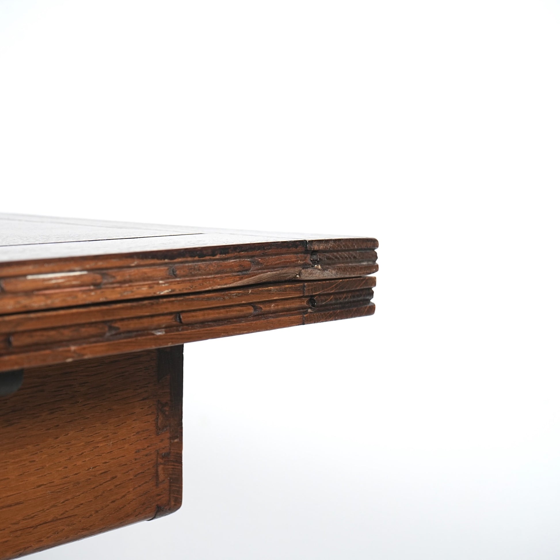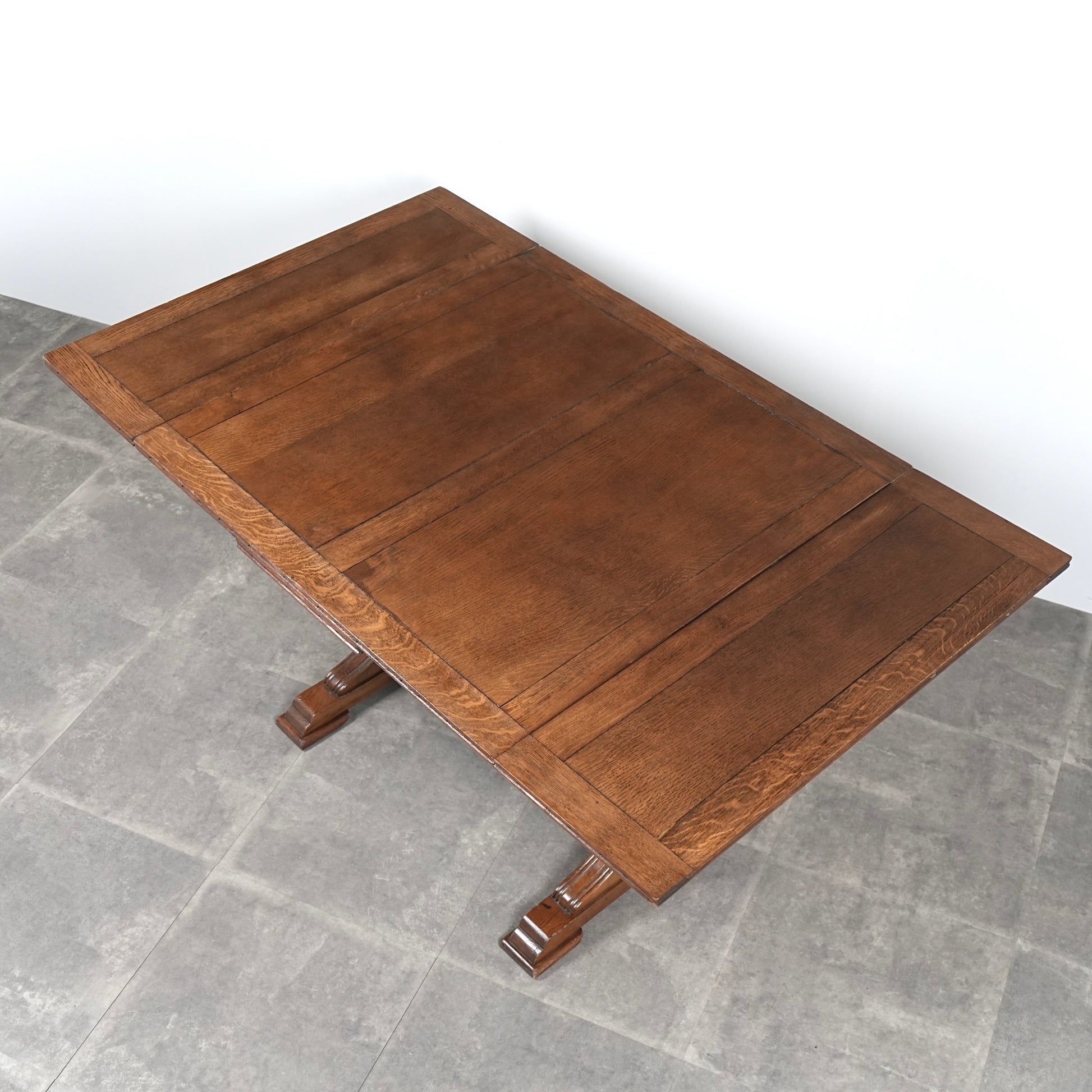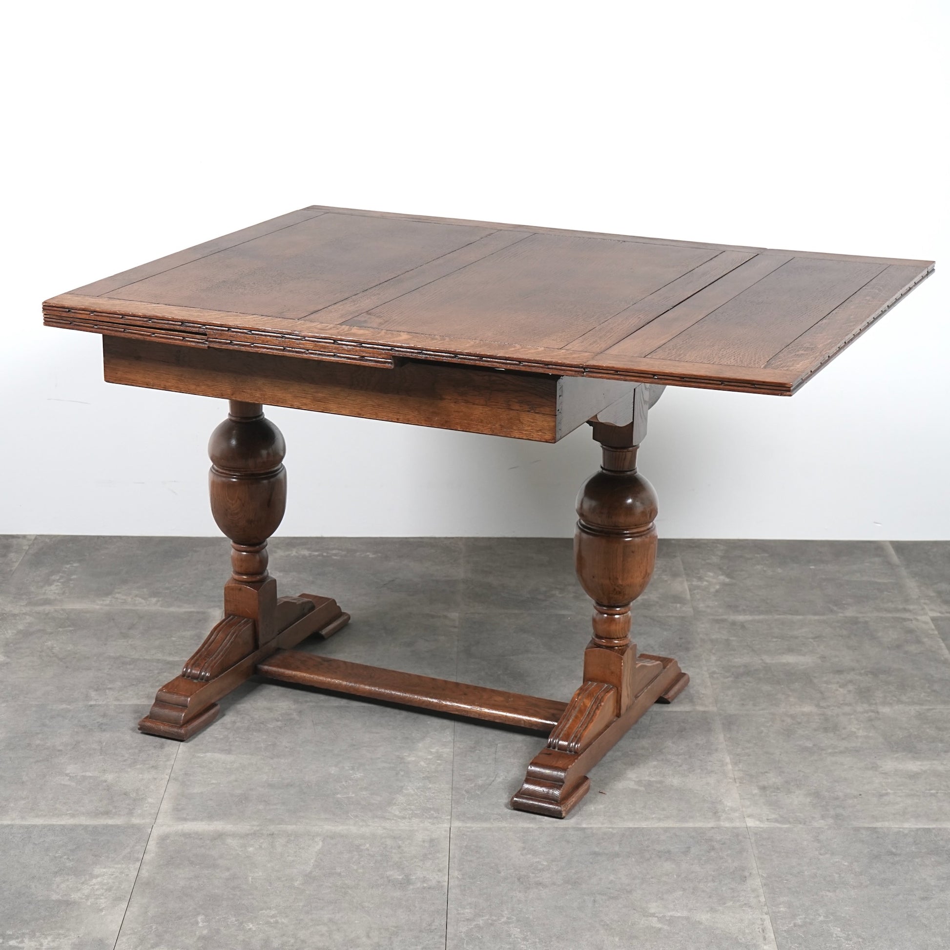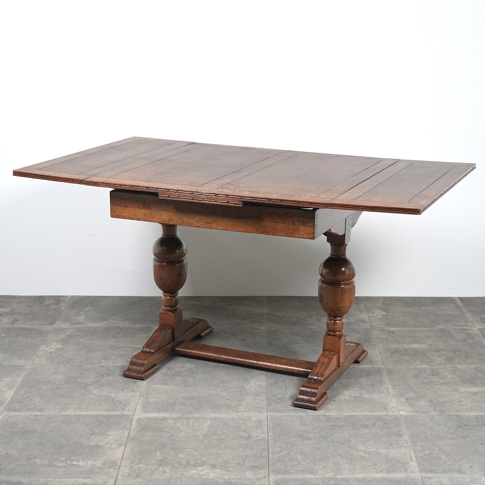 アンティーク&ヴィンテージの大定番アイテムとして世界中で愛されるアイテムの1つで、ドローリーフとは天板を拡張する際に軽く持ち上げて下の拡張板を引き出すと上の天板が沈みフラットになる仕組みです。