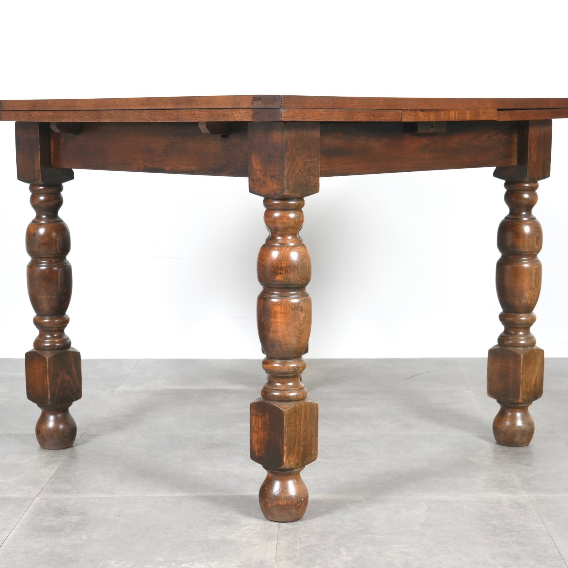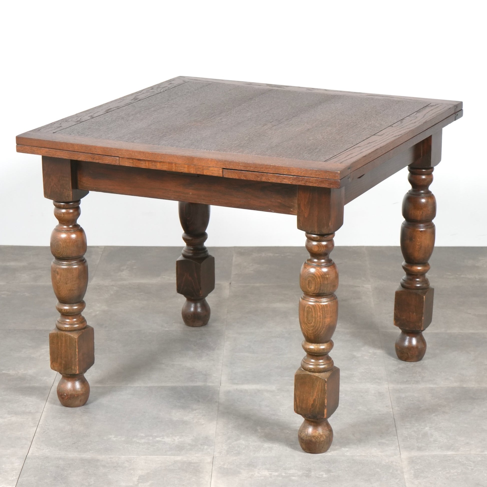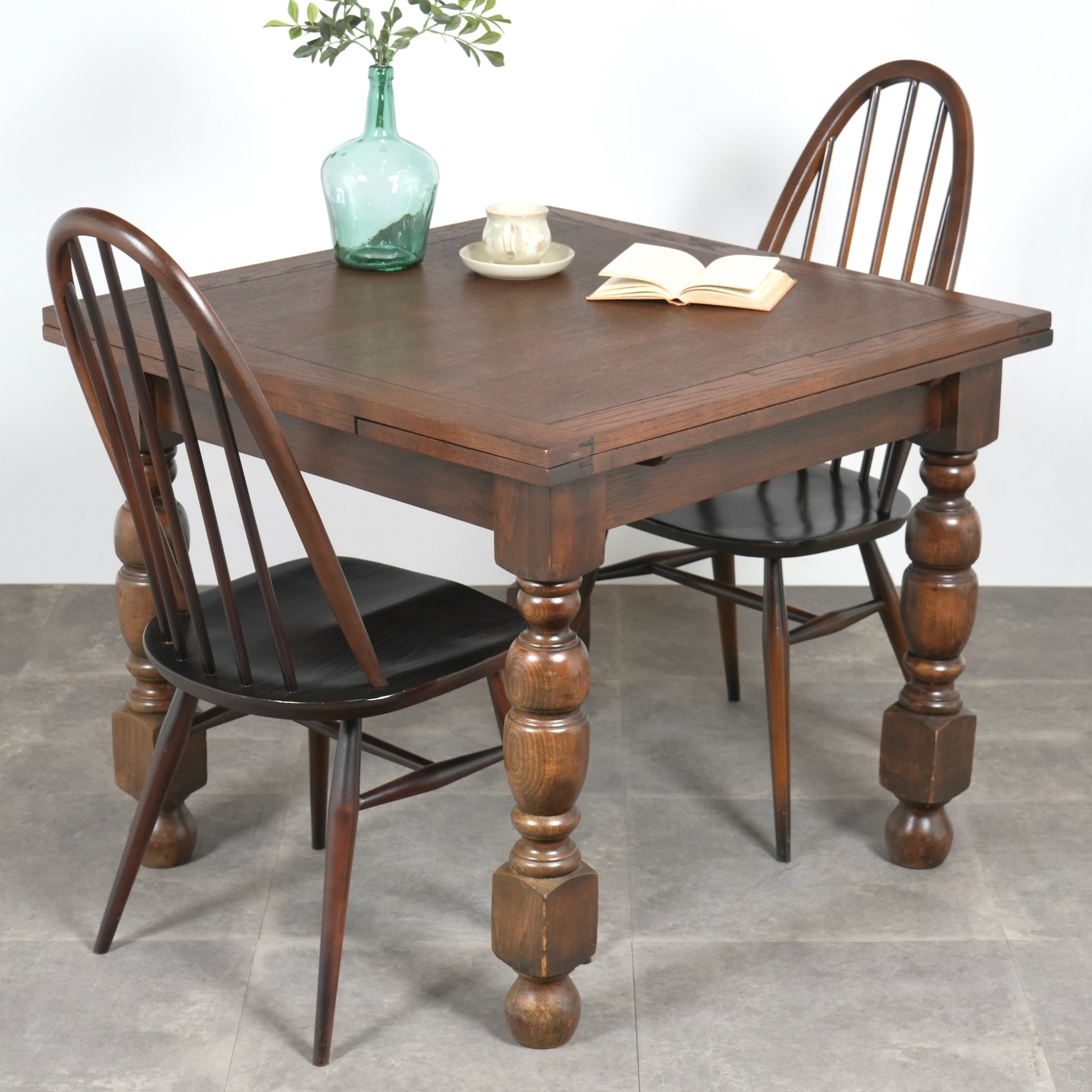 アンティーク&ヴィンテージの大定番アイテムとして世界中で愛されるアイテムの1つで、ドローリーフとは天板を拡張する際に軽く持ち上げて下の拡張板を引き出すと上の天板が沈みフラットになる仕組みです。