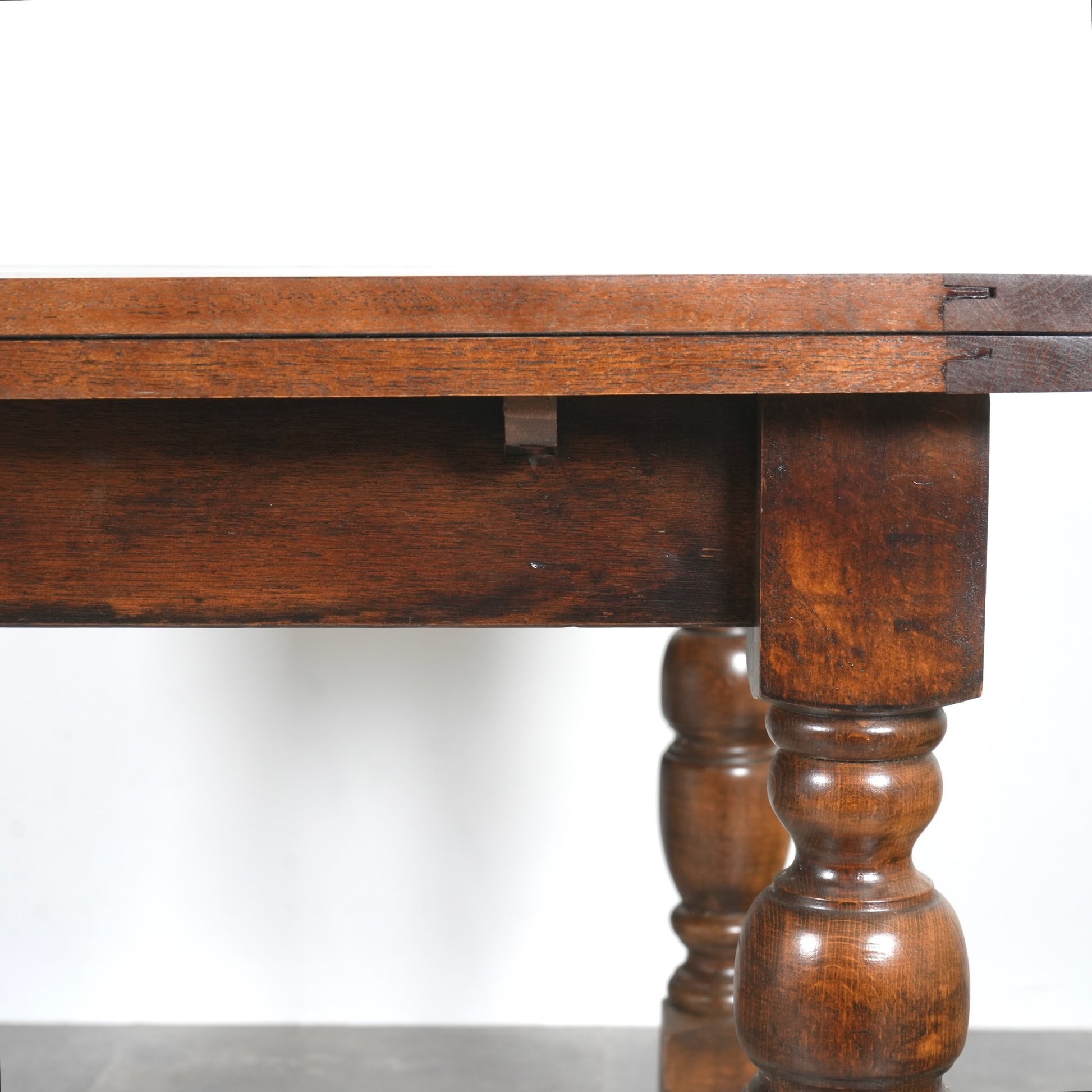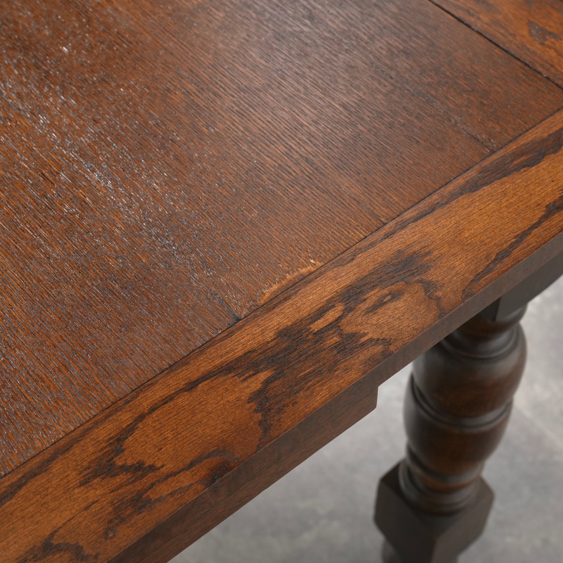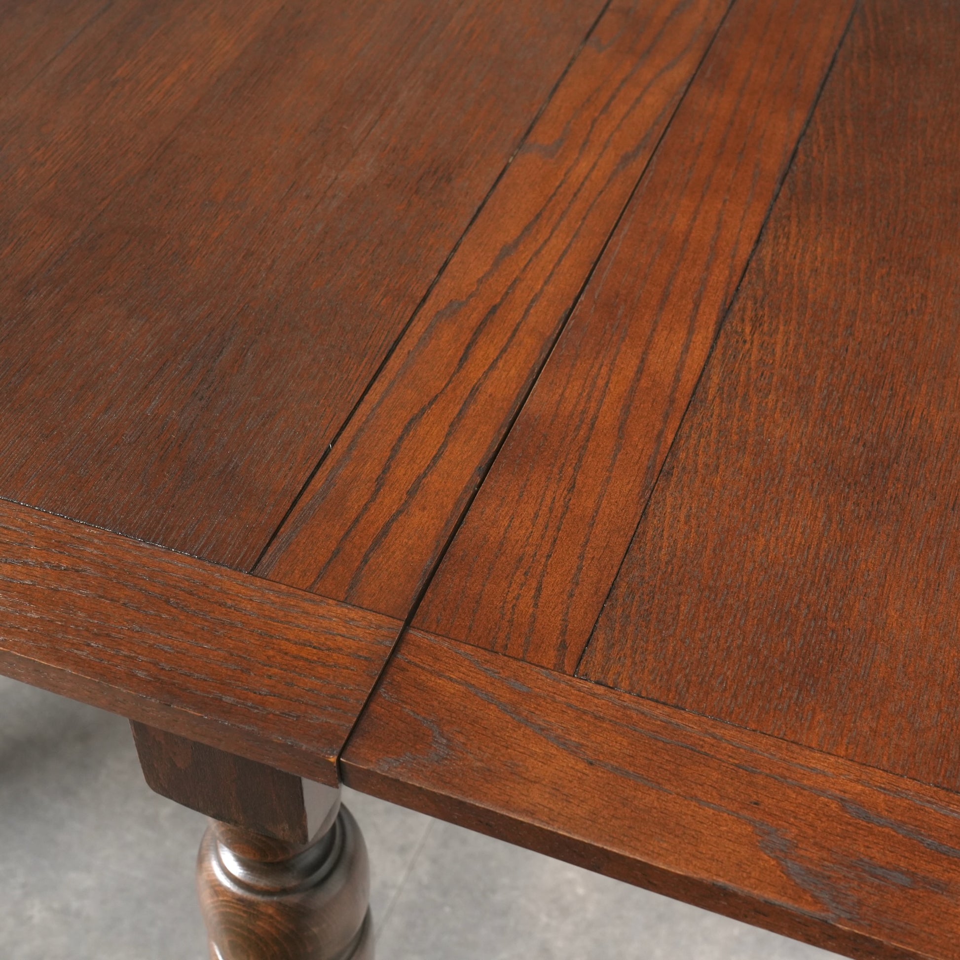 英国アンティークらしい良質なオーク材の木目と質感が見事で、脚部の挽物細工も主張しすぎない絶妙なバランス。