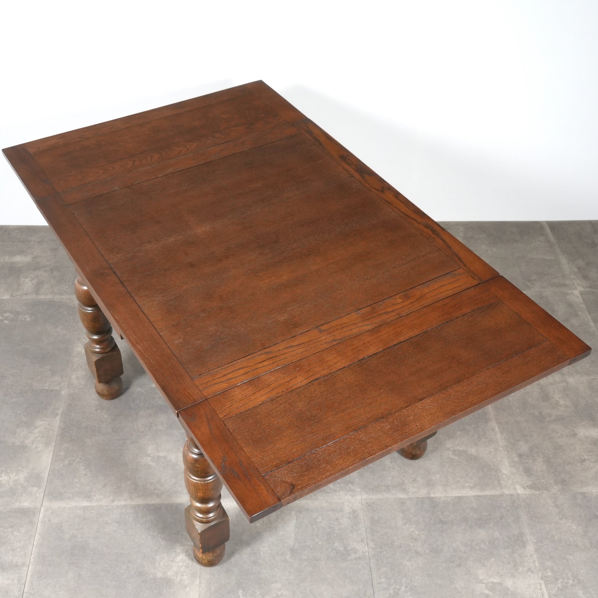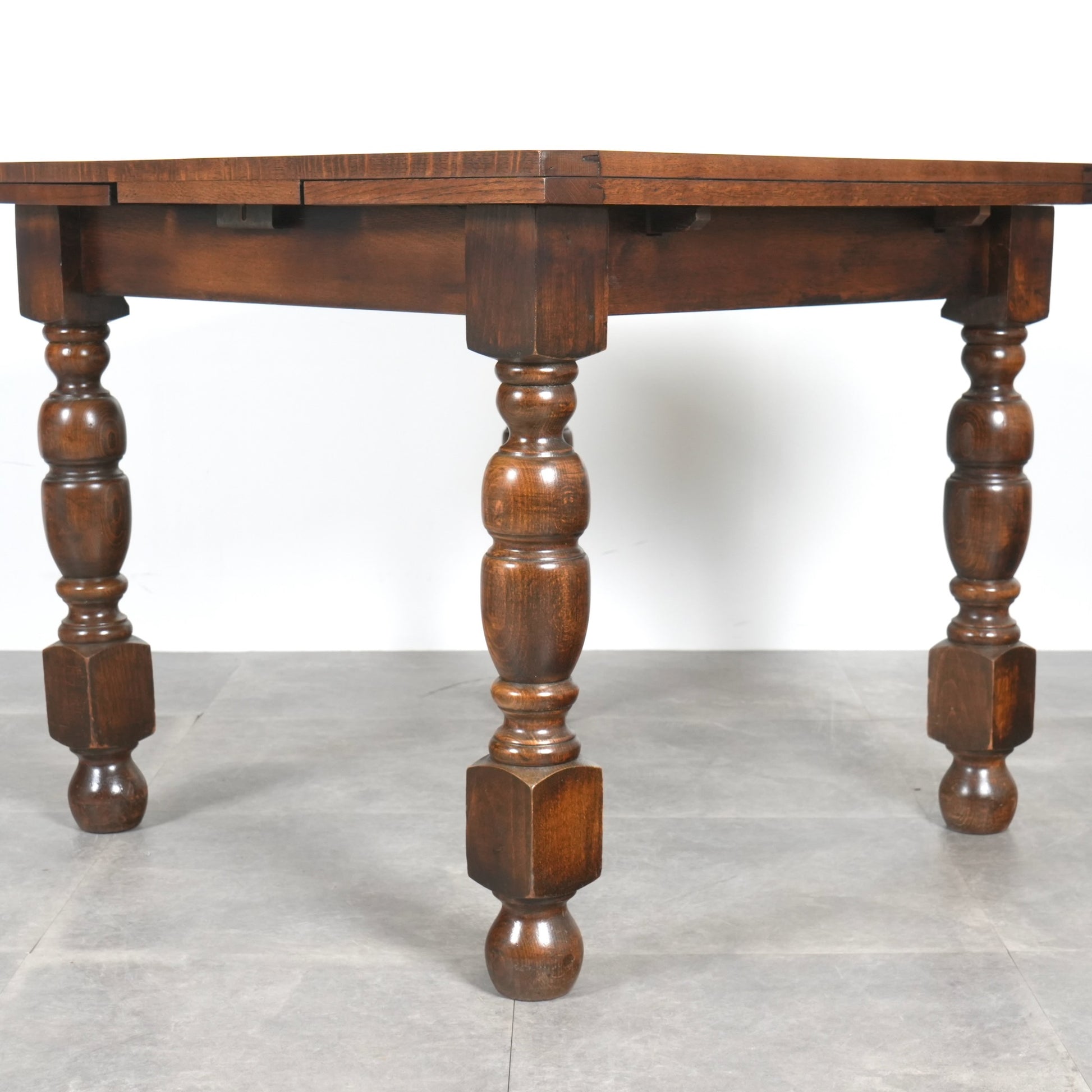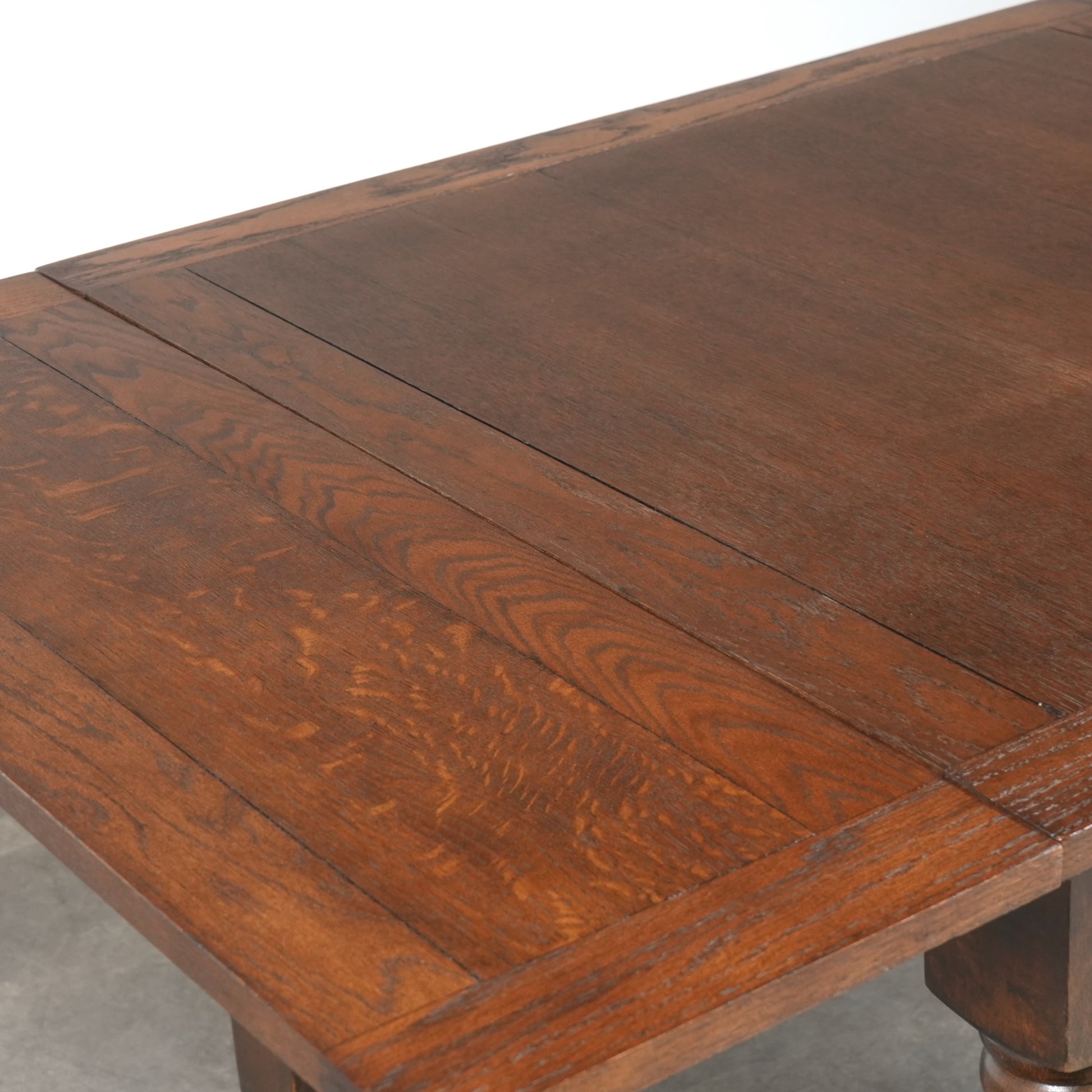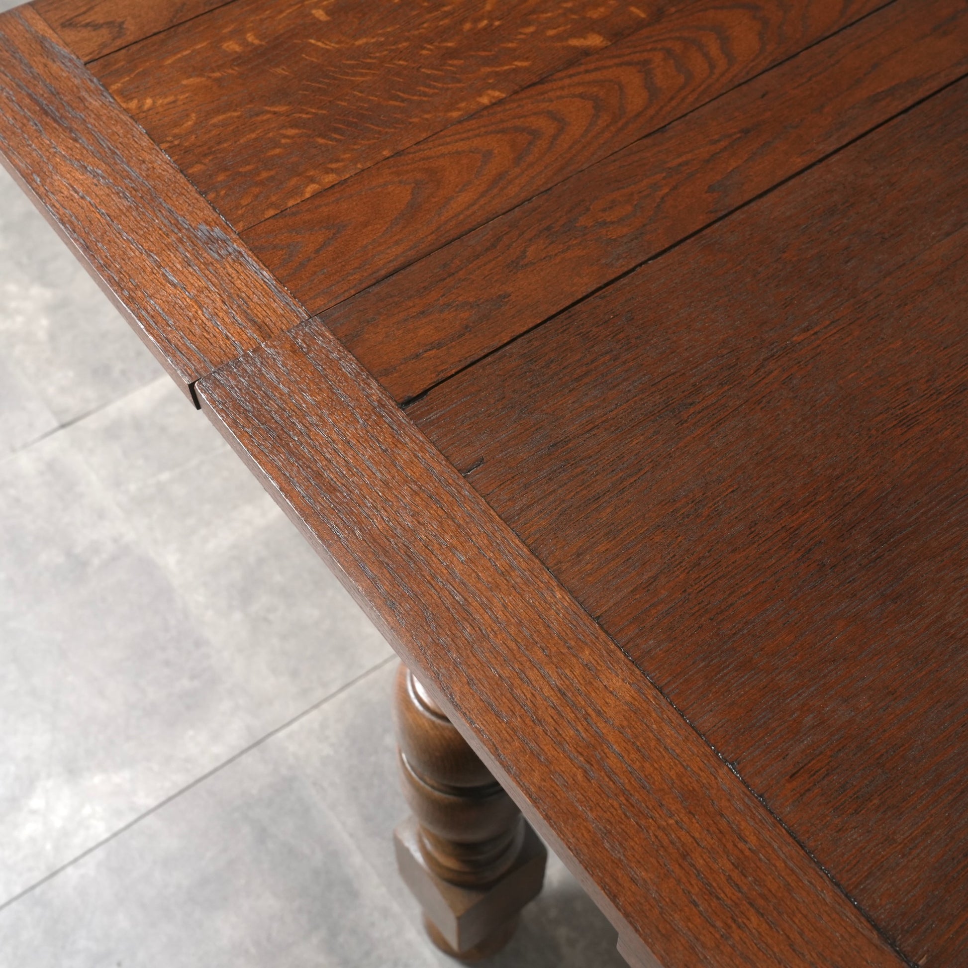 英国アンティークらしい良質なオーク材の木目と質感が見事で、脚部の挽物細工も主張しすぎない絶妙なバランス。