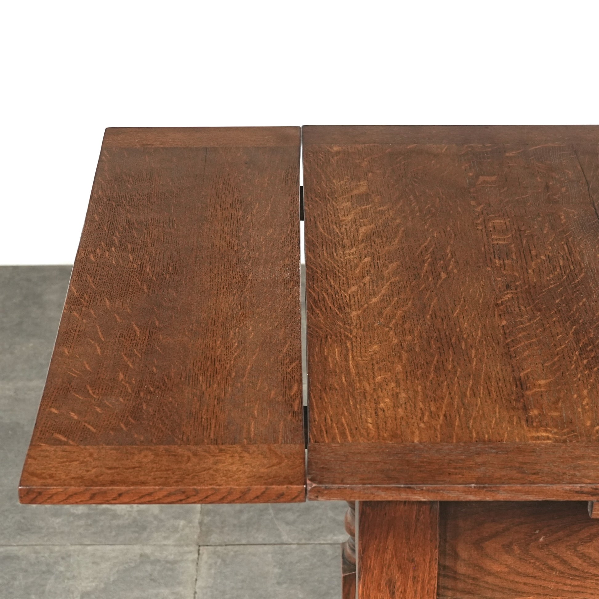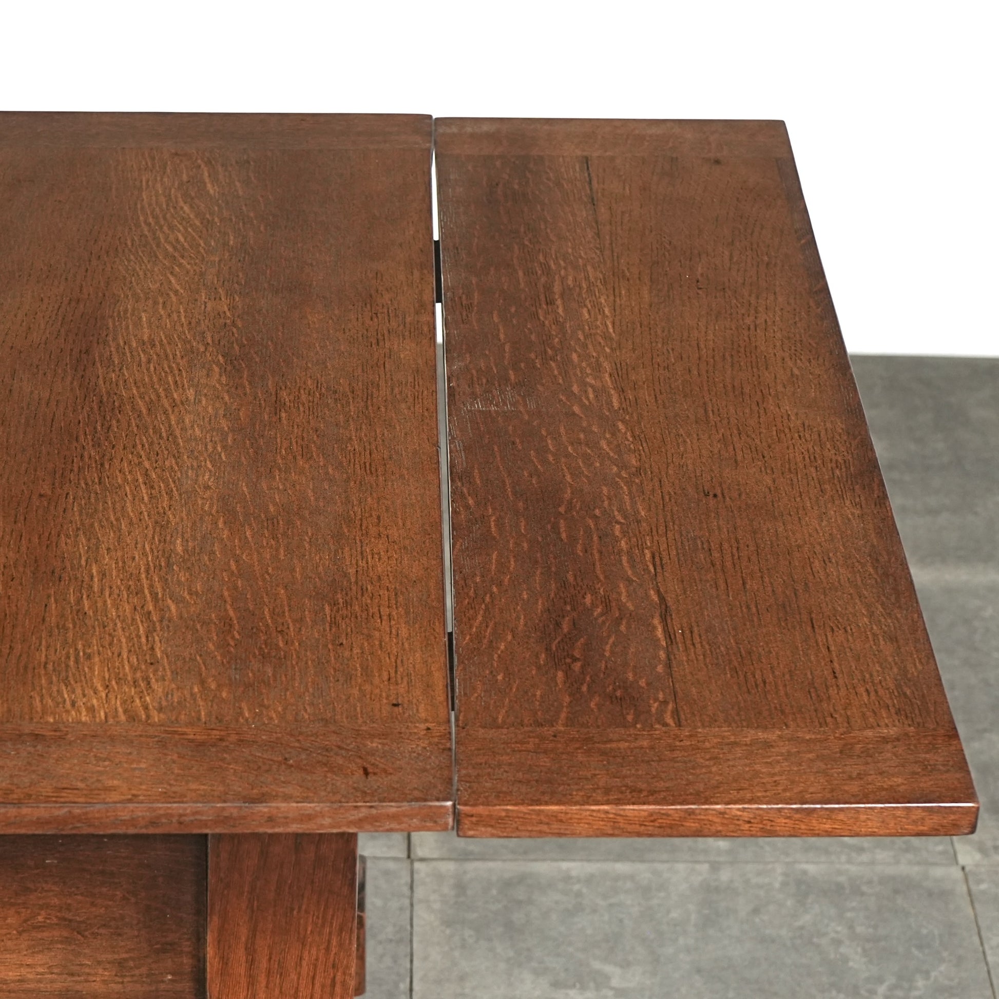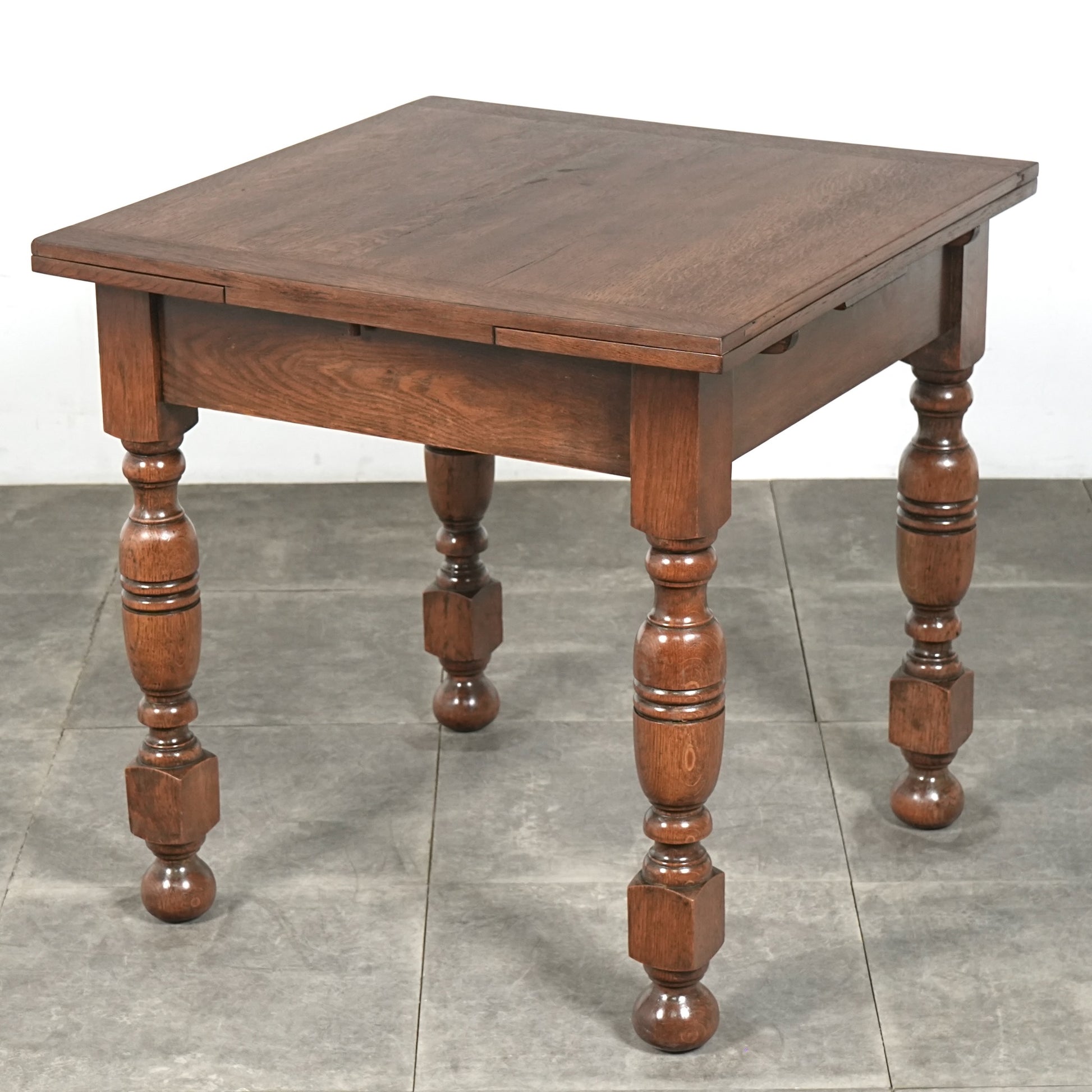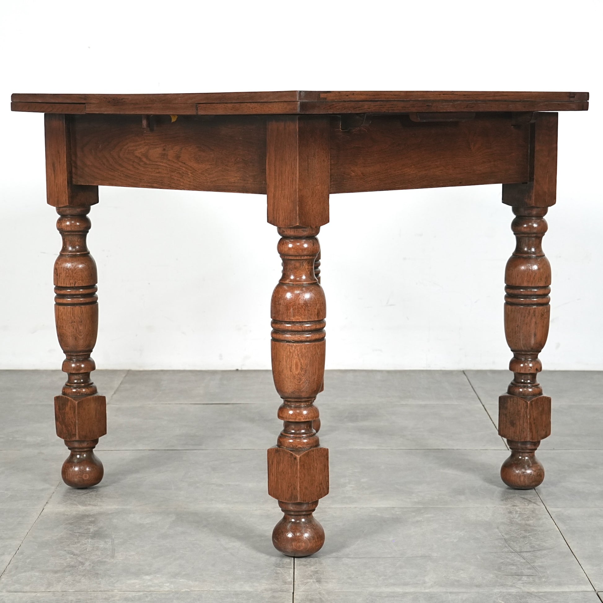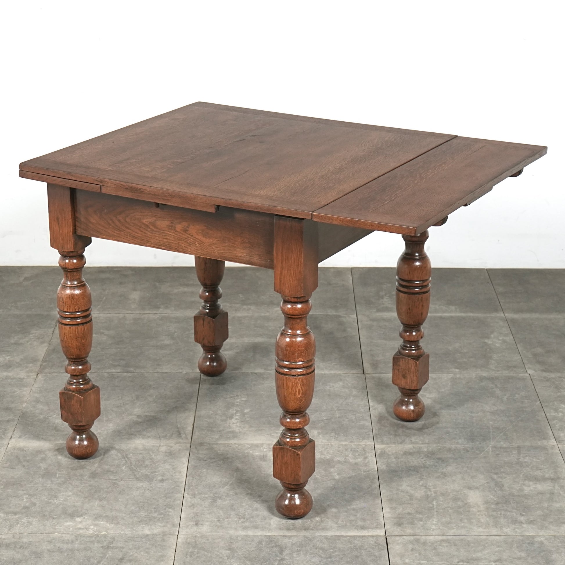 アンティーク&ヴィンテージの大定番アイテムとして世界中で愛されるアイテムの1つで、ドローリーフとは天板を拡張する際に軽く持ち上げて下の拡張板を引き出すと上の天板が沈みフラットになる仕組みです。