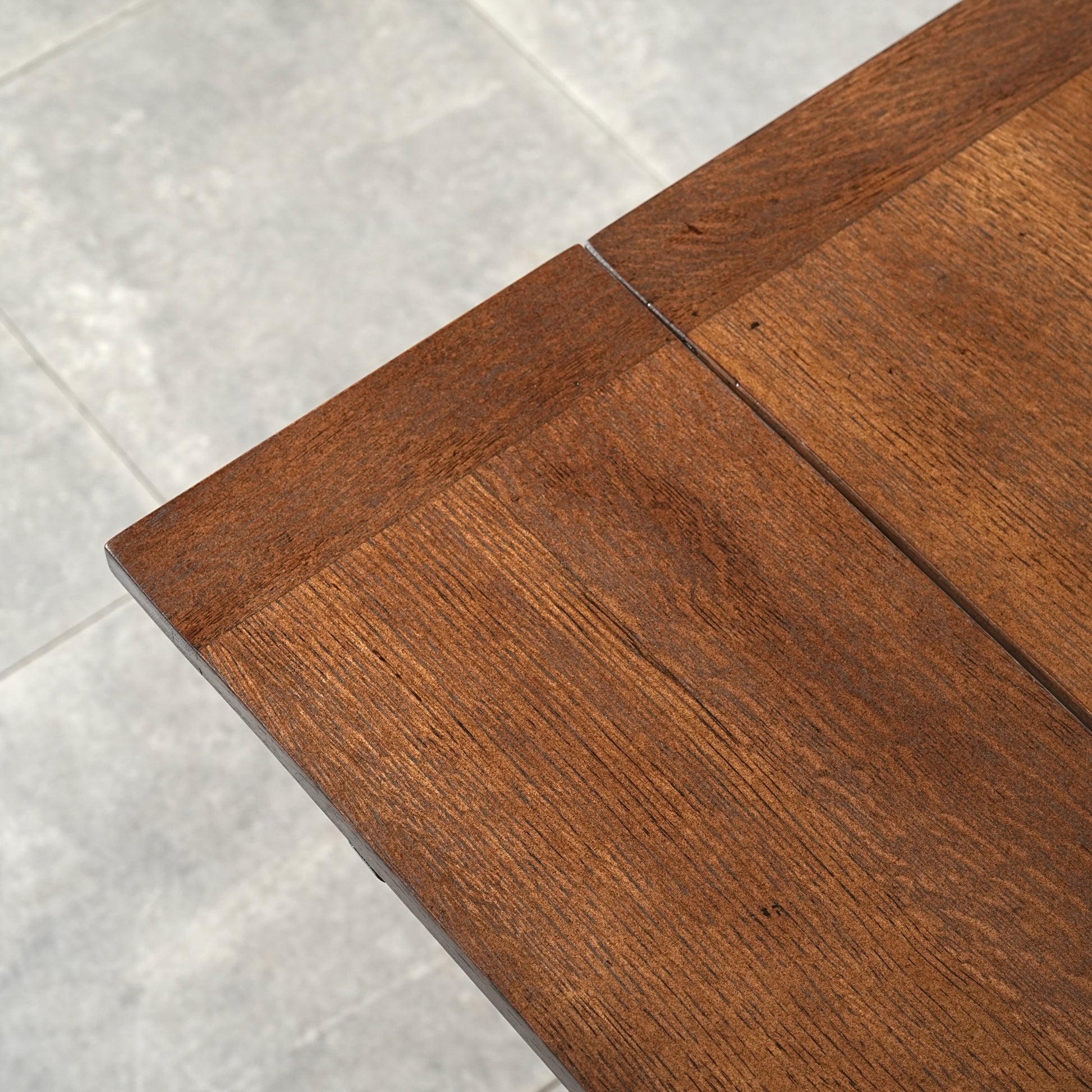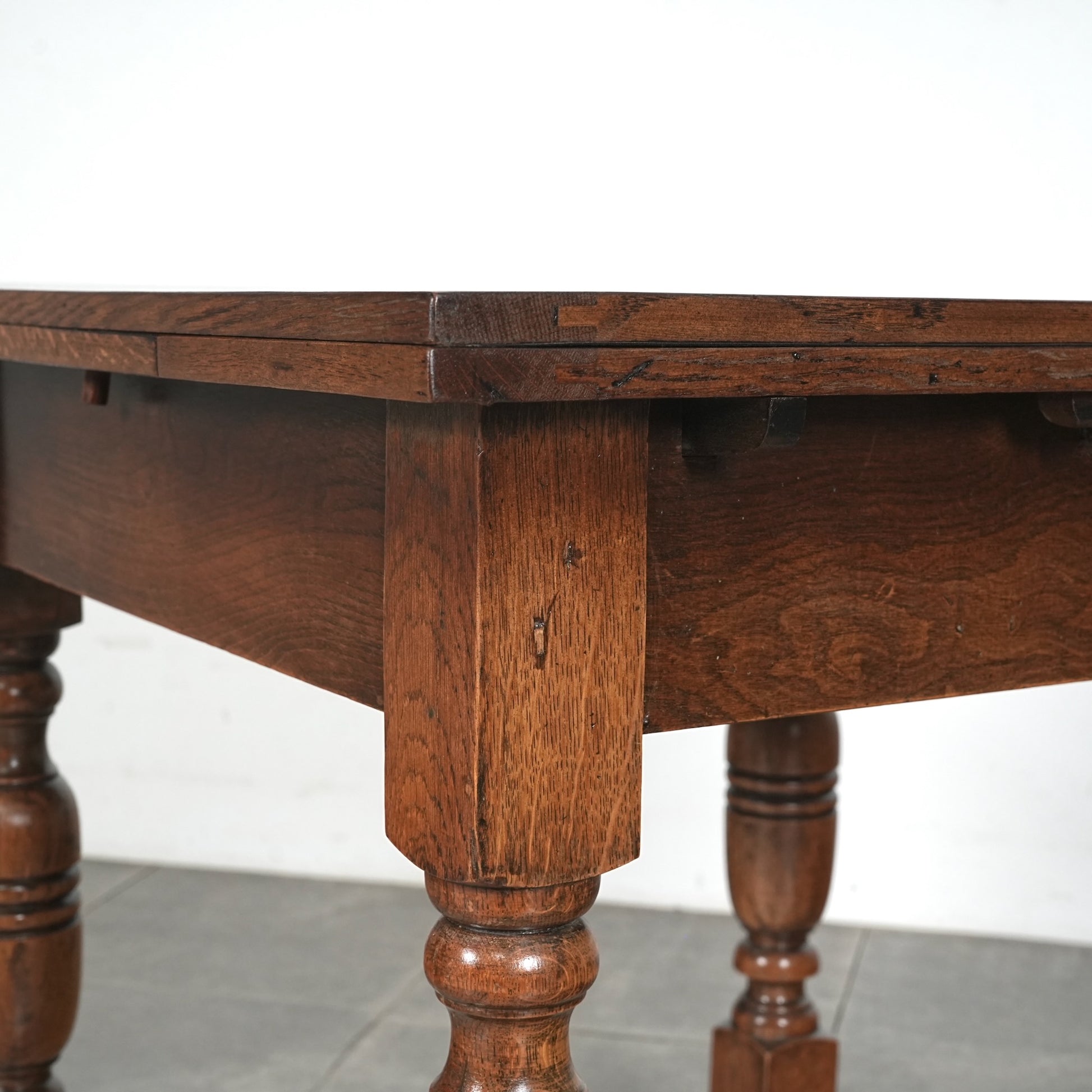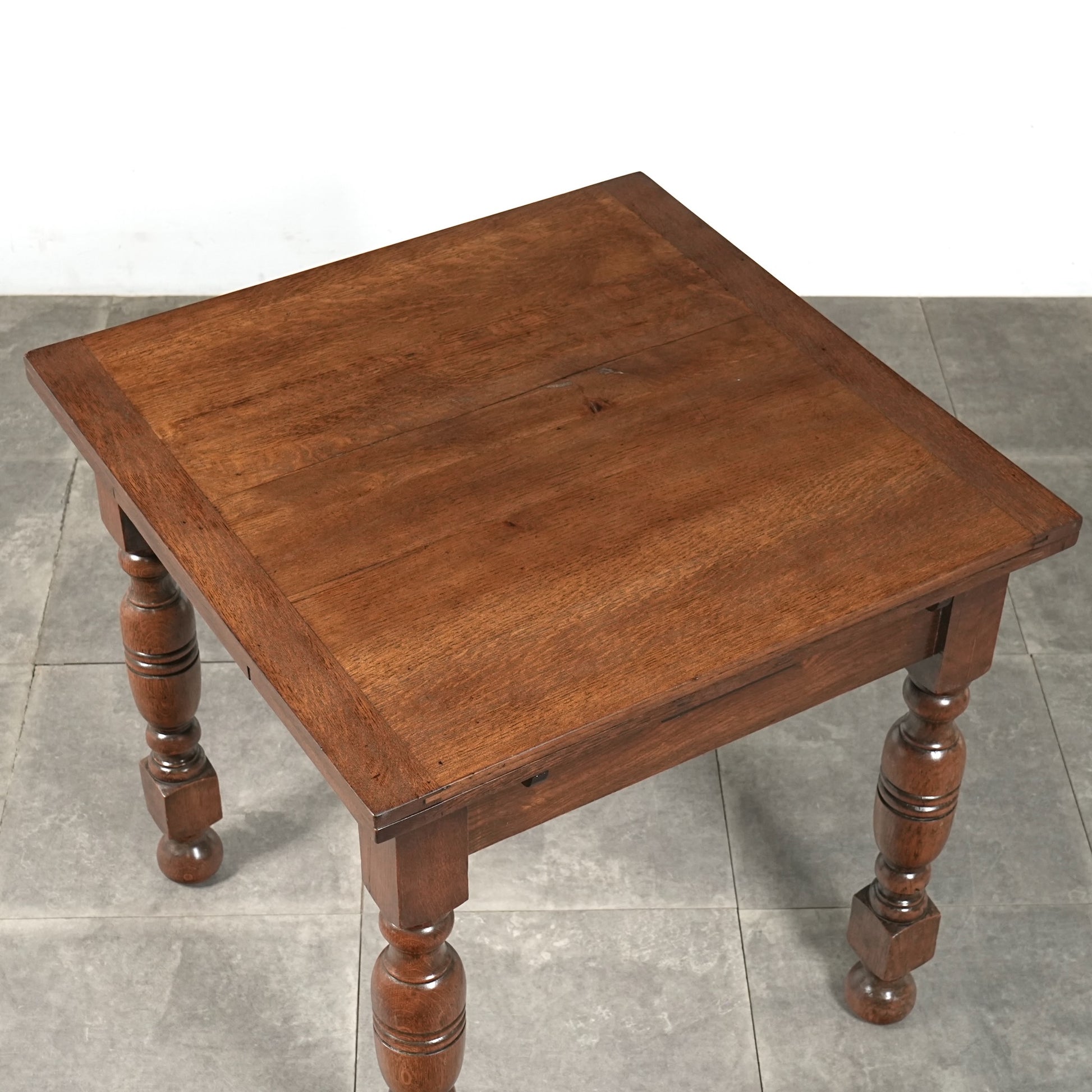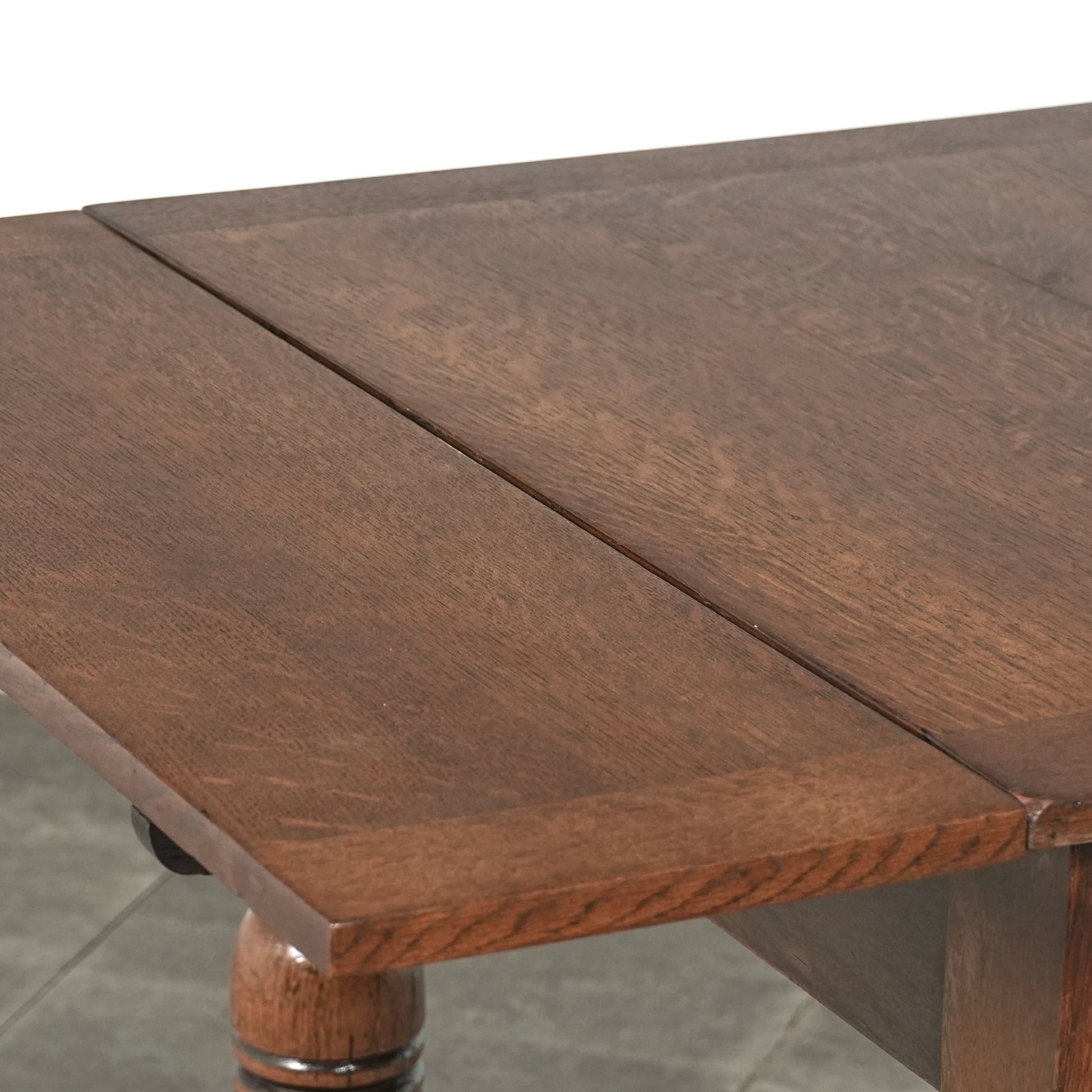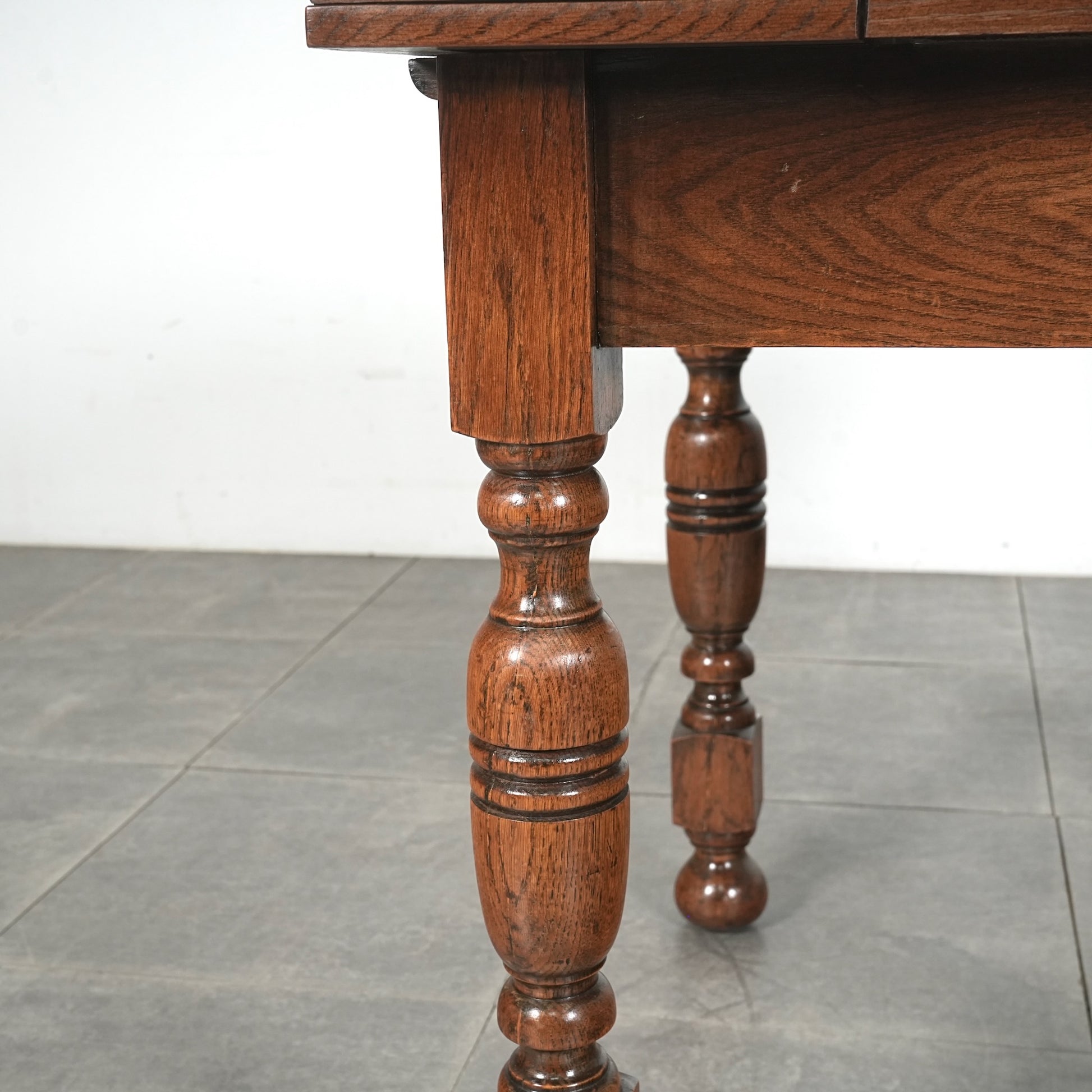 英国アンティークらしい良質なオーク材の木目と質感が見事で、脚部の美しい挽物細工は主張しすぎない絶妙なバランス。