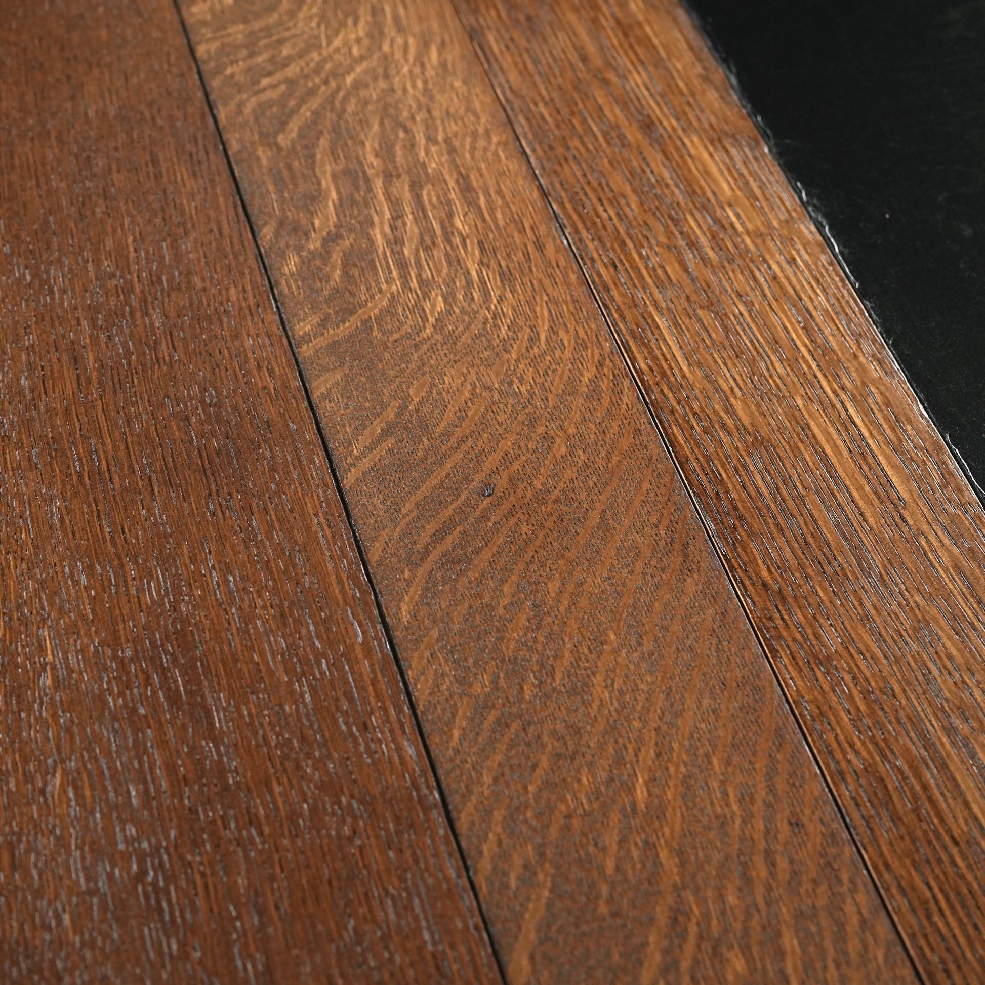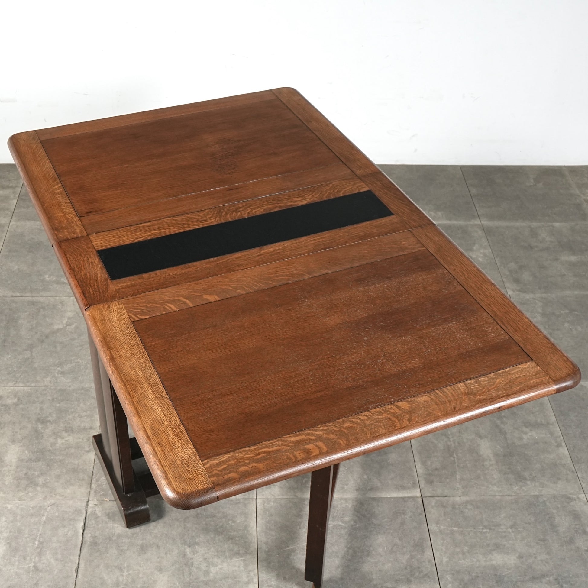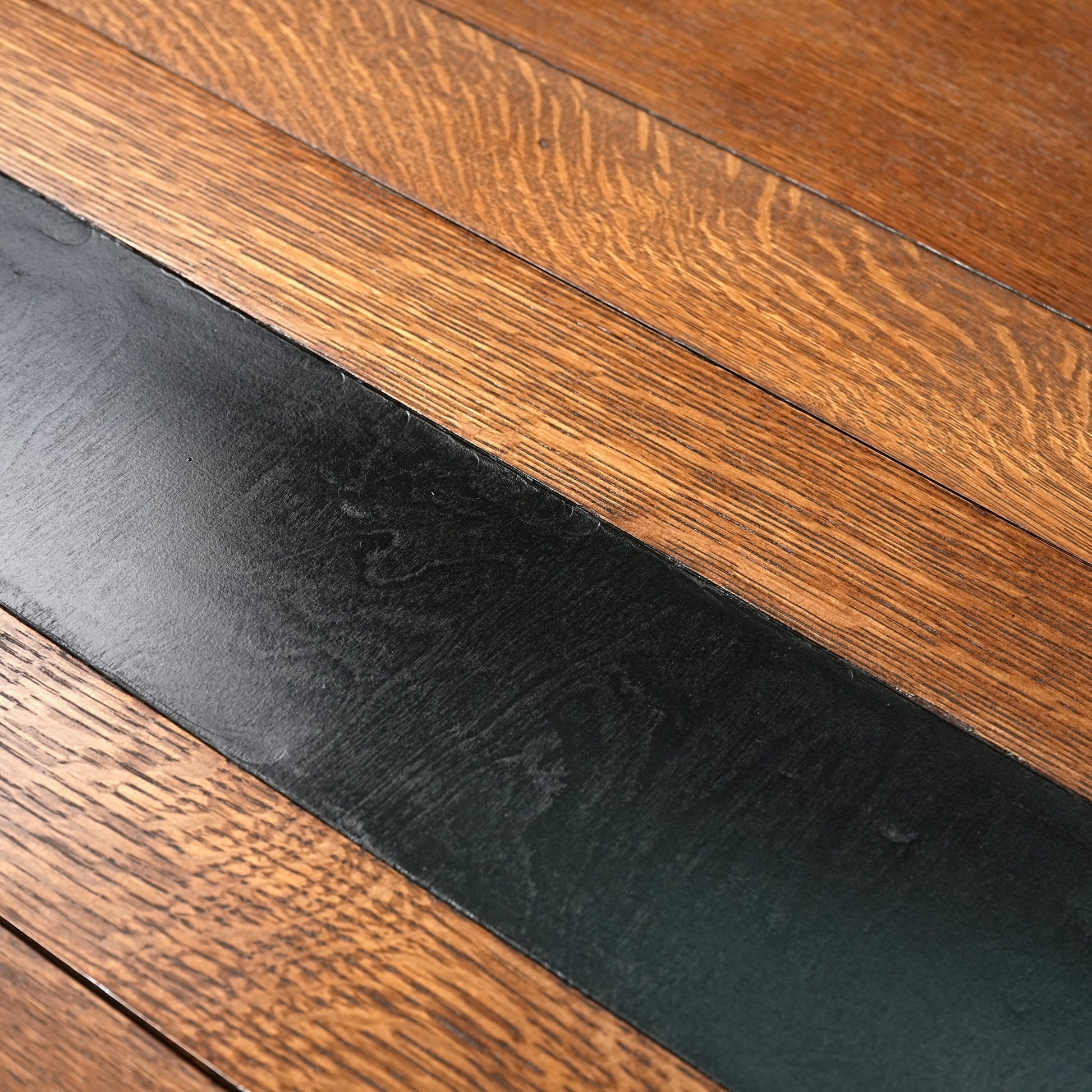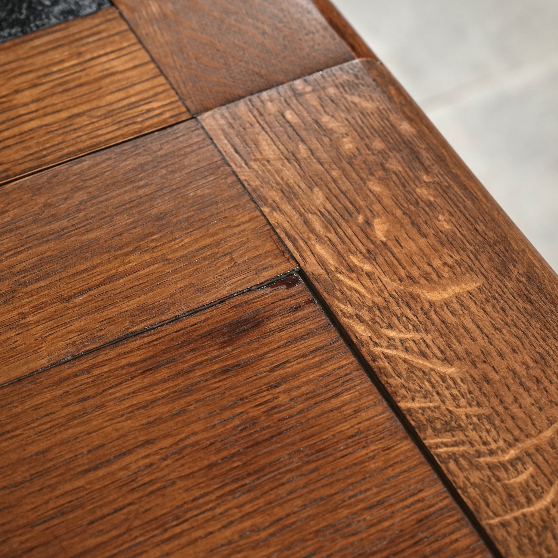 素材の魅力でもある虎斑がしっかりと現れたオーク材の質感が魅力的で、天板中央のカラーリングも良いアクセントに。