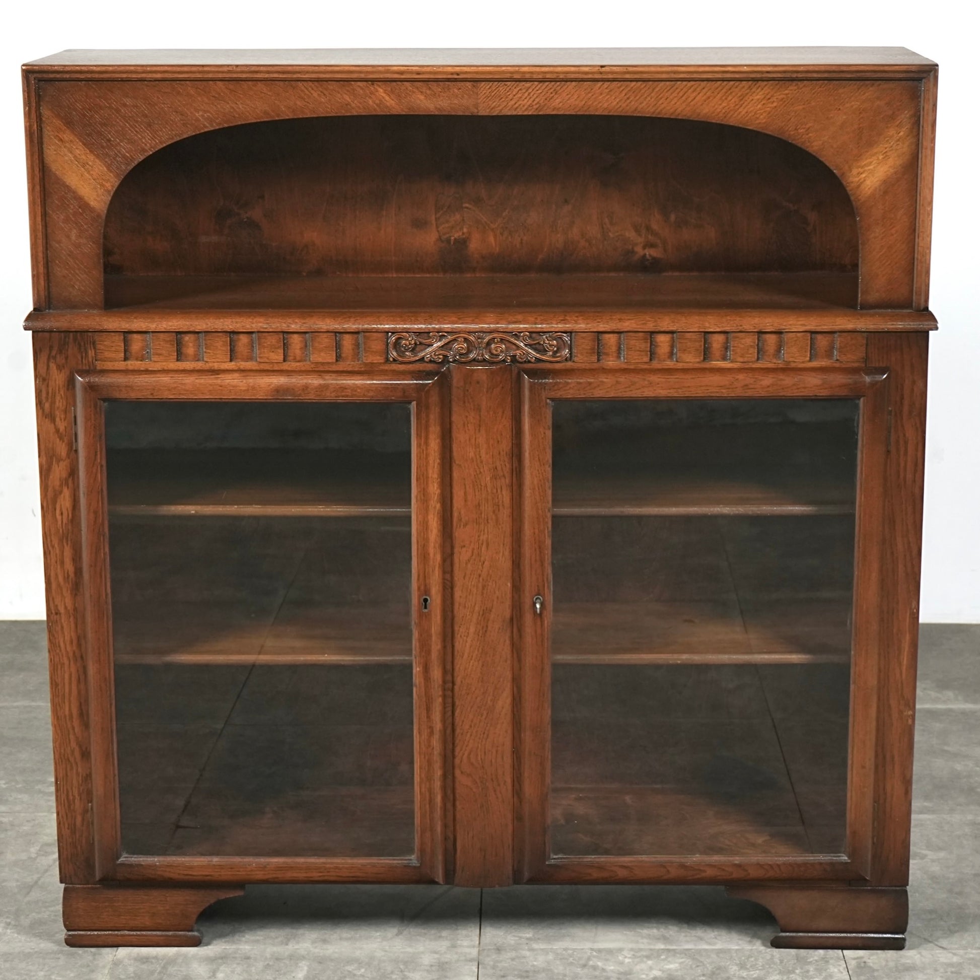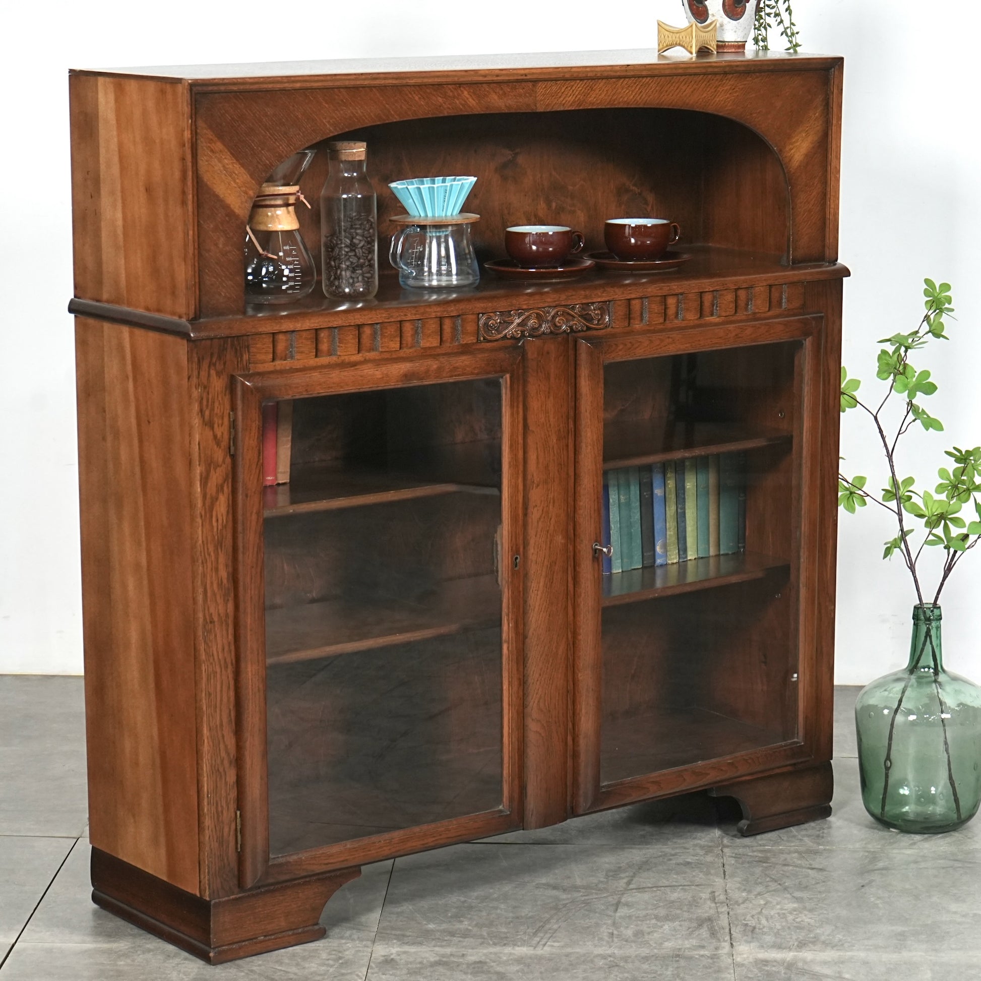 推定年代1930年〜1940年代頃、英国アンティークのガラスキャビネット。