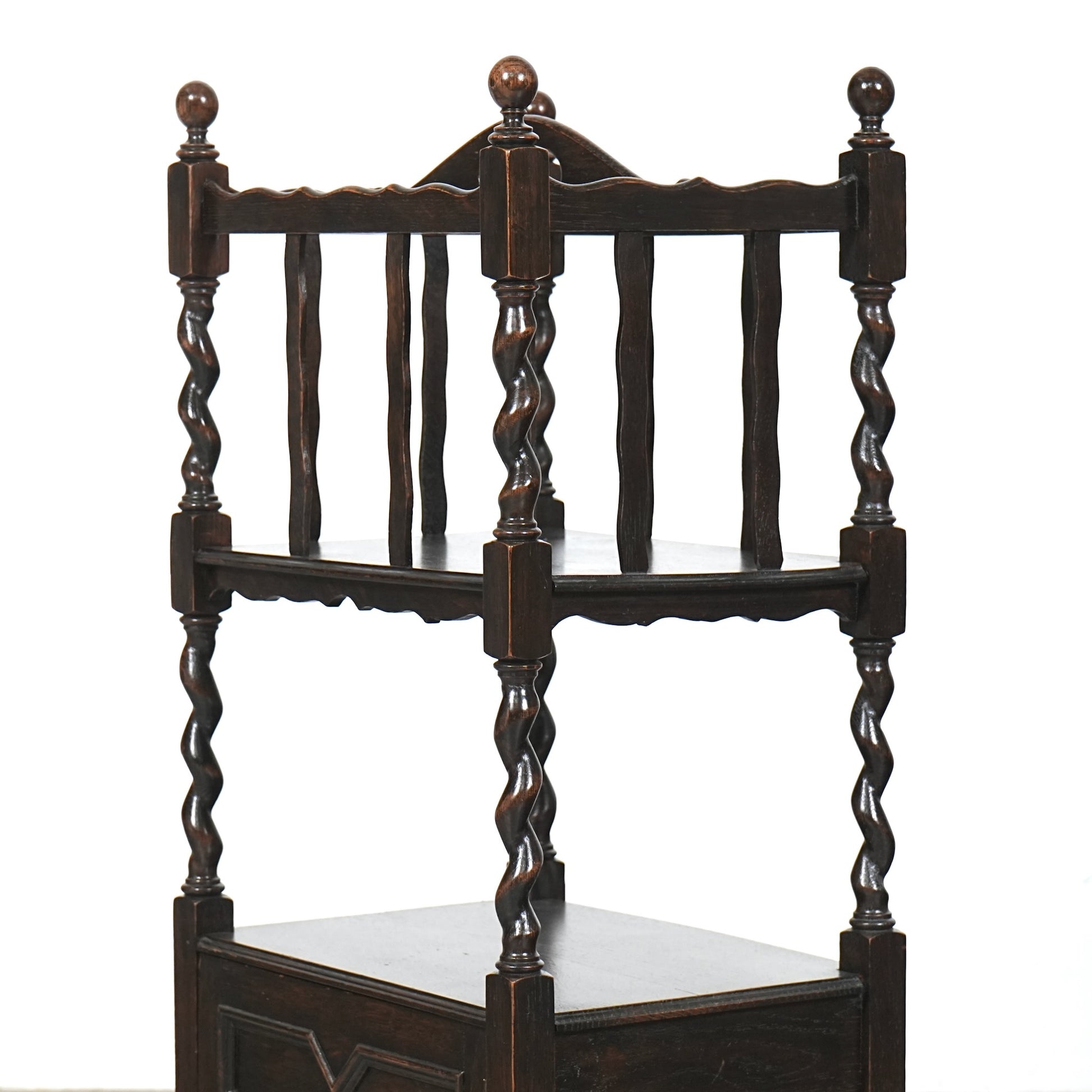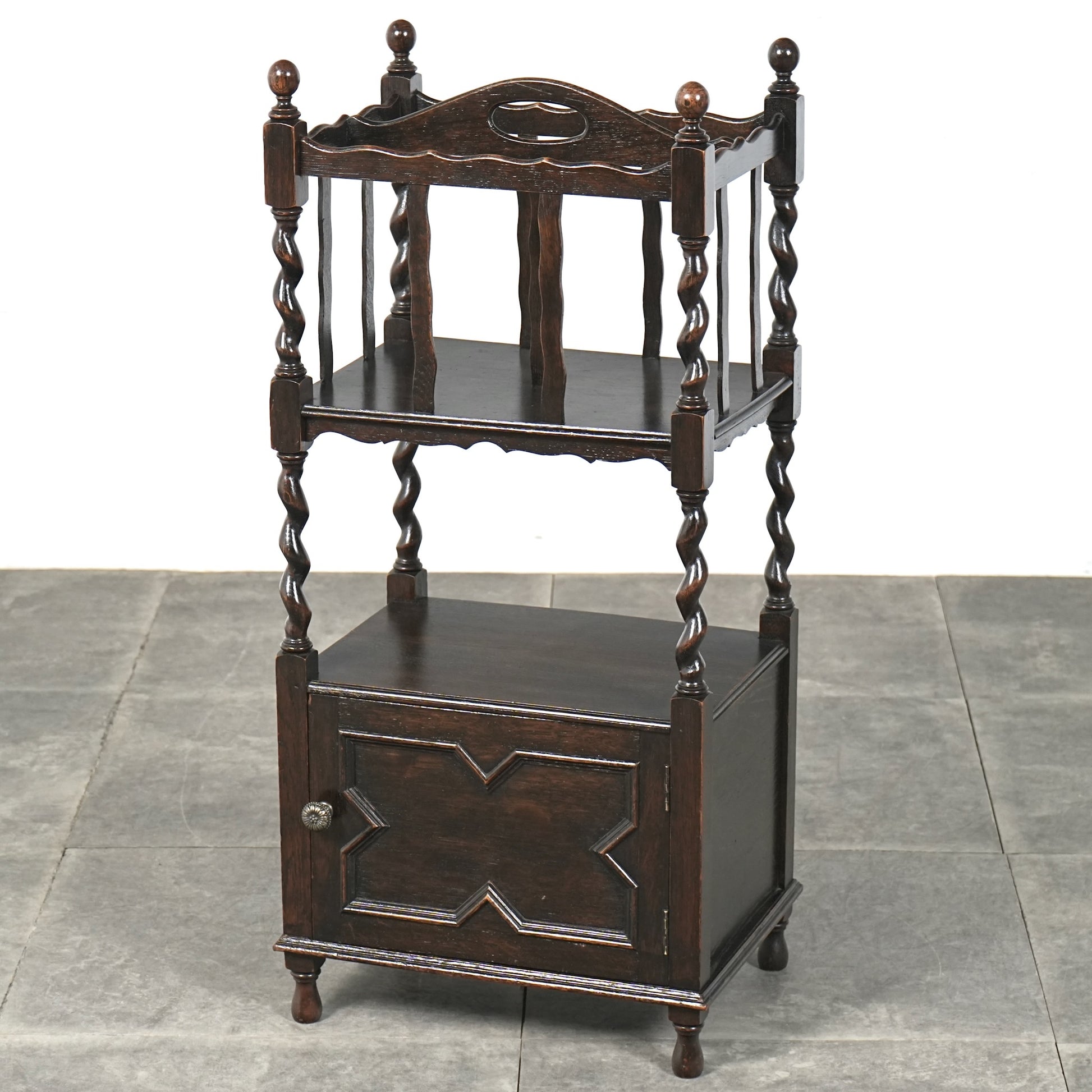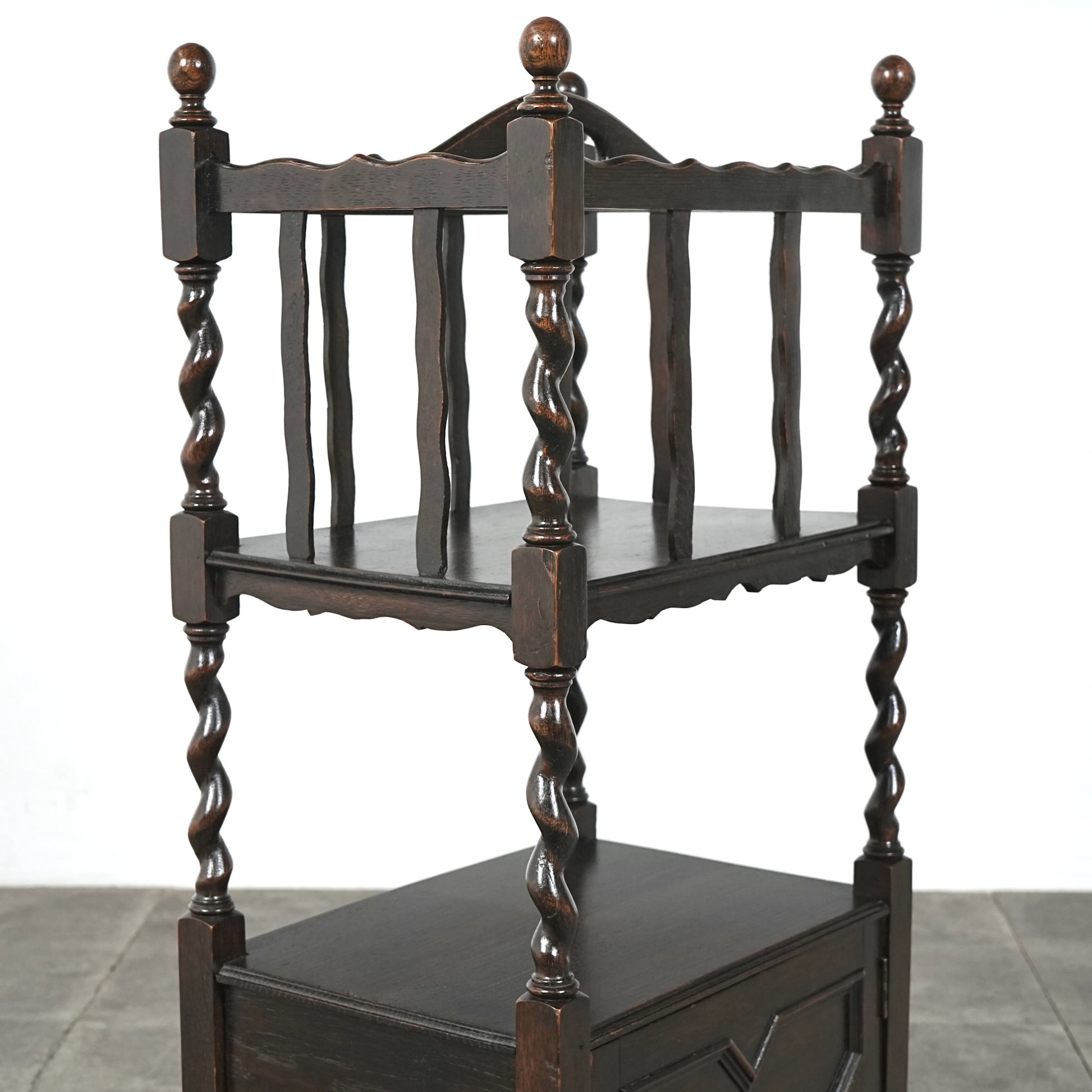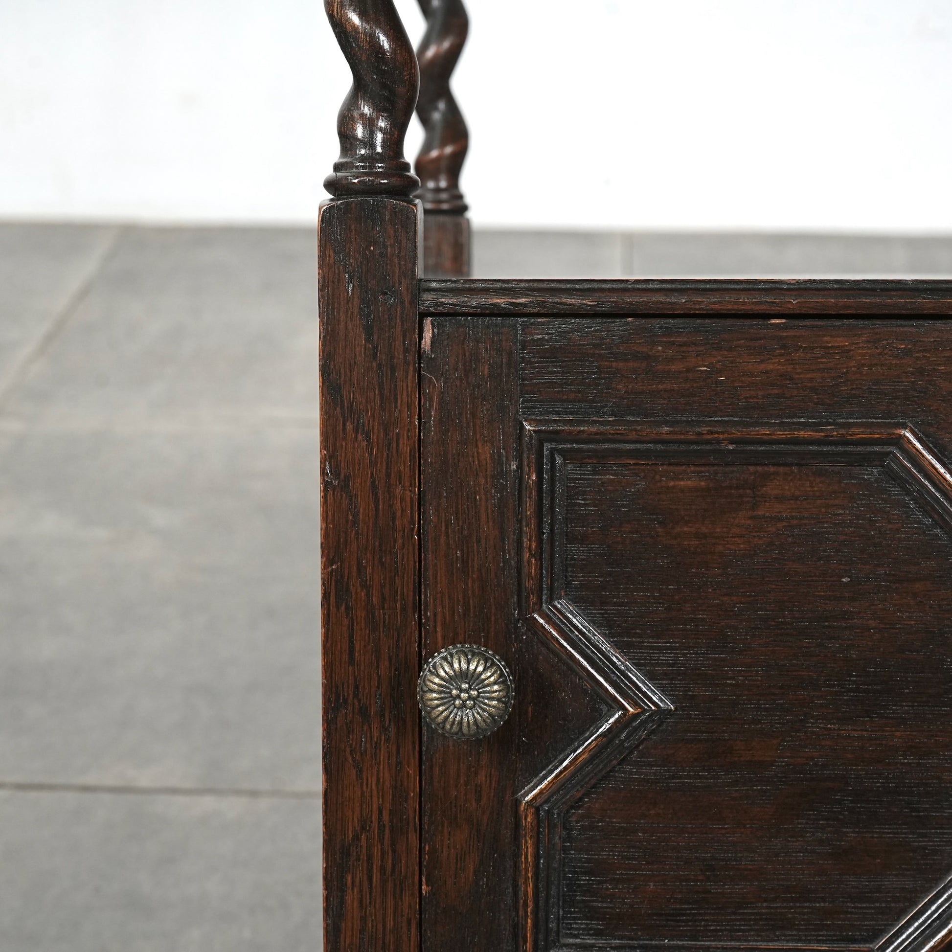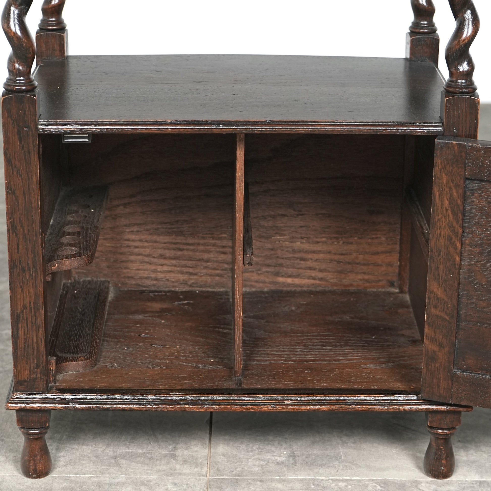 良質なオーク材の深みある木肌とクラシカルな扉の意匠、英国伝統のバーリーシュガーツイストが相まって、英国家具らしい品格を漂わせています。