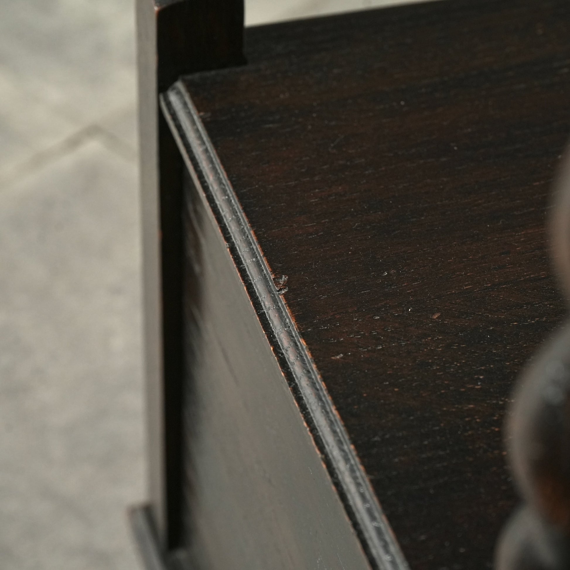 100年近い年月を経た本物のアンティーク家具となりますので、新品同様のコンディションに仕上げることはできないのですが、構造面のレストアに加えて、アンティーク特有の美しい風合いと表情を活かしながら丁寧に磨き上げました。