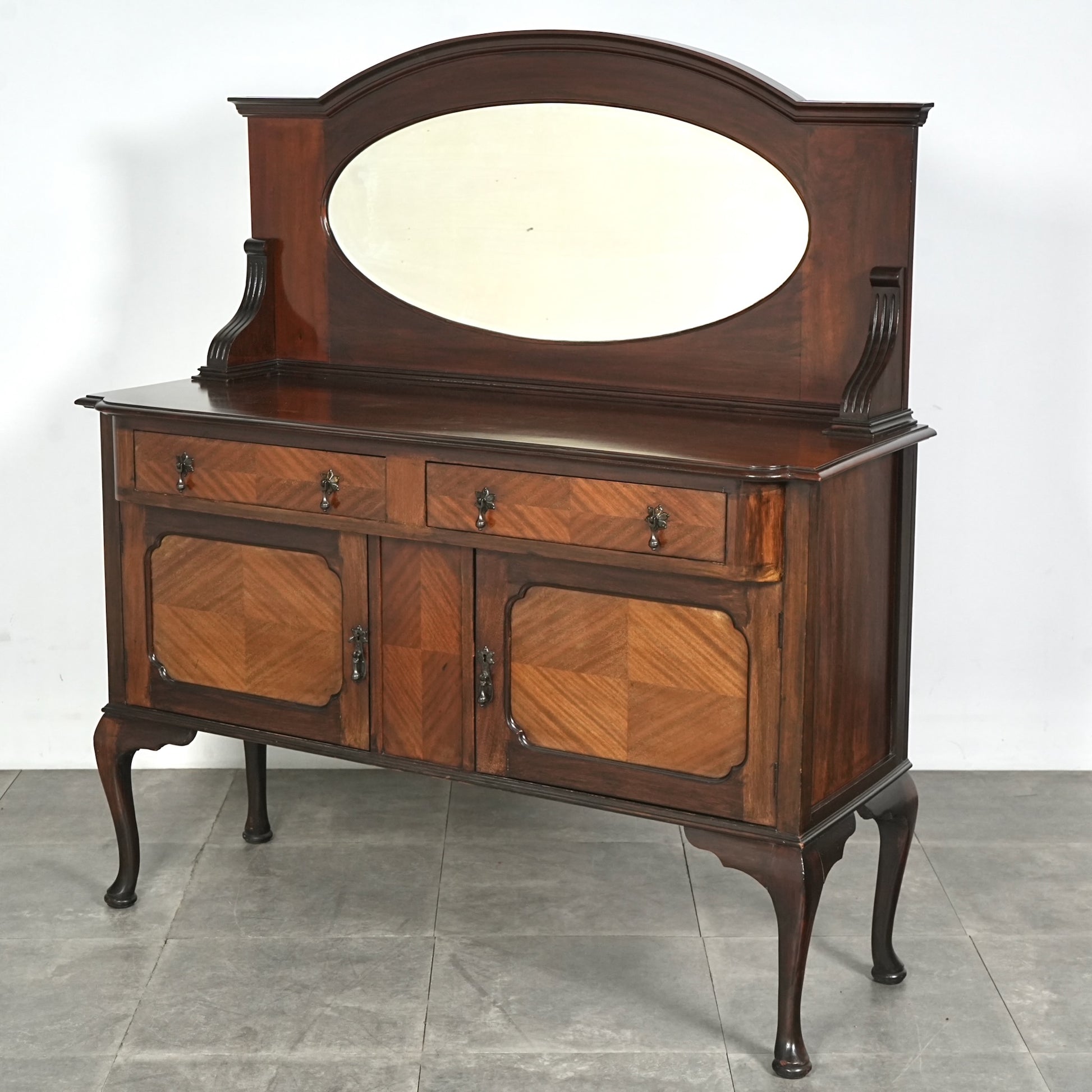 推定年代1930年〜1940年代頃、英国アンティークのミラーバックサイドボード。