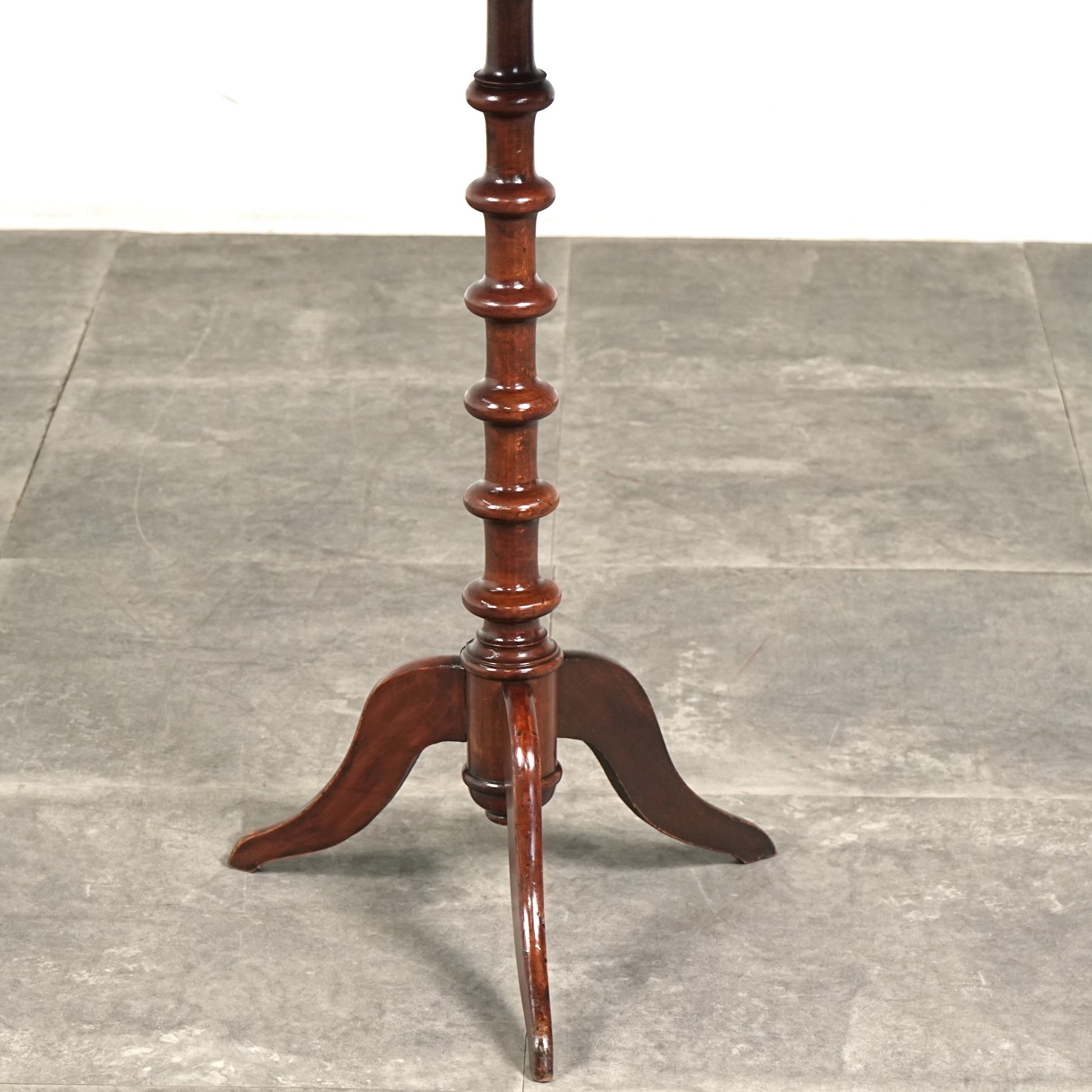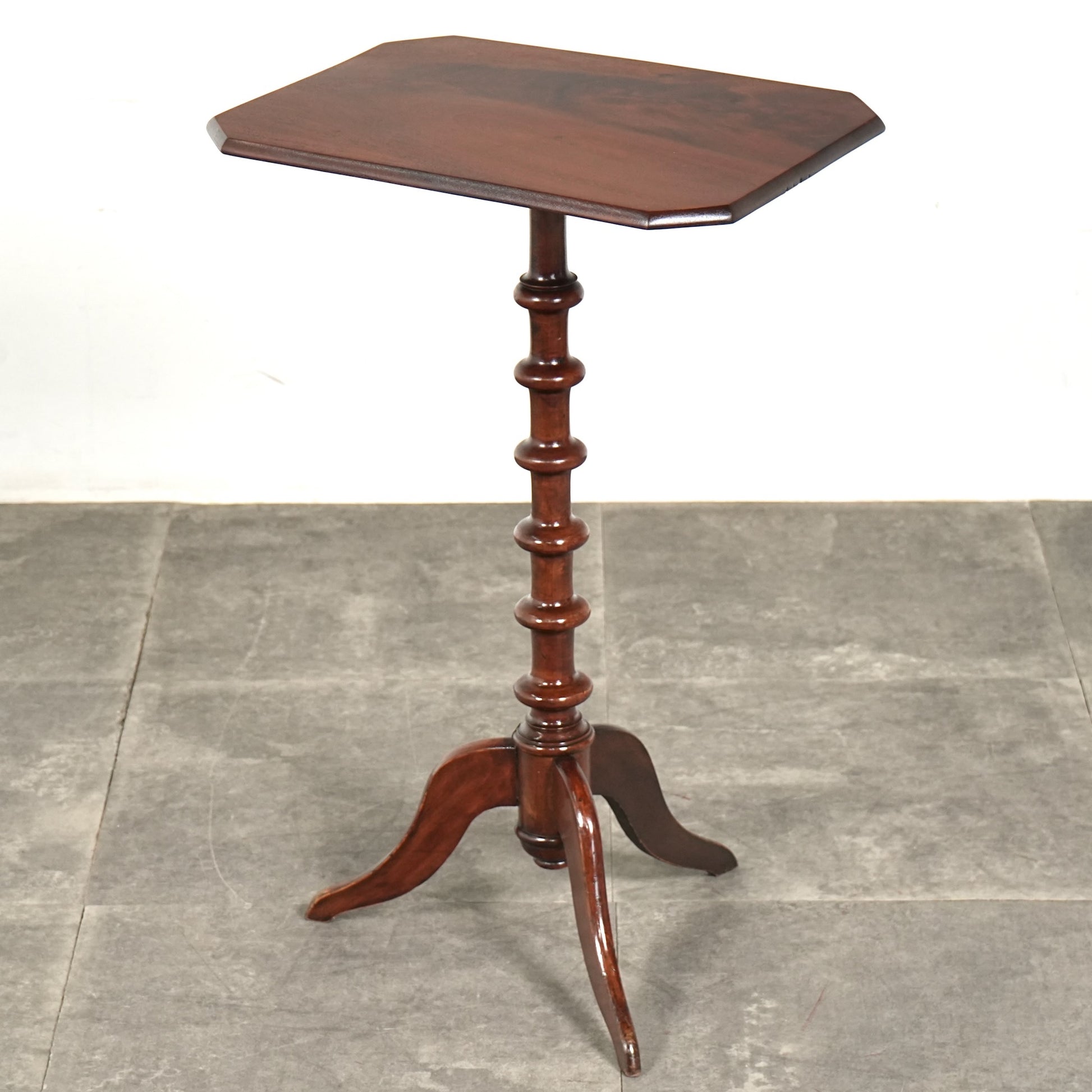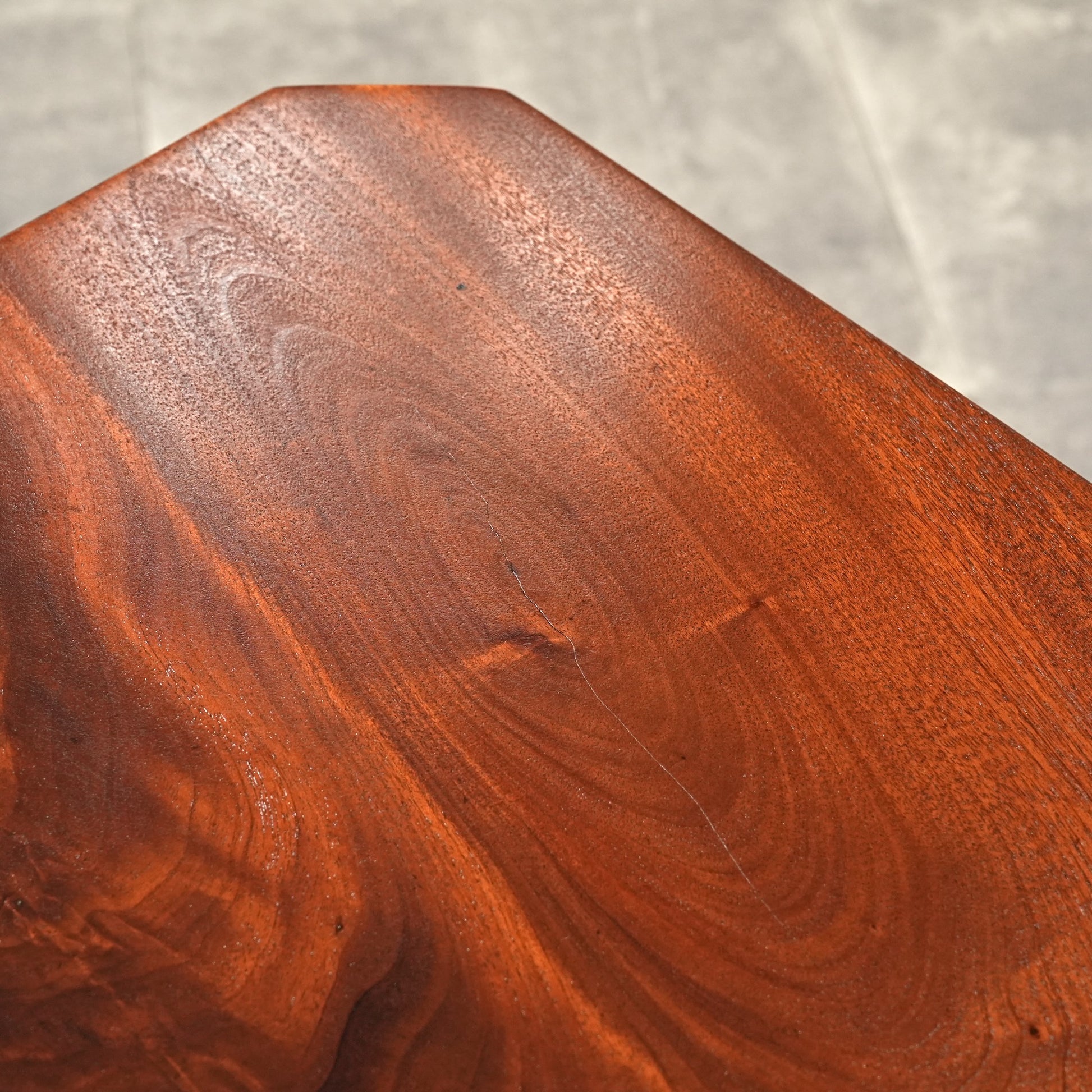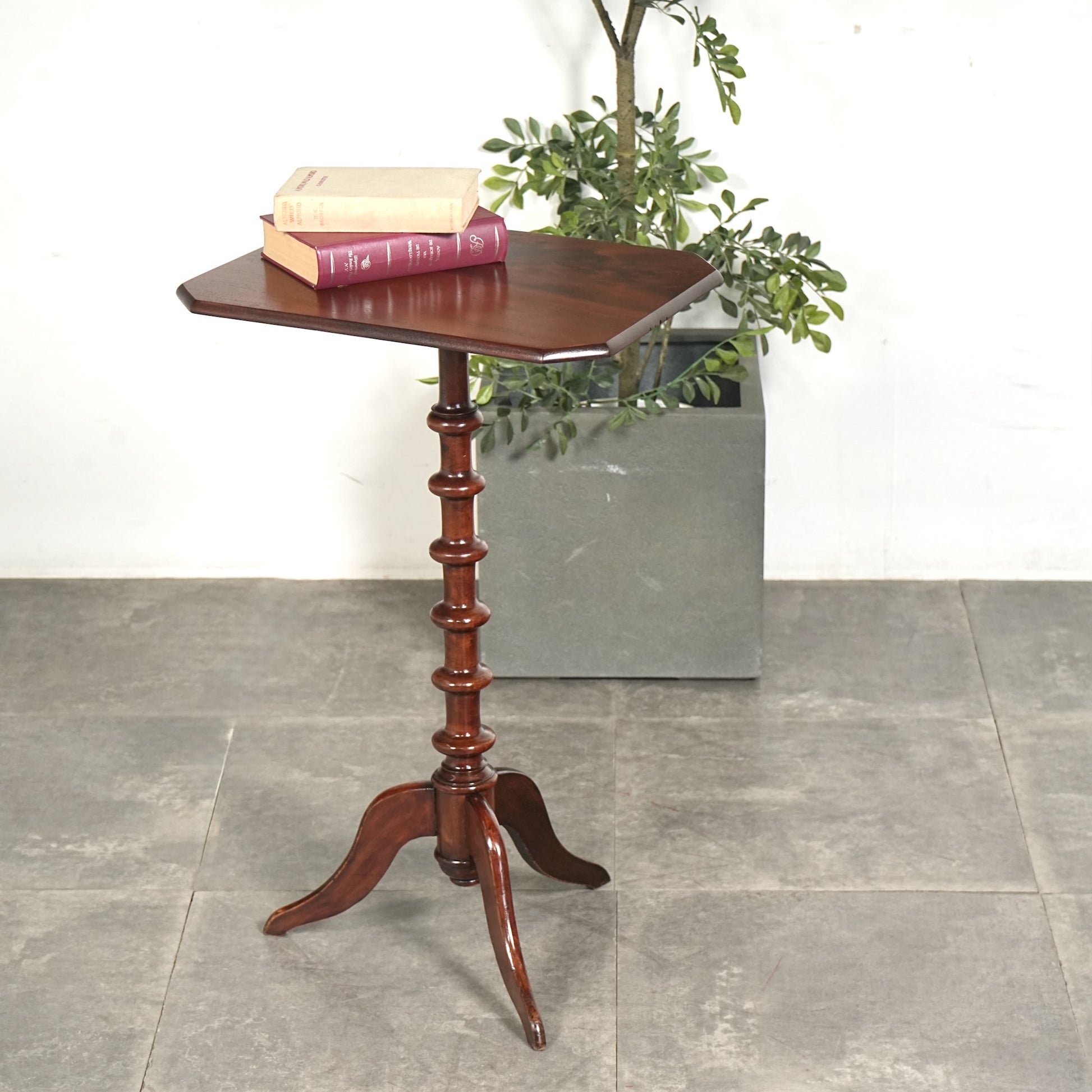 高品質なマホガニー材の質感やトライポッドの脚部、そして美しい挽物細工が印象的なデザインで、置く場所を選ばない嬉しいサイズ感。