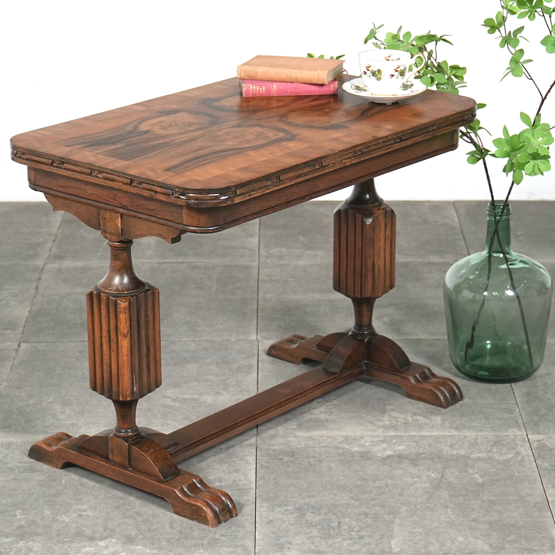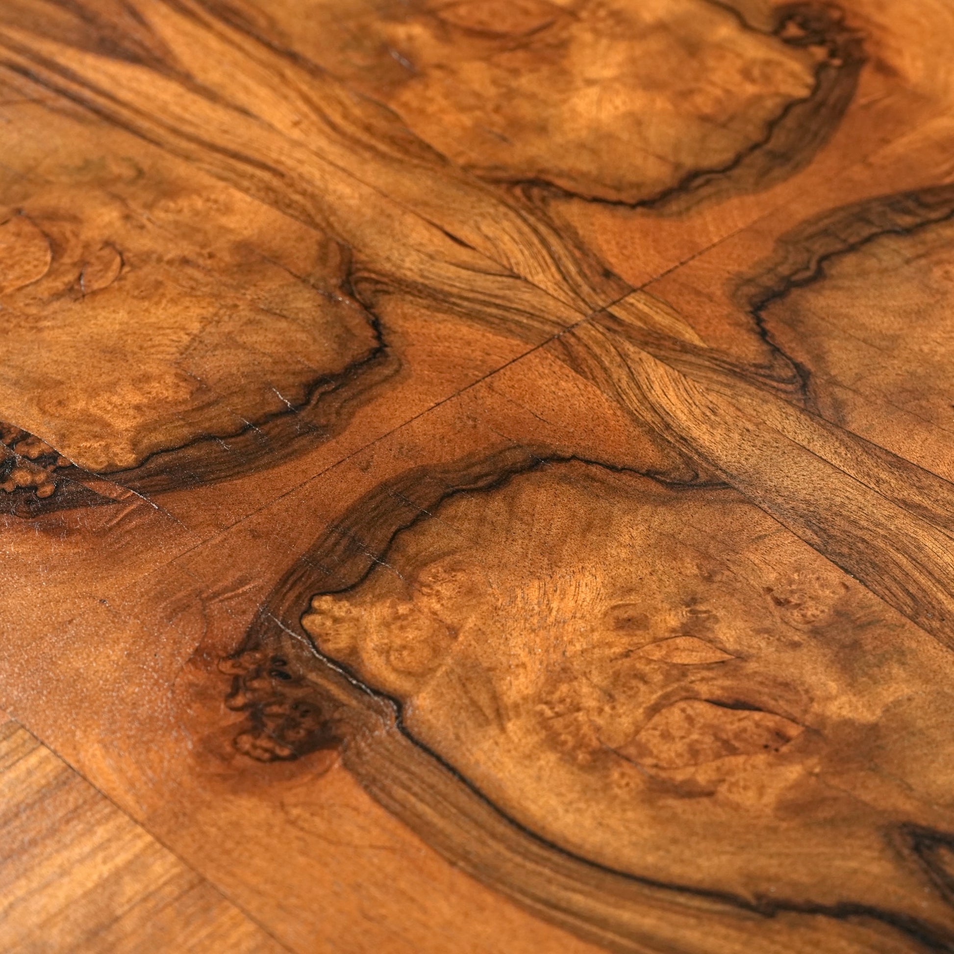 ウォルナットの見事な杢目が光る英国アンティーク