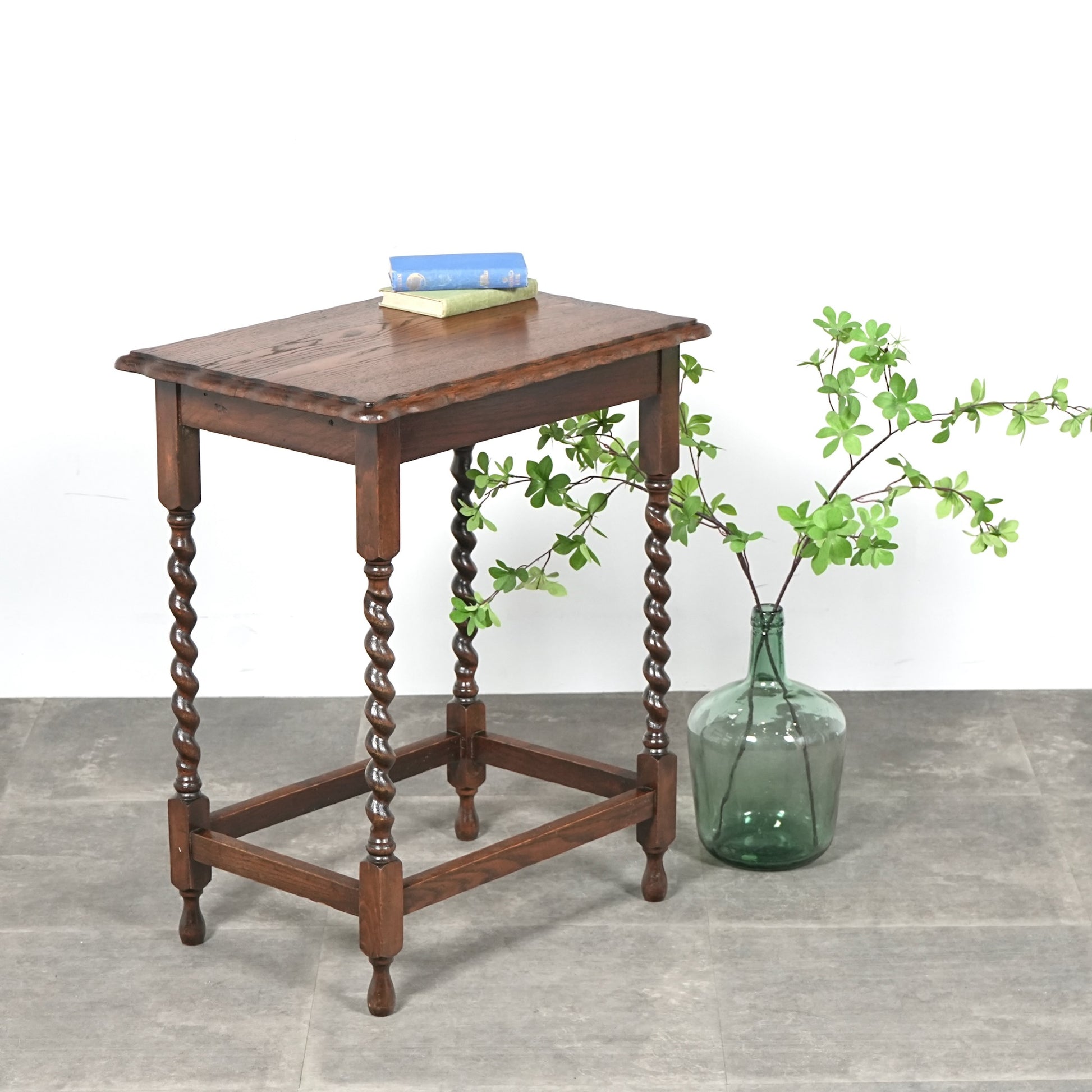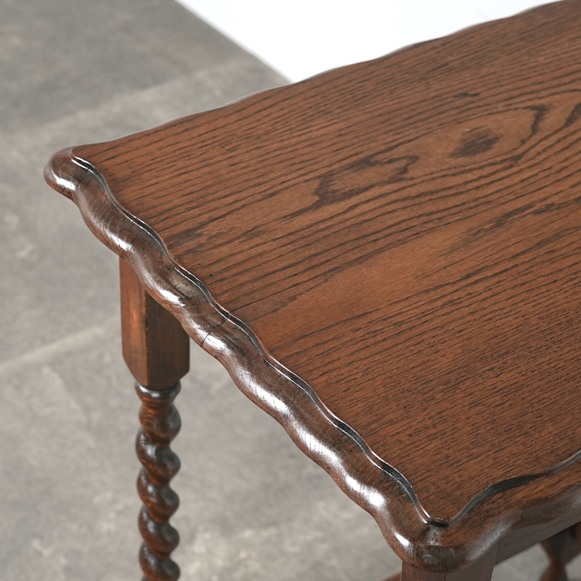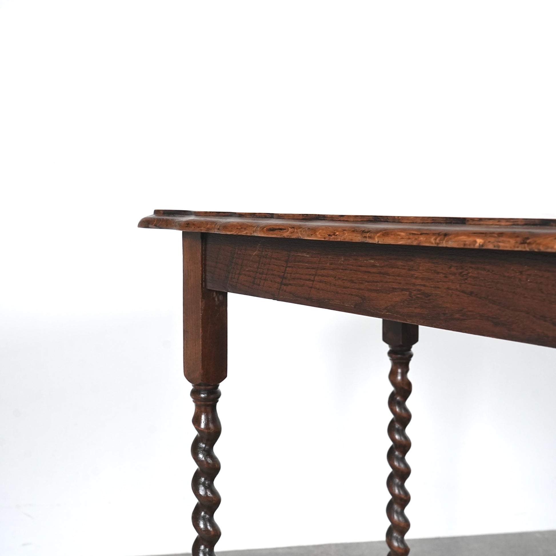 "バーリーシュガーツイスト"とも呼ばれる脚部のツイストレッグが本当に美しく、天板縁の優雅な曲線美も見事。