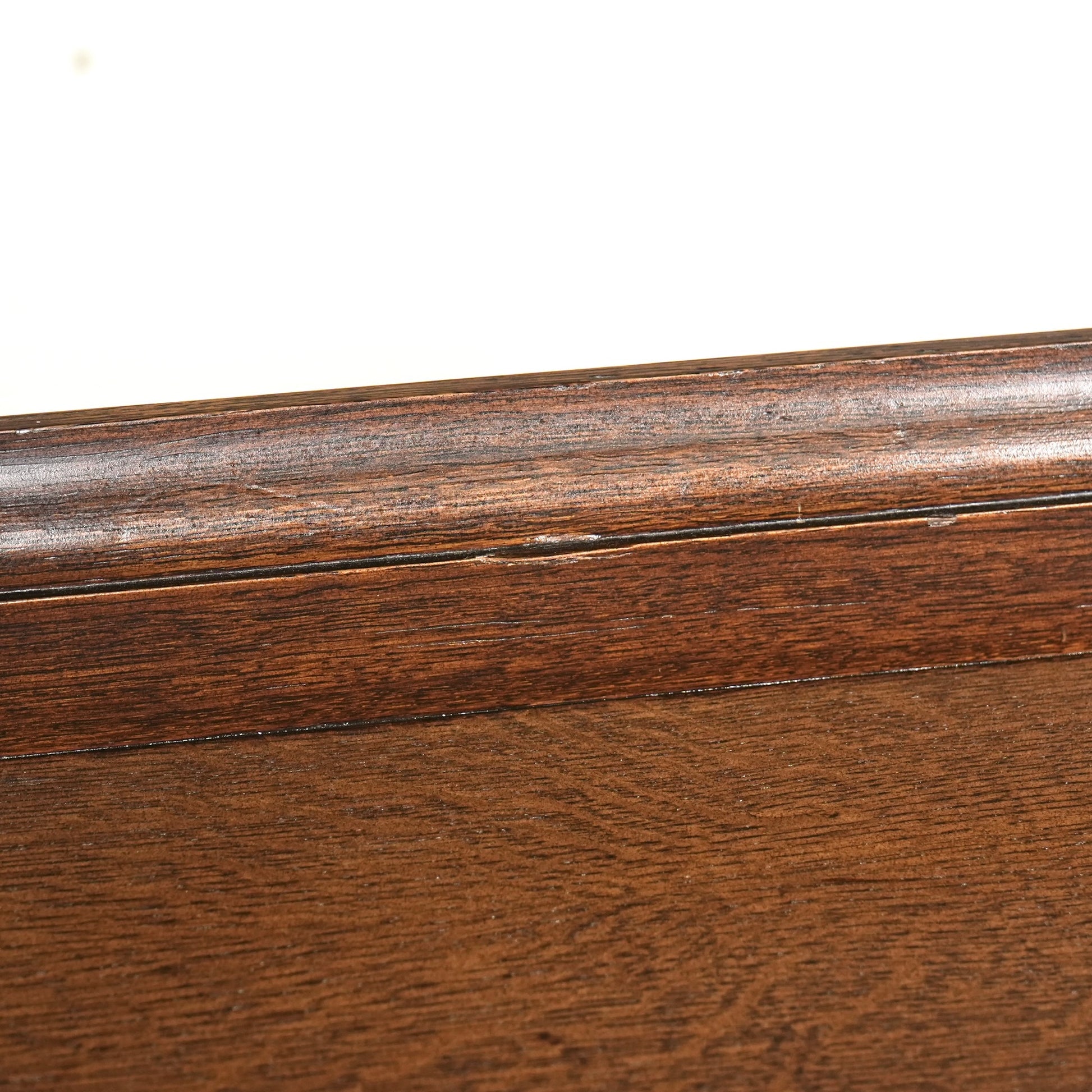 100年近い年月を経た本物のアンティーク家具となりますので、新品同様のコンディションに仕上げることはできないのですが、構造面のレストアに加えて、アンティーク特有の美しい風合いと表情を活かしながら丁寧に磨き上げました。