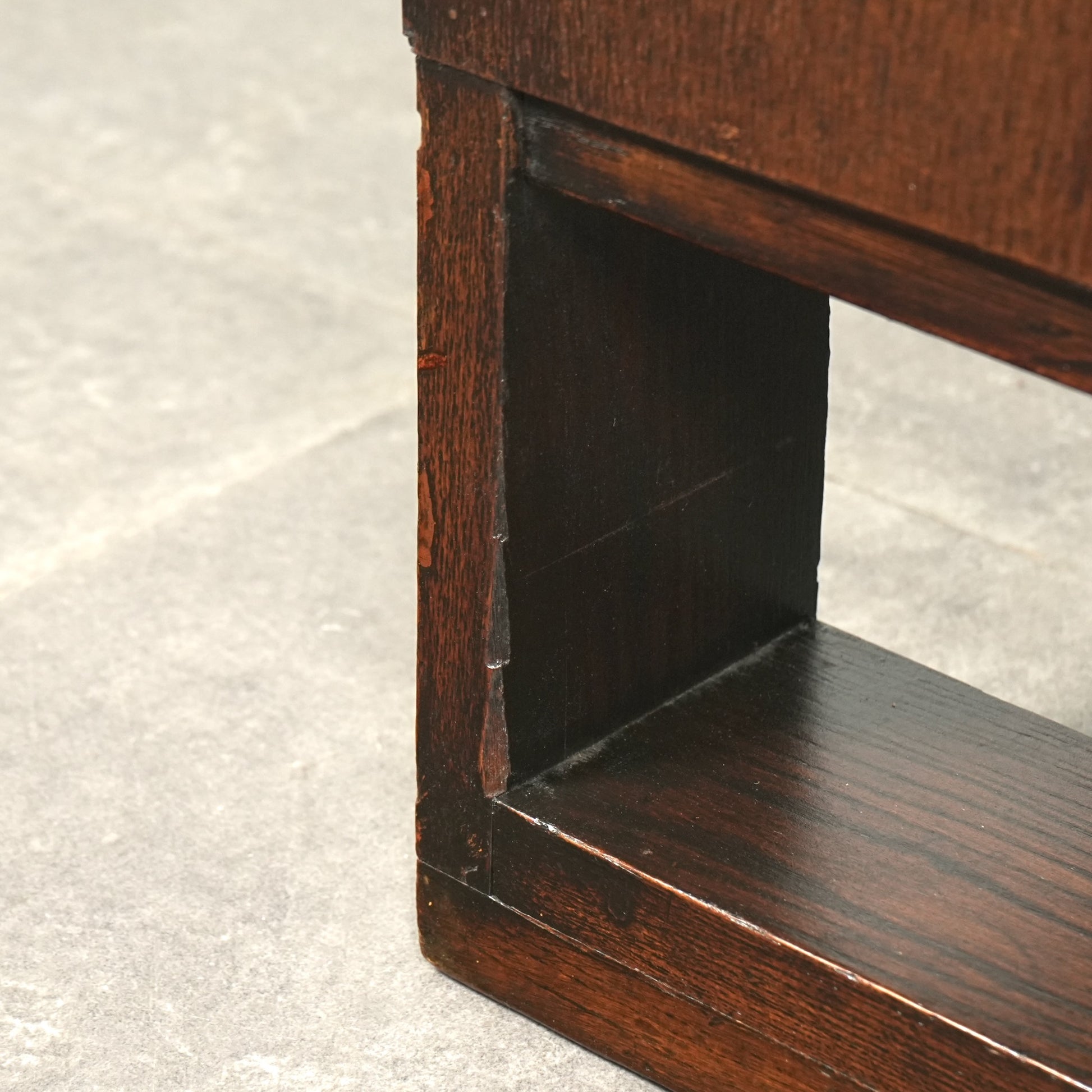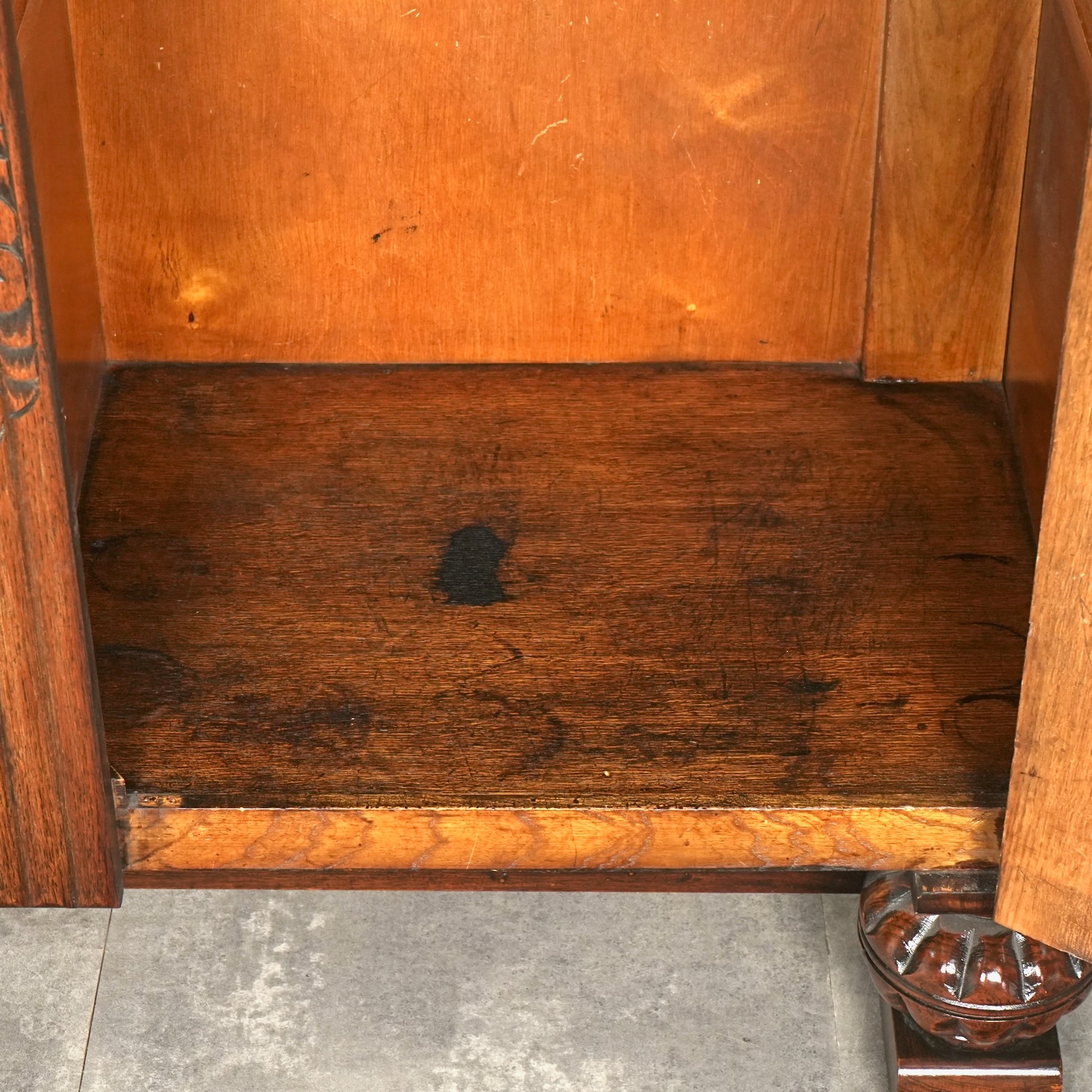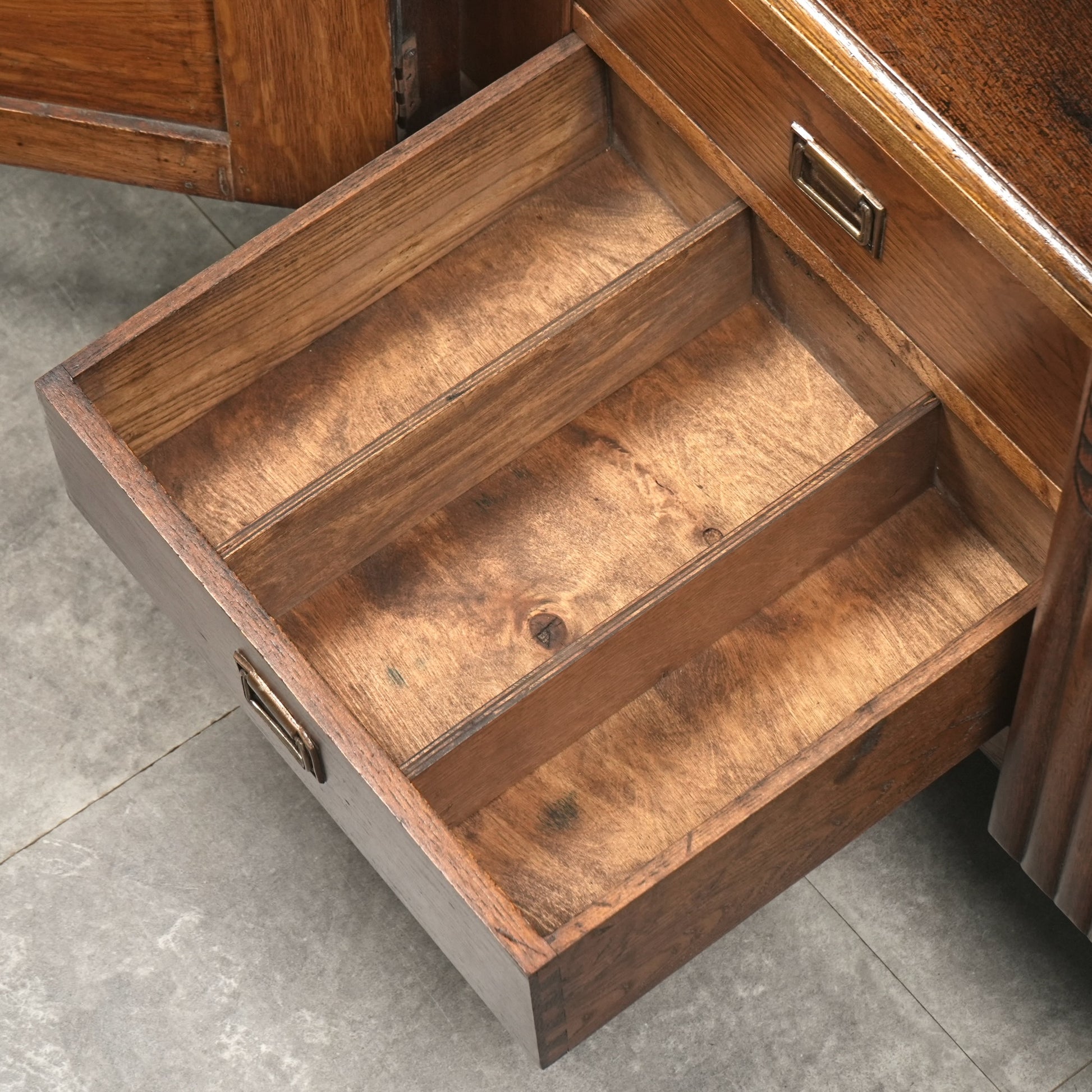 英国の伝統を感じさせる重厚で上品な佇まいで、オーク材の美しい木目と質感、随所に手作業で施された装飾や丁寧な作り込みからは当時の職人の高い技術と多大な労力が窺える上質な逸品で、まさに英国アンティークの魅力が詰まったアイテムと言えるでしょう。