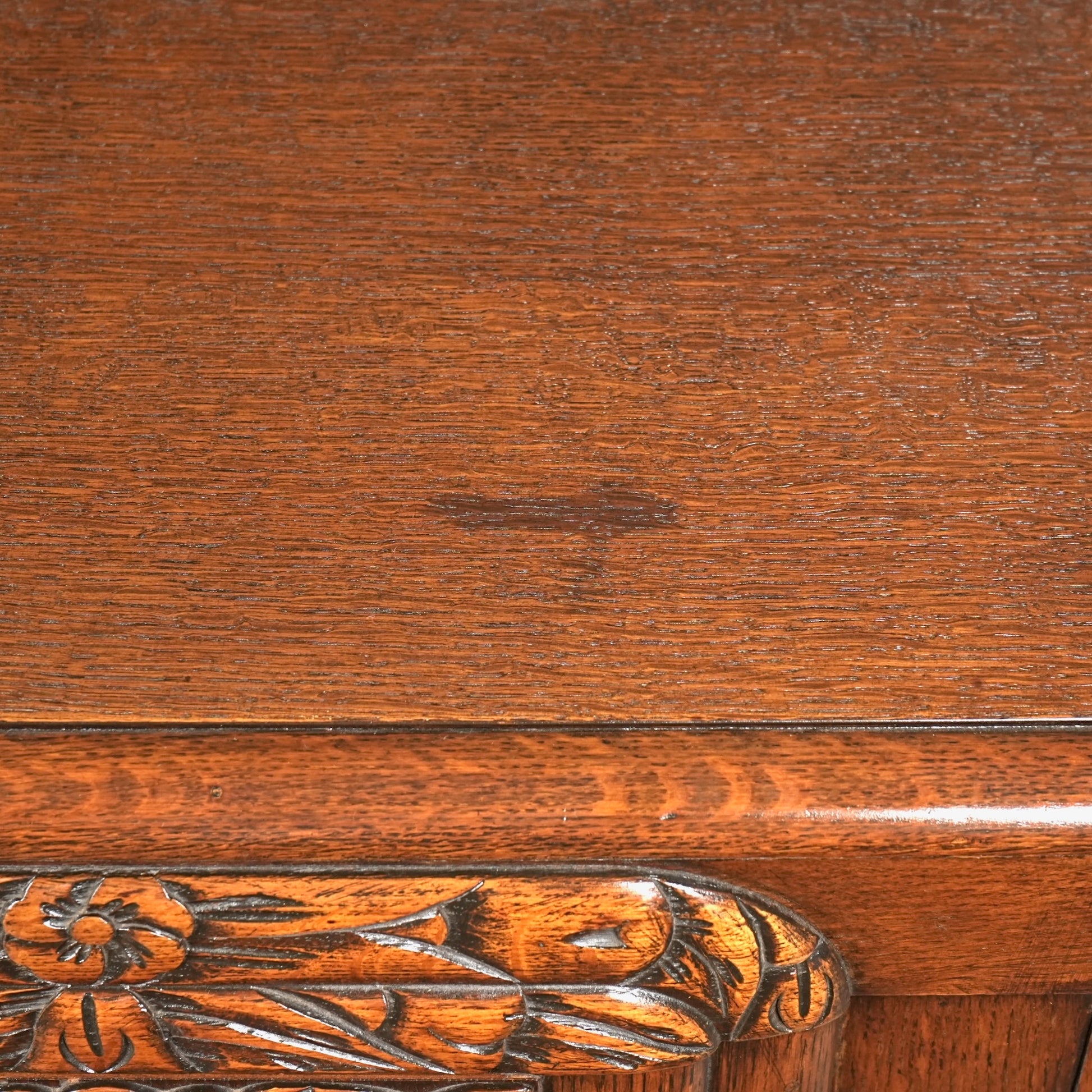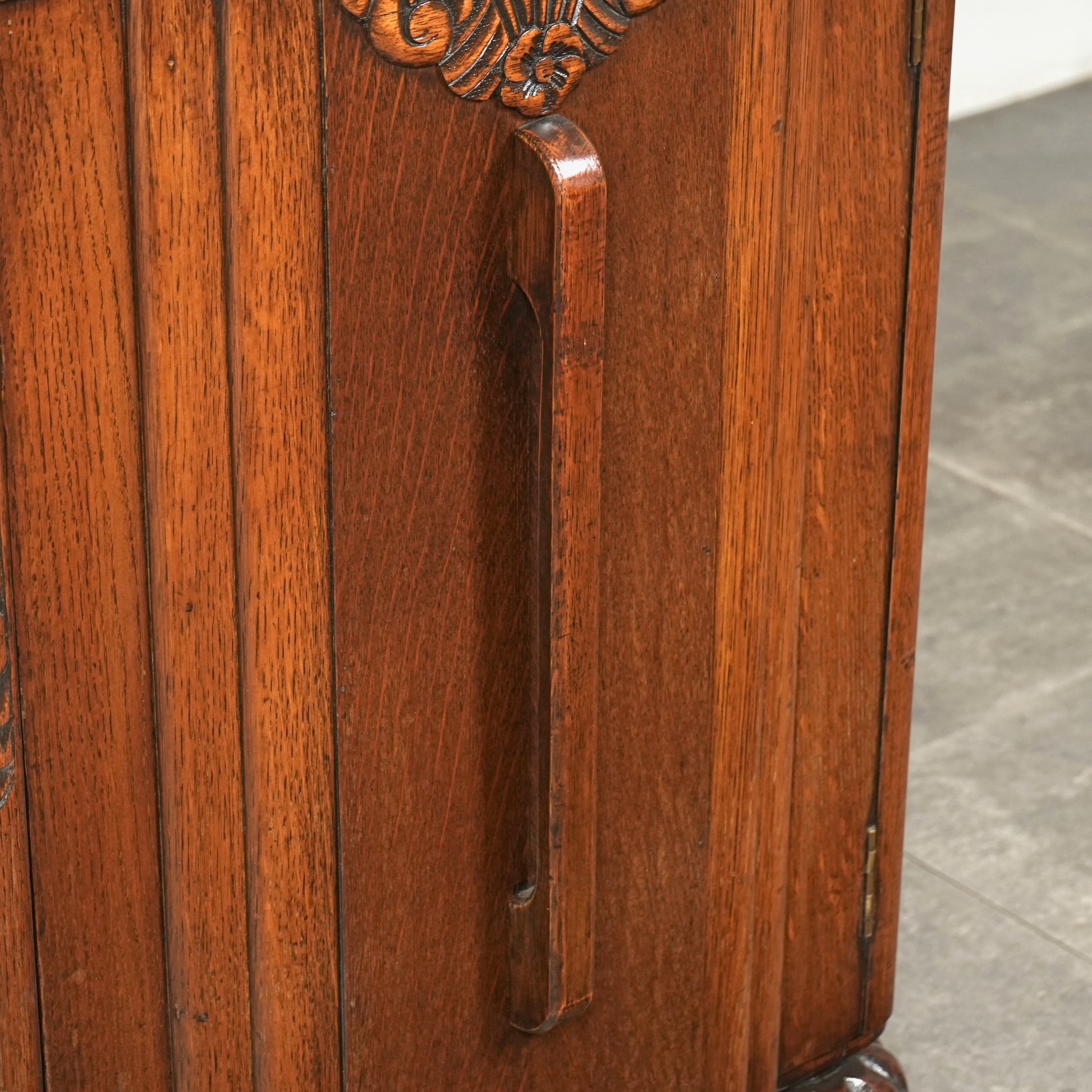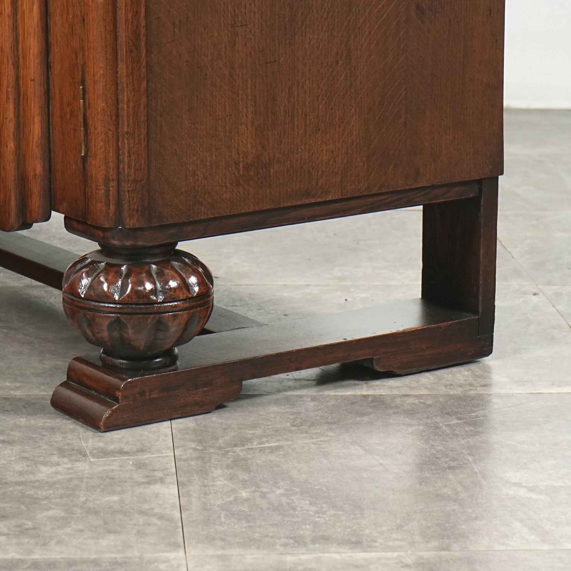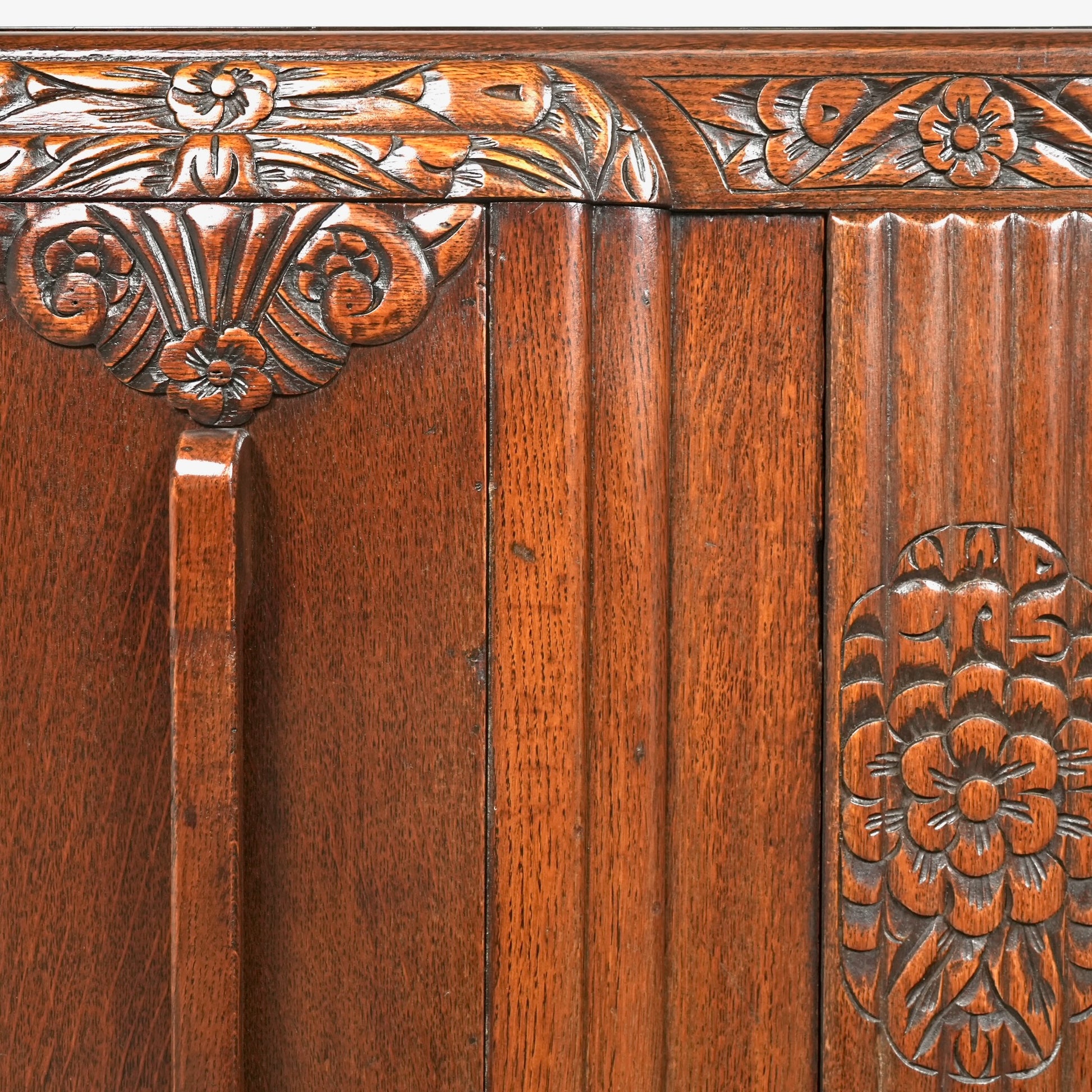 英国の伝統を感じさせる重厚で上品な佇まいで、オーク材の美しい木目と質感、随所に手作業で施された装飾や丁寧な作り込みからは当時の職人の高い技術と多大な労力が窺える上質な逸品で、まさに英国アンティークの魅力が詰まったアイテムと言えるでしょう。