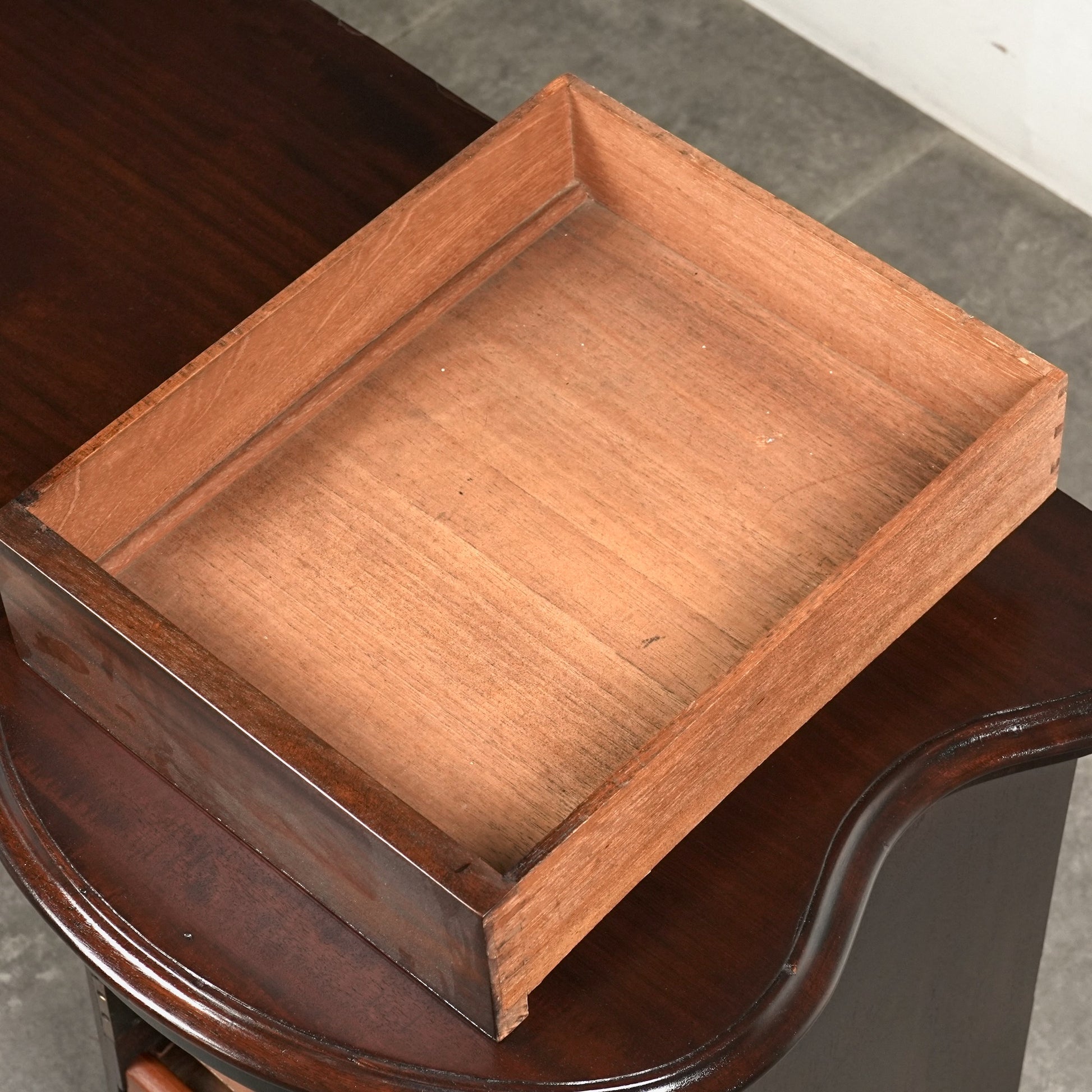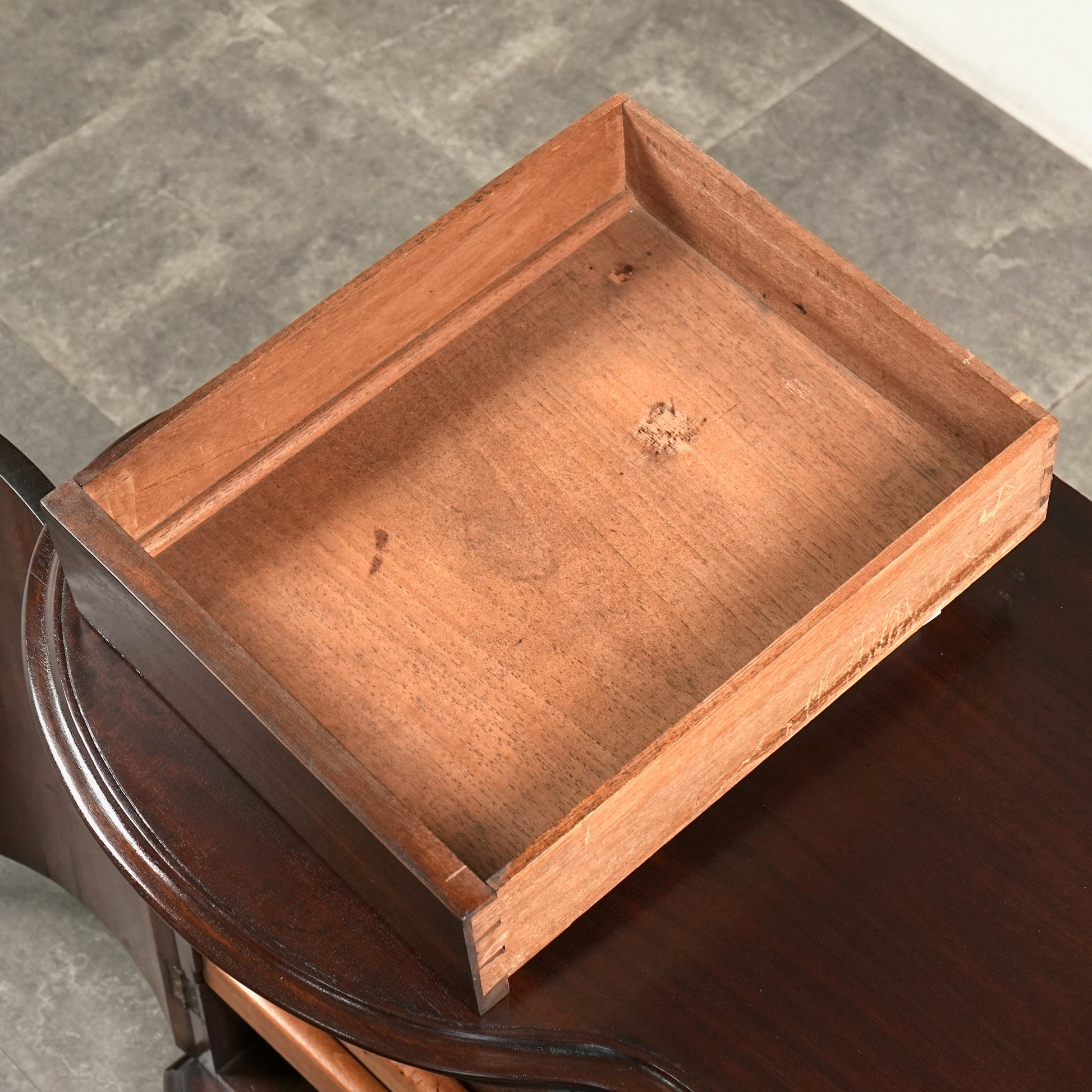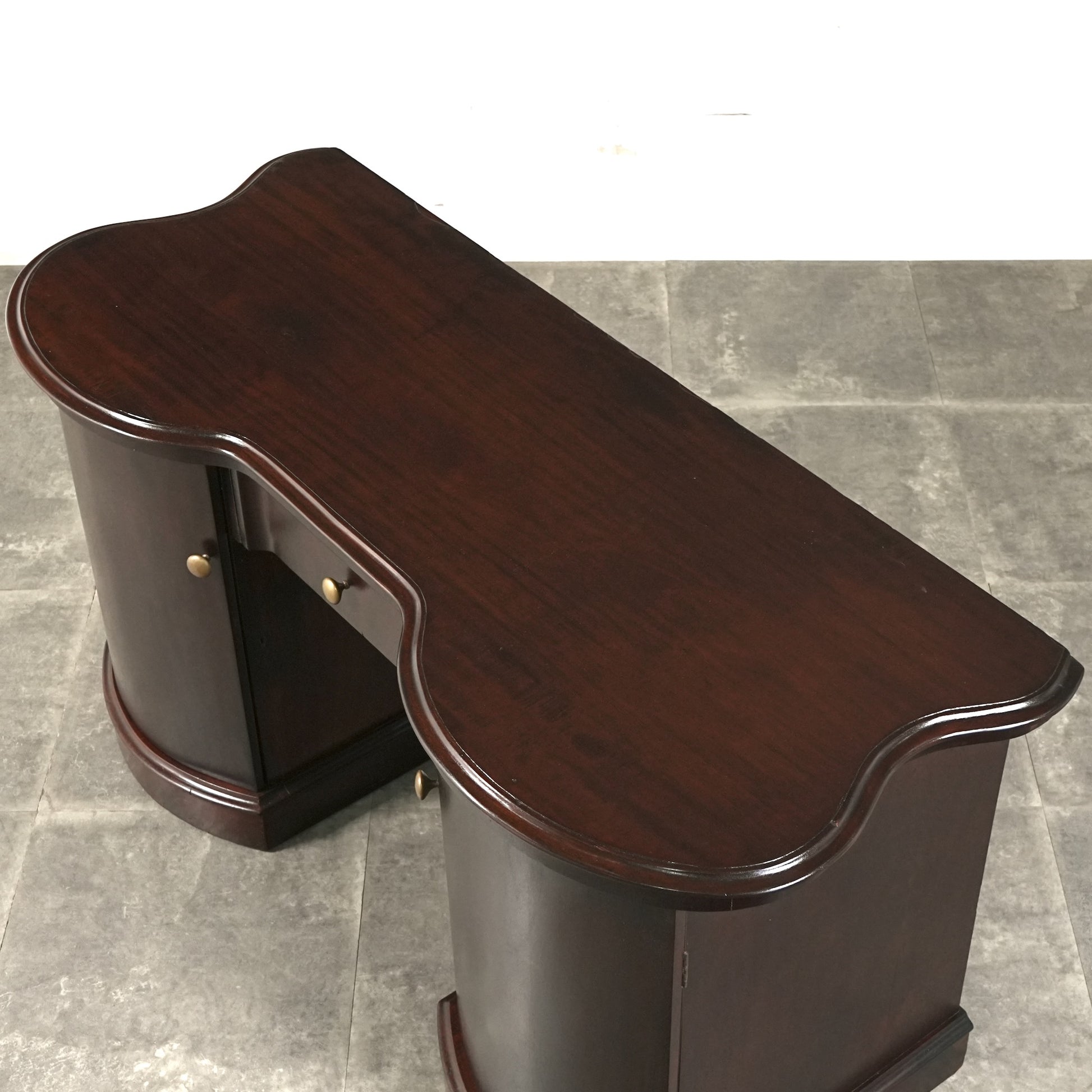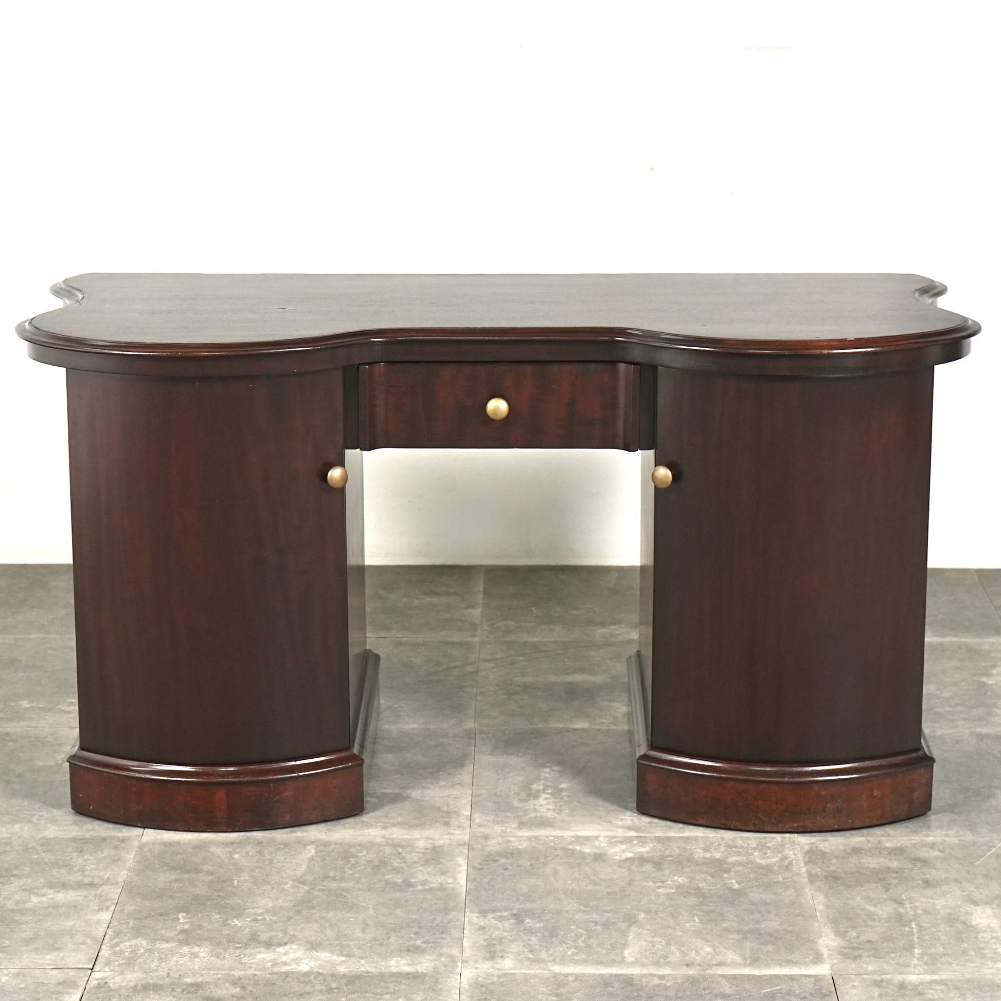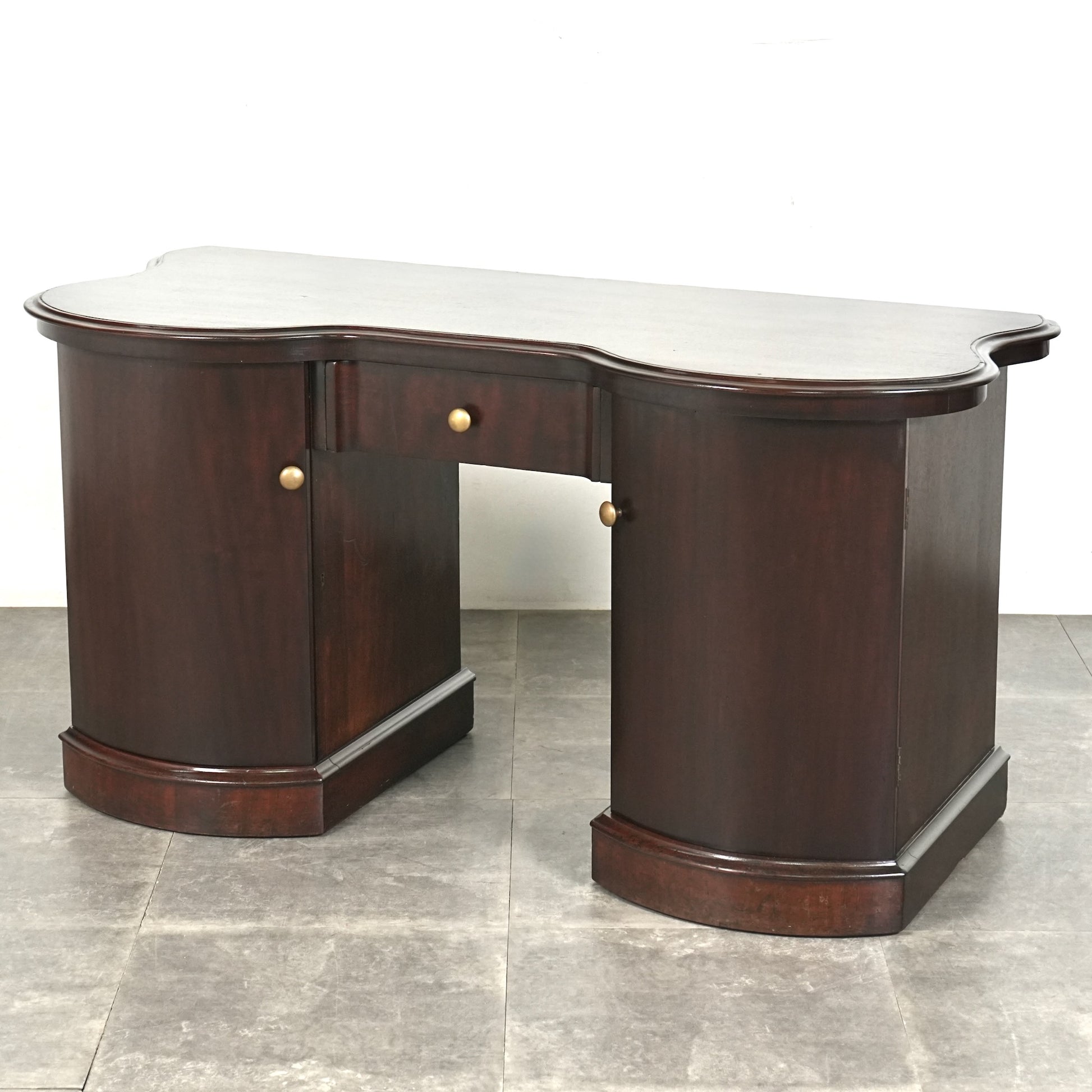 当時の流行でもあったアールデコの影響を感じさせる美しいシルエットと、良質なマホガニーによる重厚な佇まいが印象的です。
