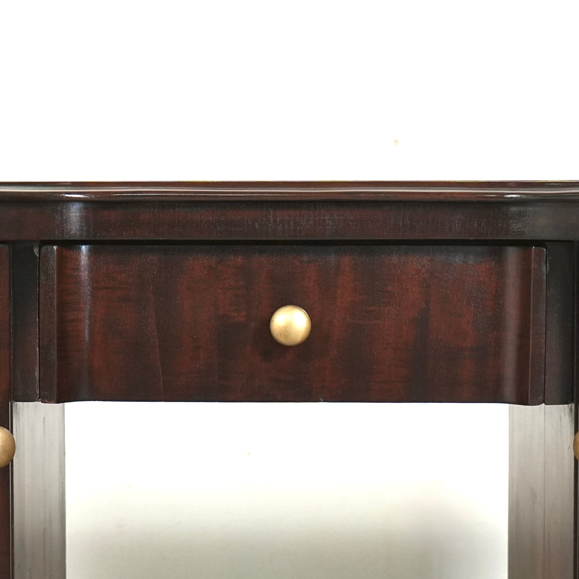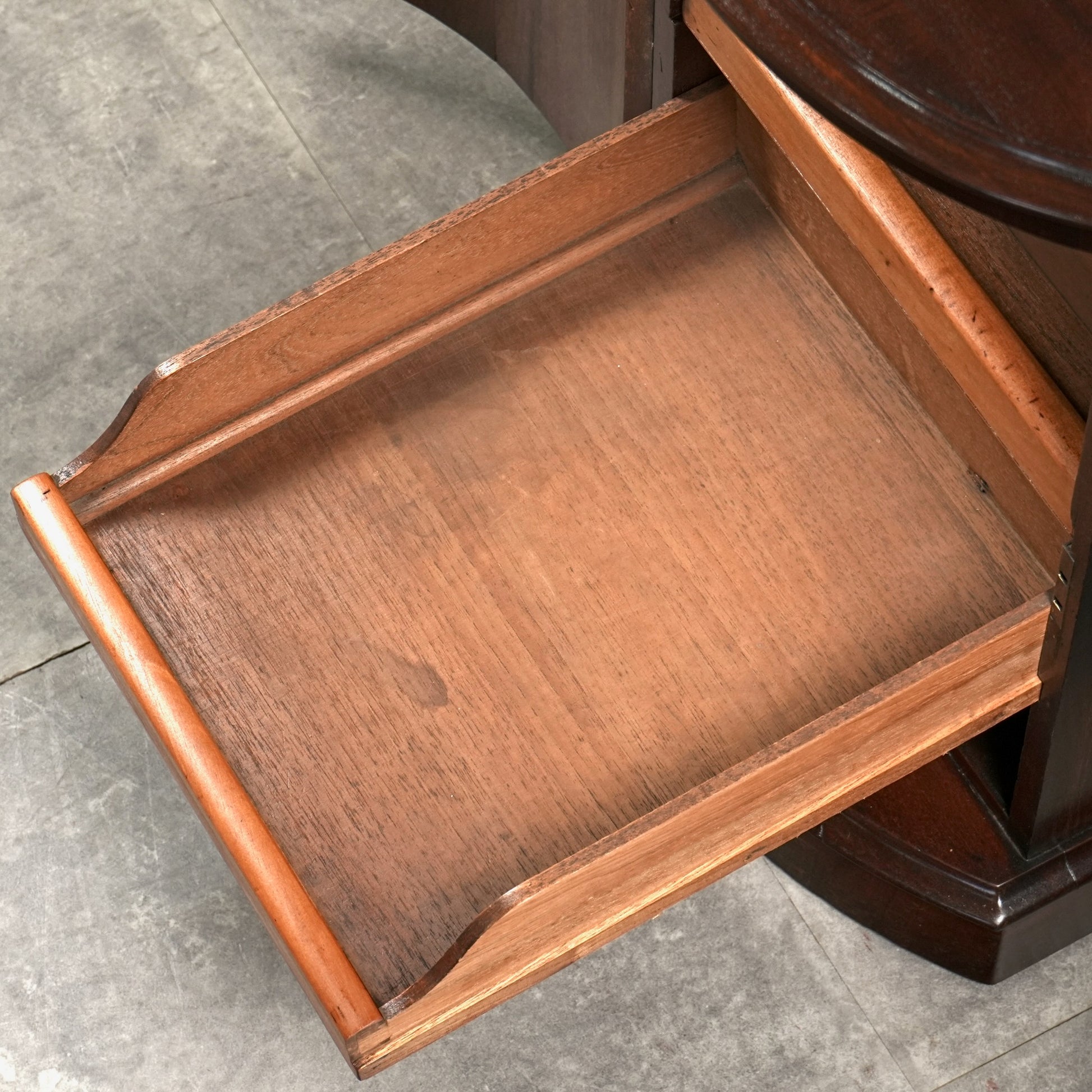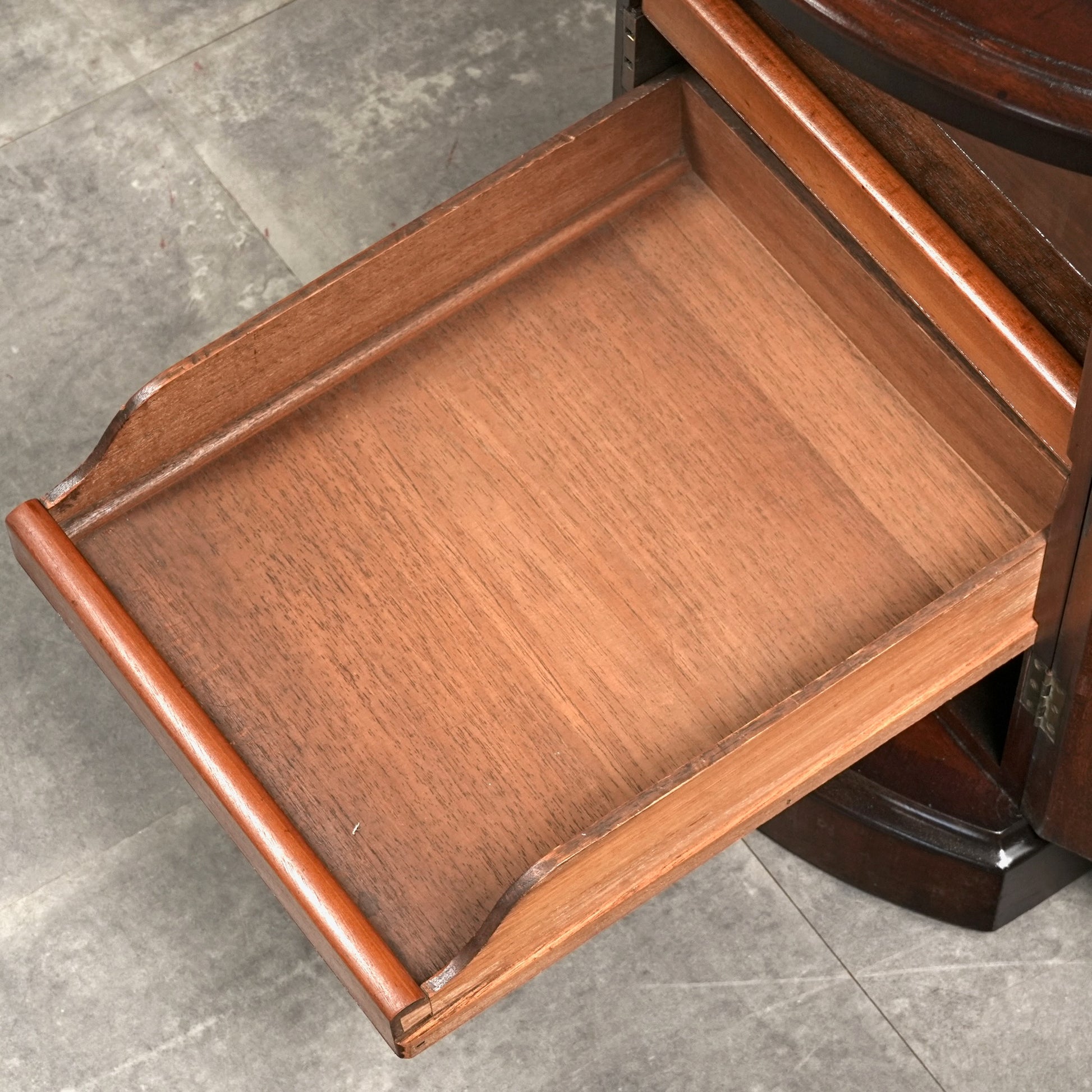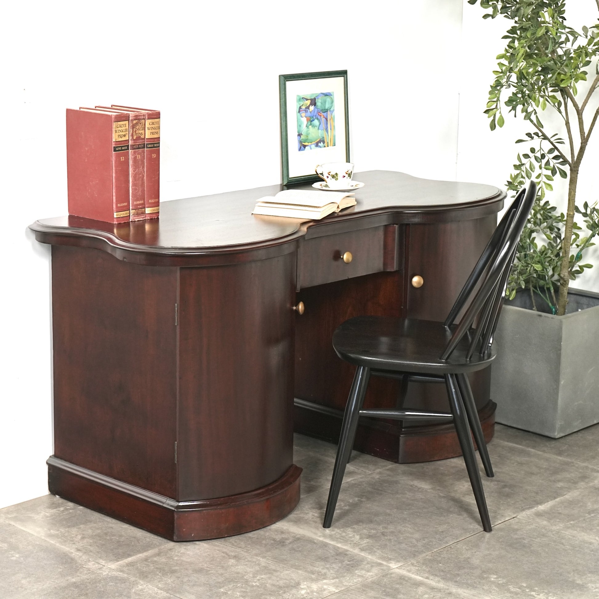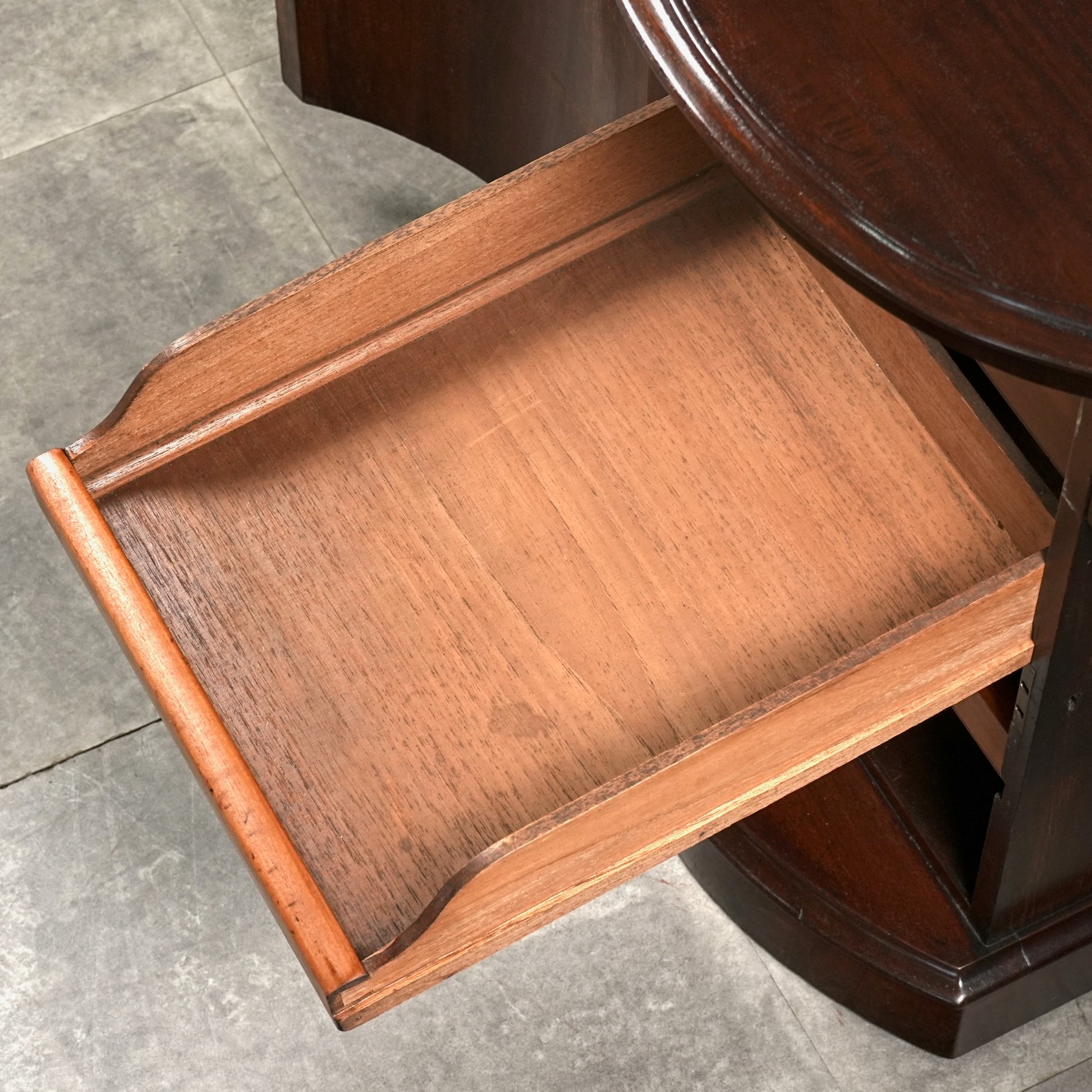 当時の流行でもあったアールデコの影響を感じさせる美しいシルエットと、良質なマホガニーによる重厚な佇まいが印象的です。