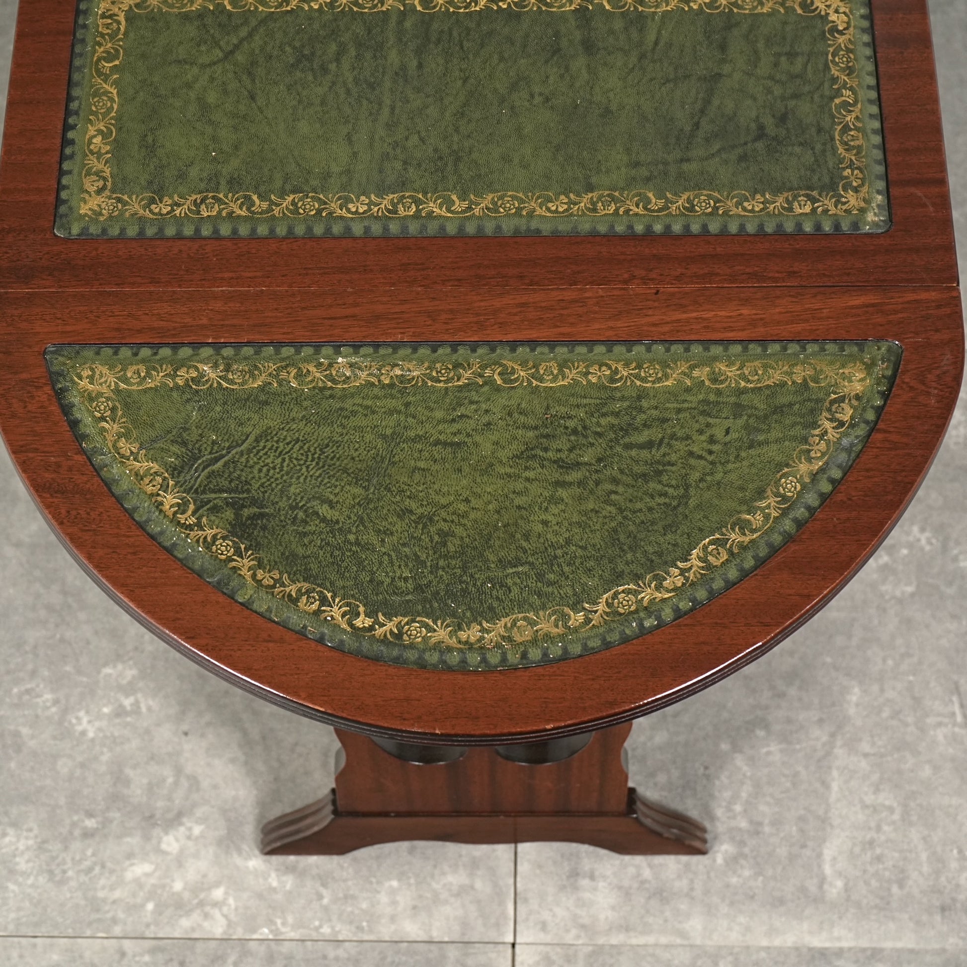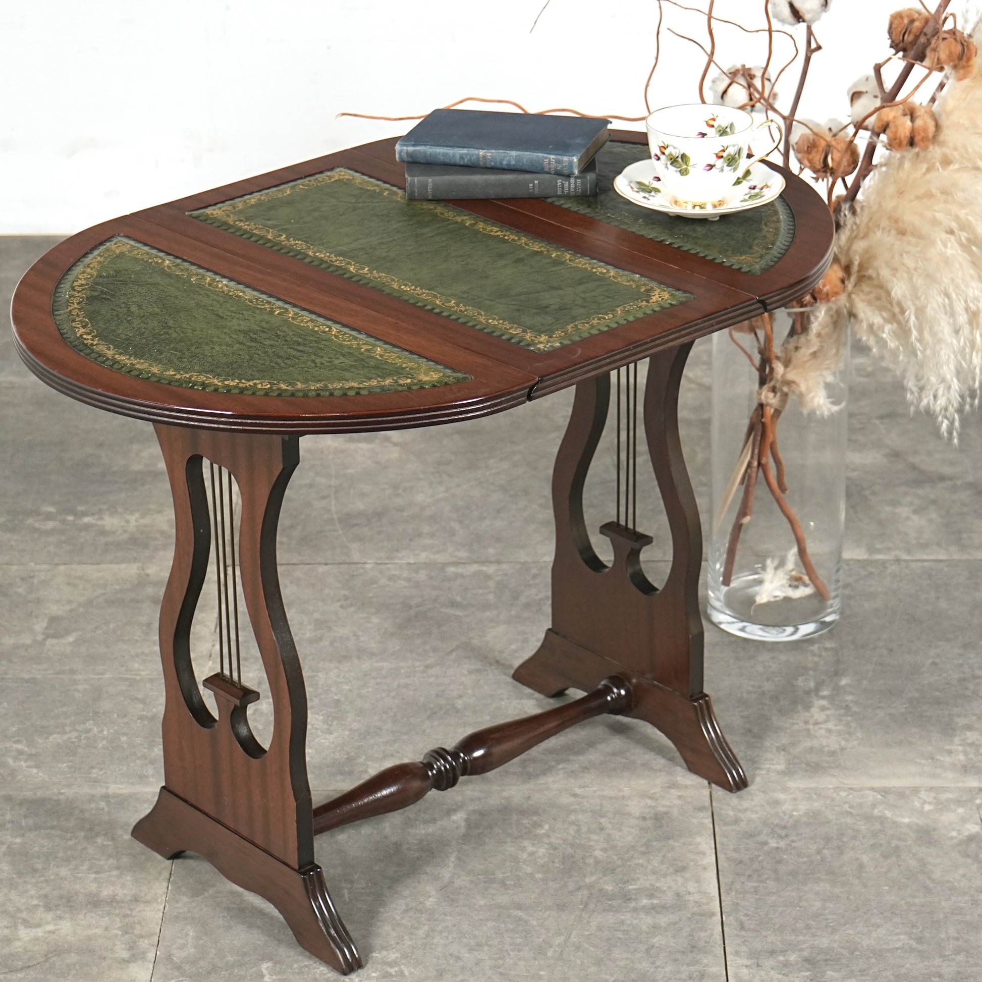 脚部の美しいデザインや深みのあるレザートップ、高品質なマホガニー材の落ち着いた色味なども相まって本当に上品な佇まいで、小型家具ながらもしっかりと空間のアクセントとなってくれそうです。
