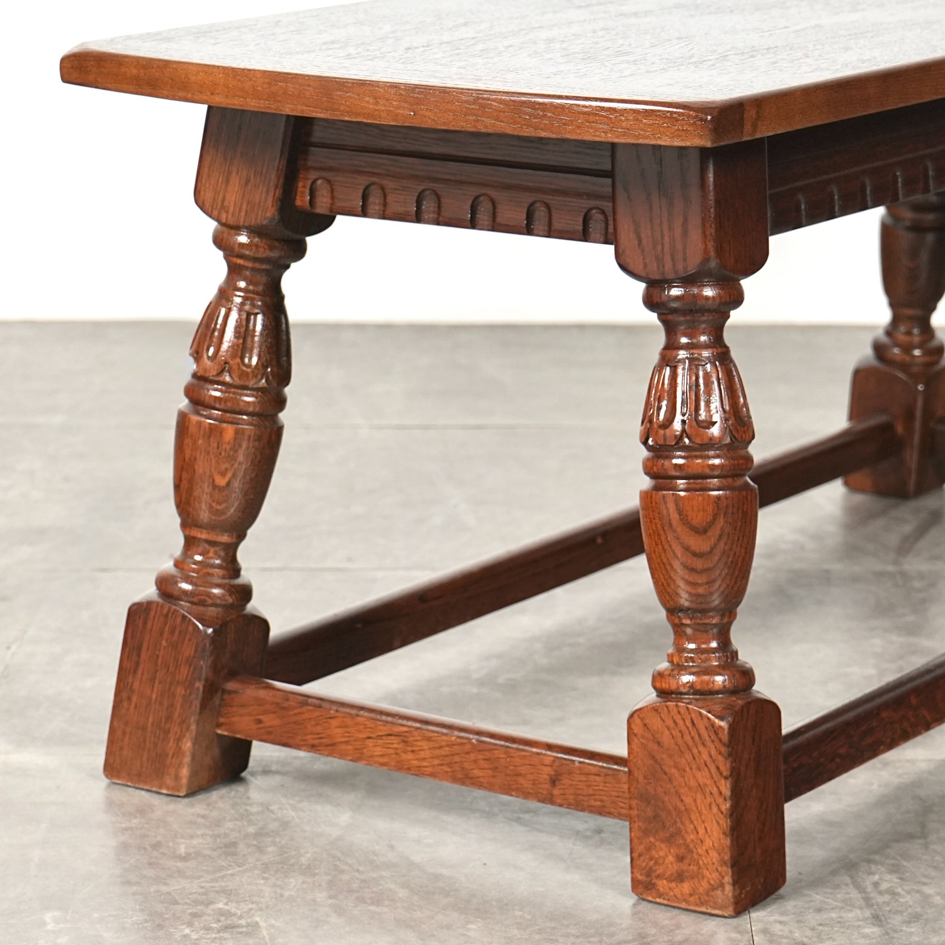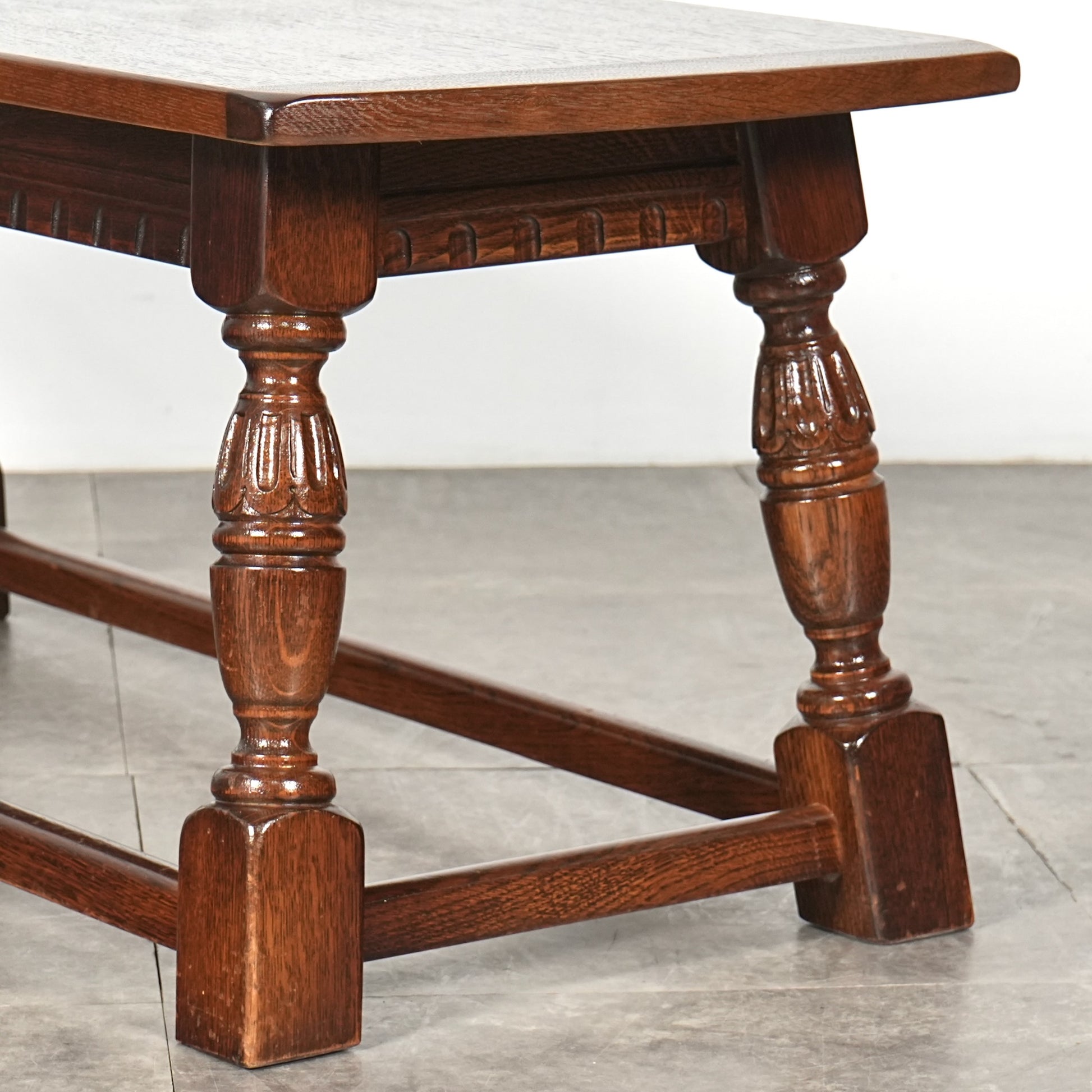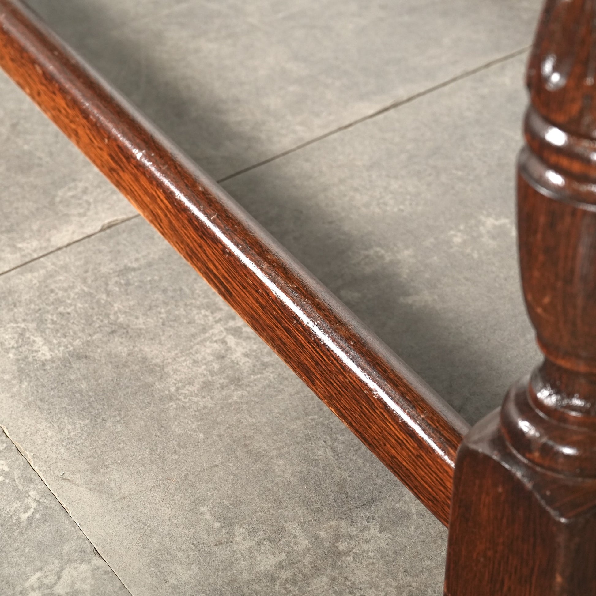 良質なオーク材の見事な質感や重厚感だけでなく、脚部の挽物細工や幕板のさり気ない意匠など細部までしっかりと作り込まれた高品質なヴィンテージアイテムです。