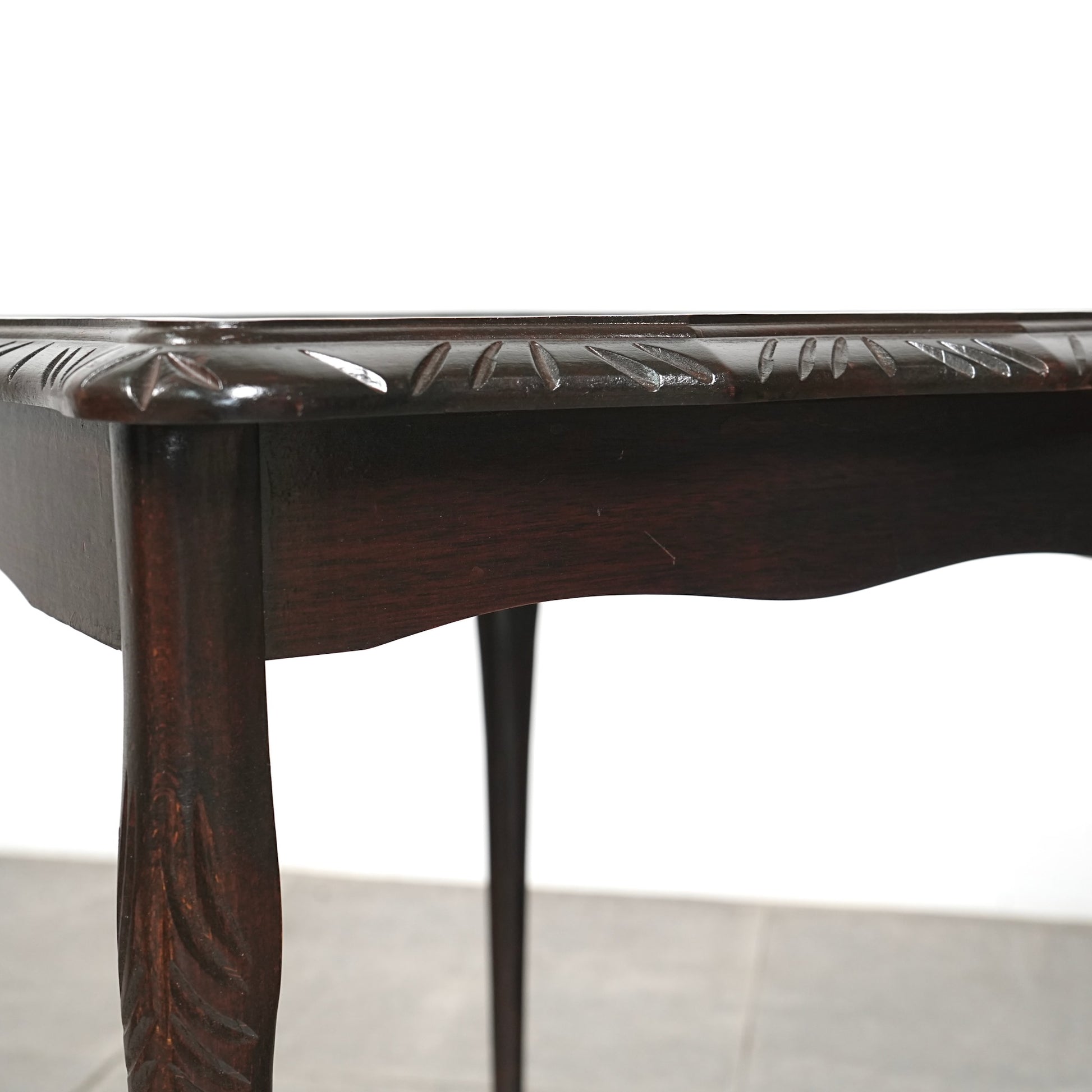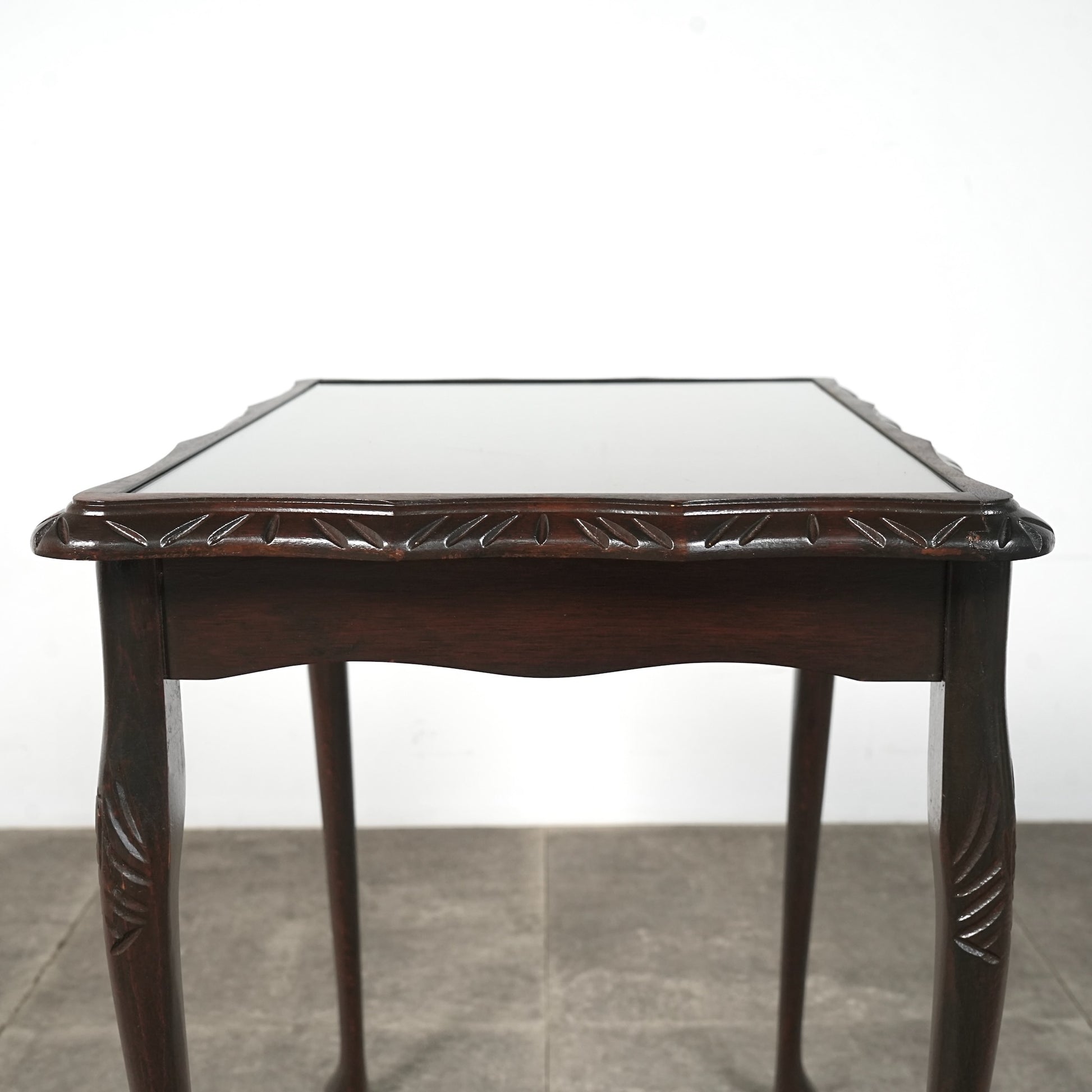 こちらはビーチ材のフレームに施された美しい意匠や、天板のマホガニー材の美しい木目が魅力的で、実用性とデザイン性を見事に両立させています。