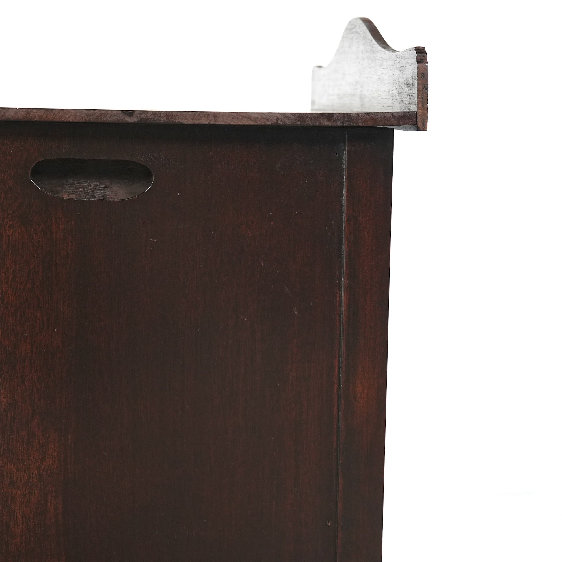 良質なマホガニー材の深みある木肌とクラシカルな扉の意匠が相まって、英国家具らしい品格を漂わせています。