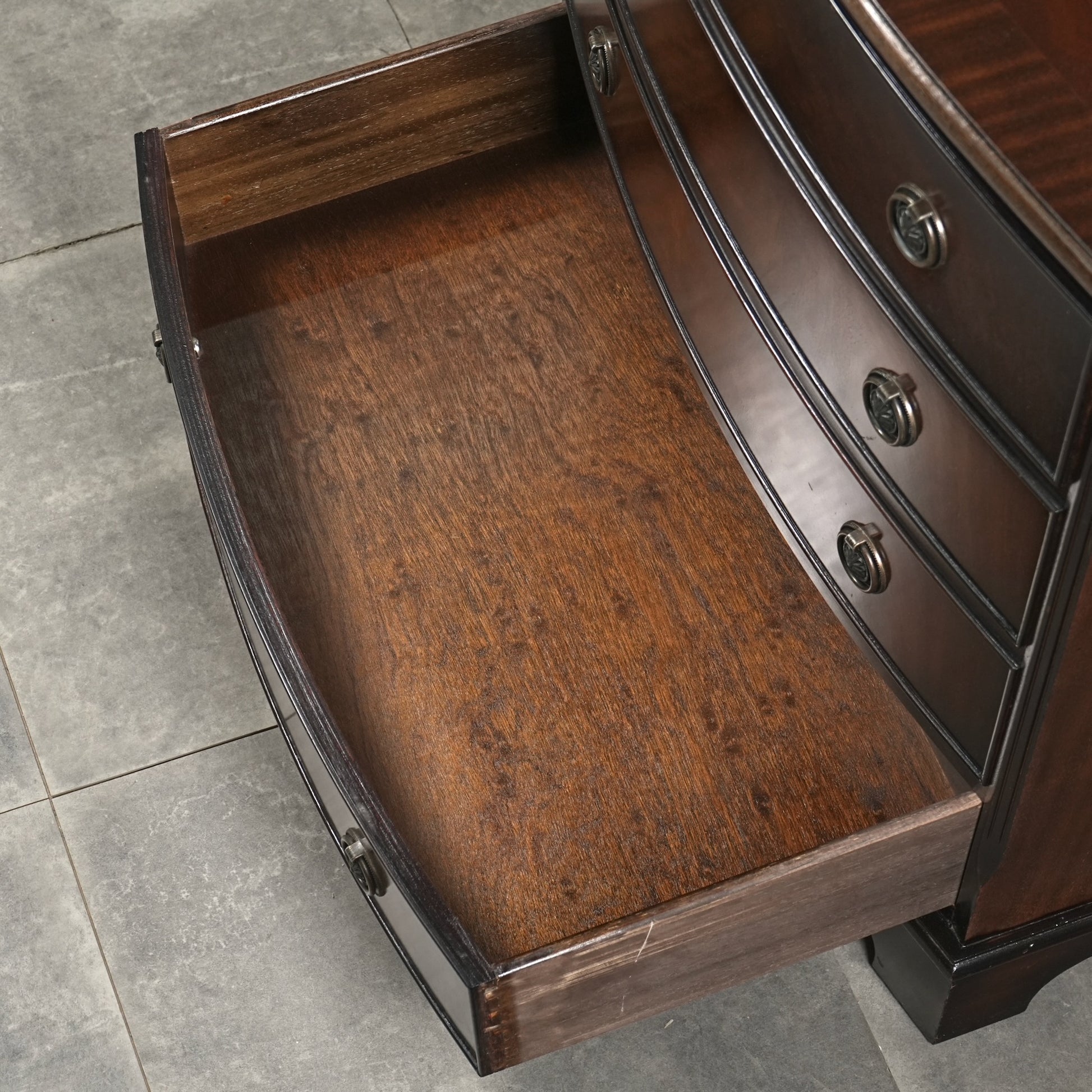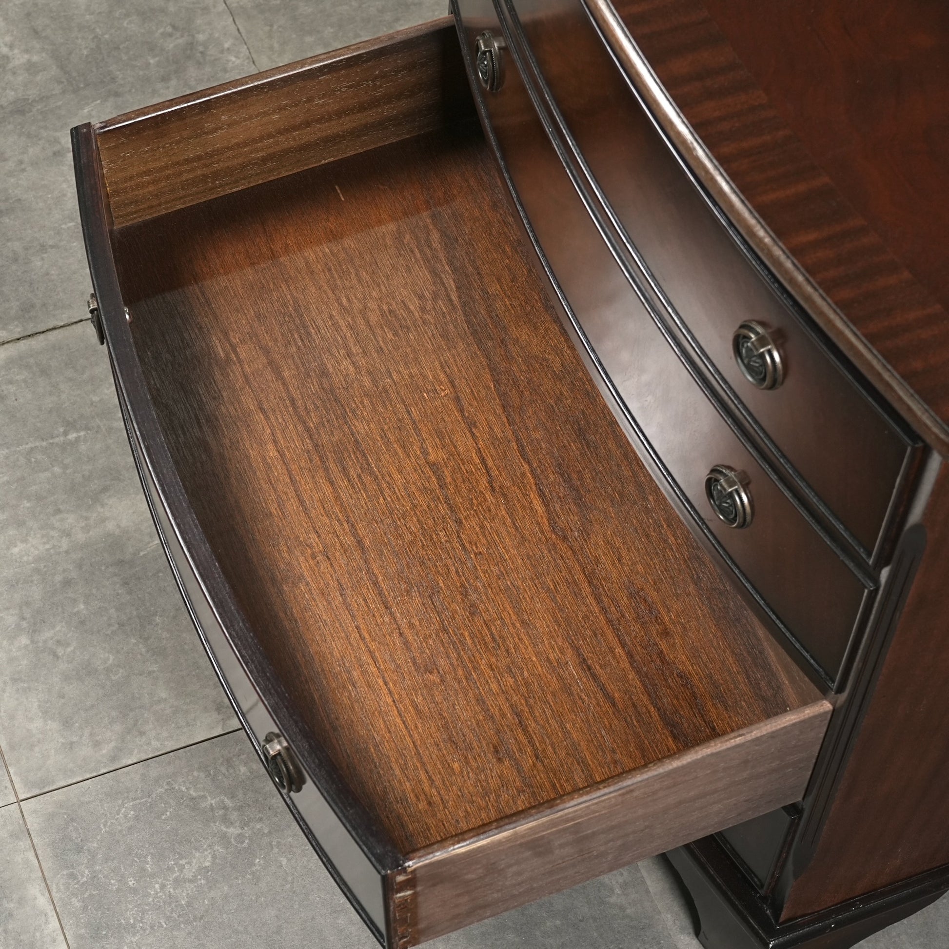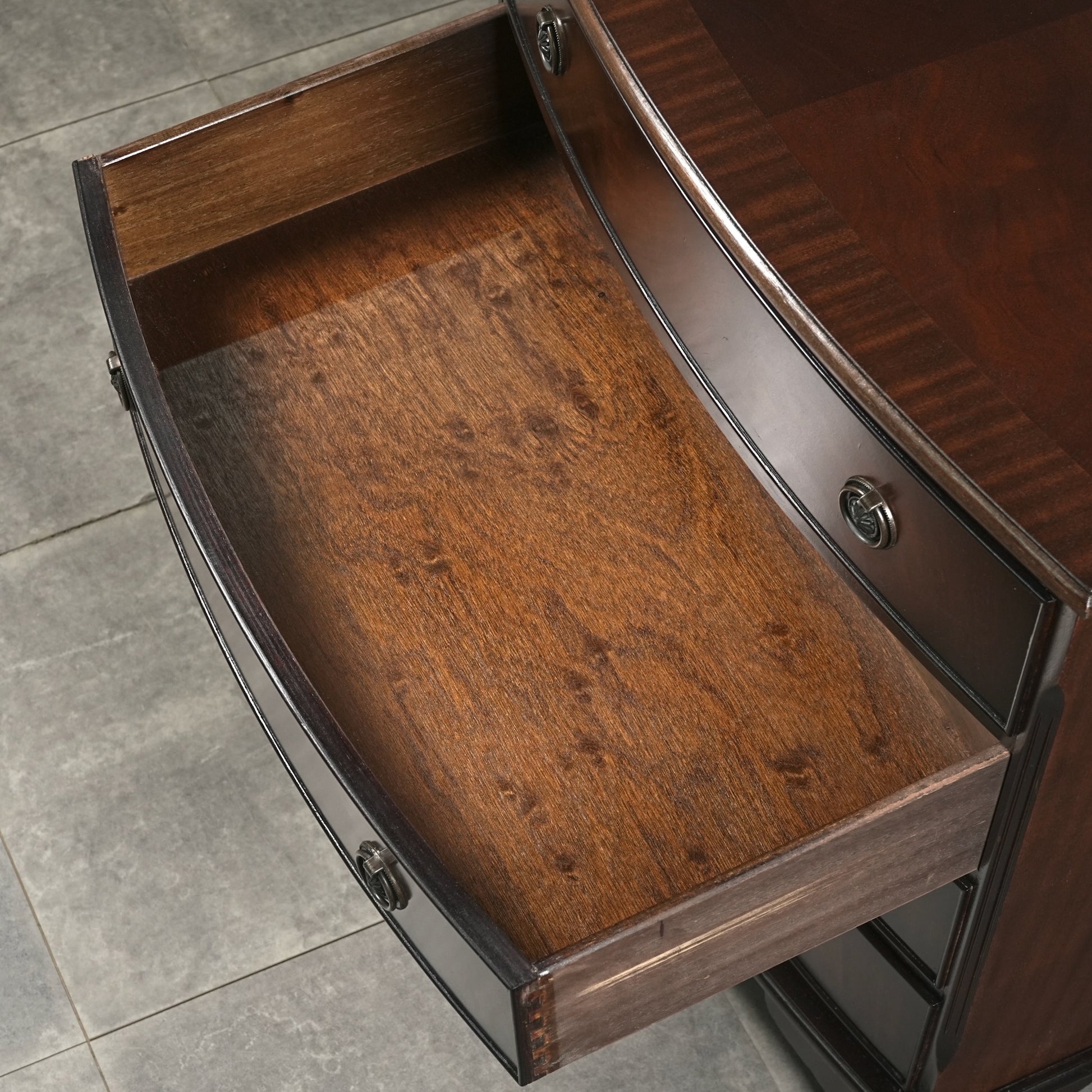 良質なマホガニー材の美しい木目と質感が最大の魅力で、英国クラシック家具ならではの本当に上品な佇まい。