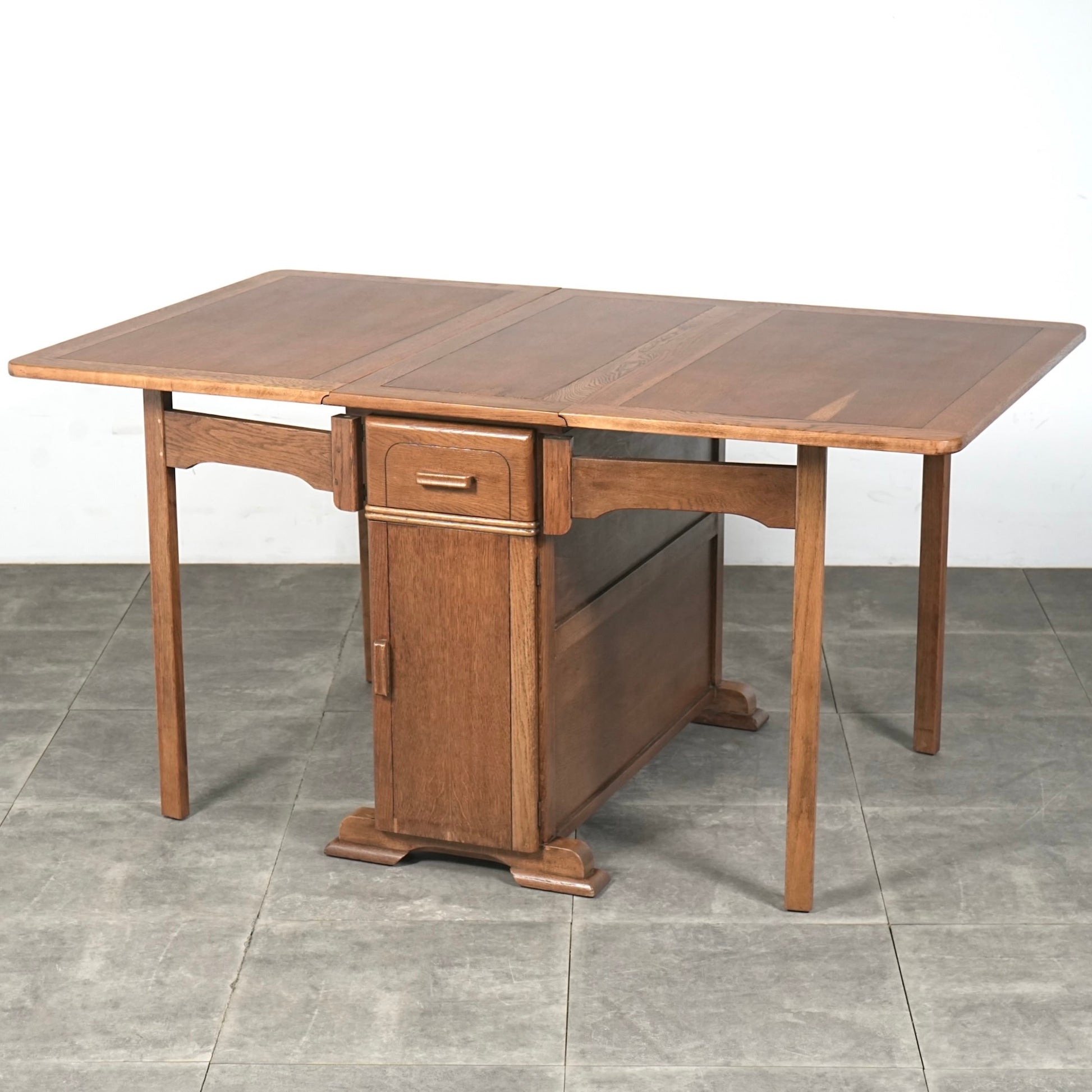 "ゲートレッグ"と呼ばれるイギリスの伝統的なスタイルで仕上げられたダイニングテーブル。