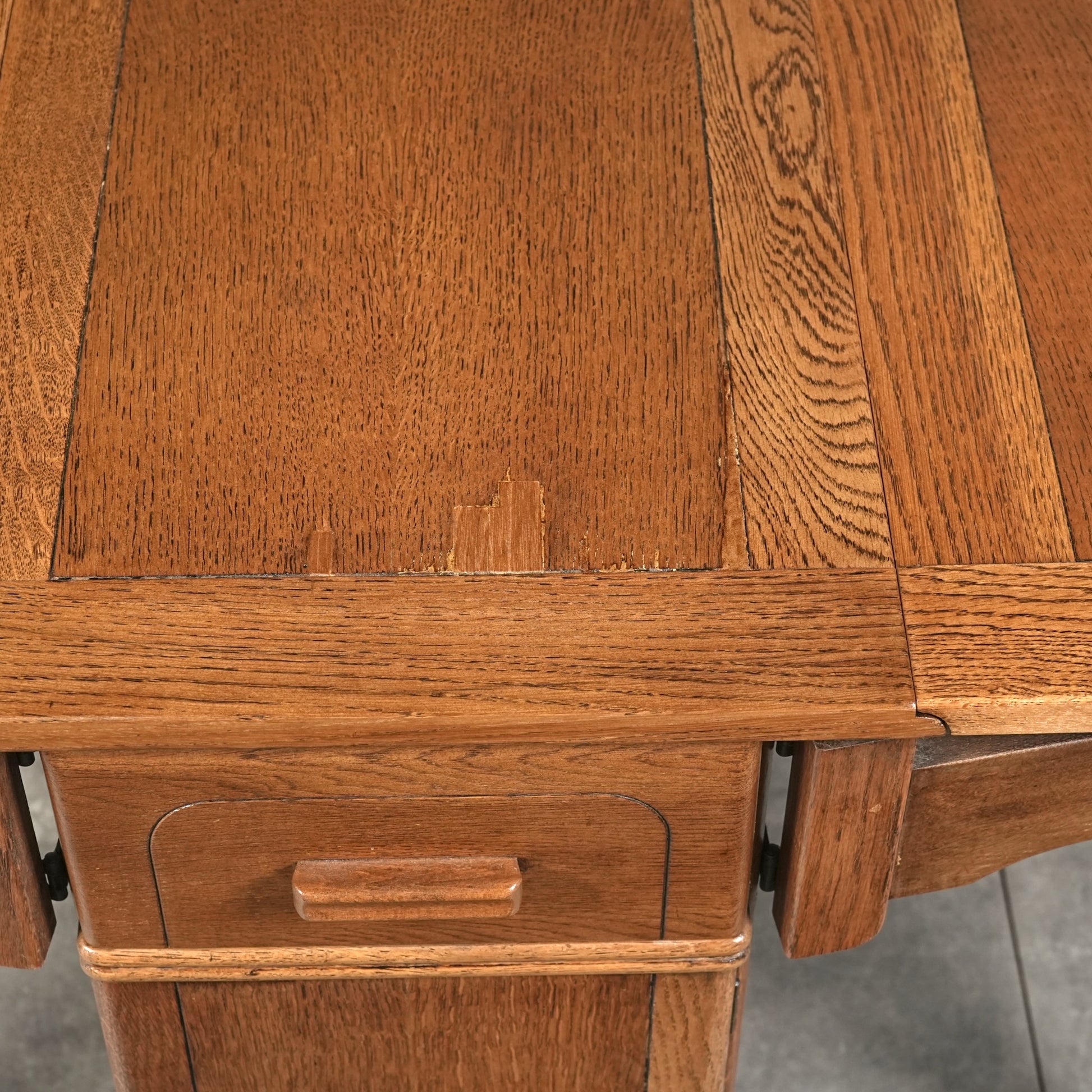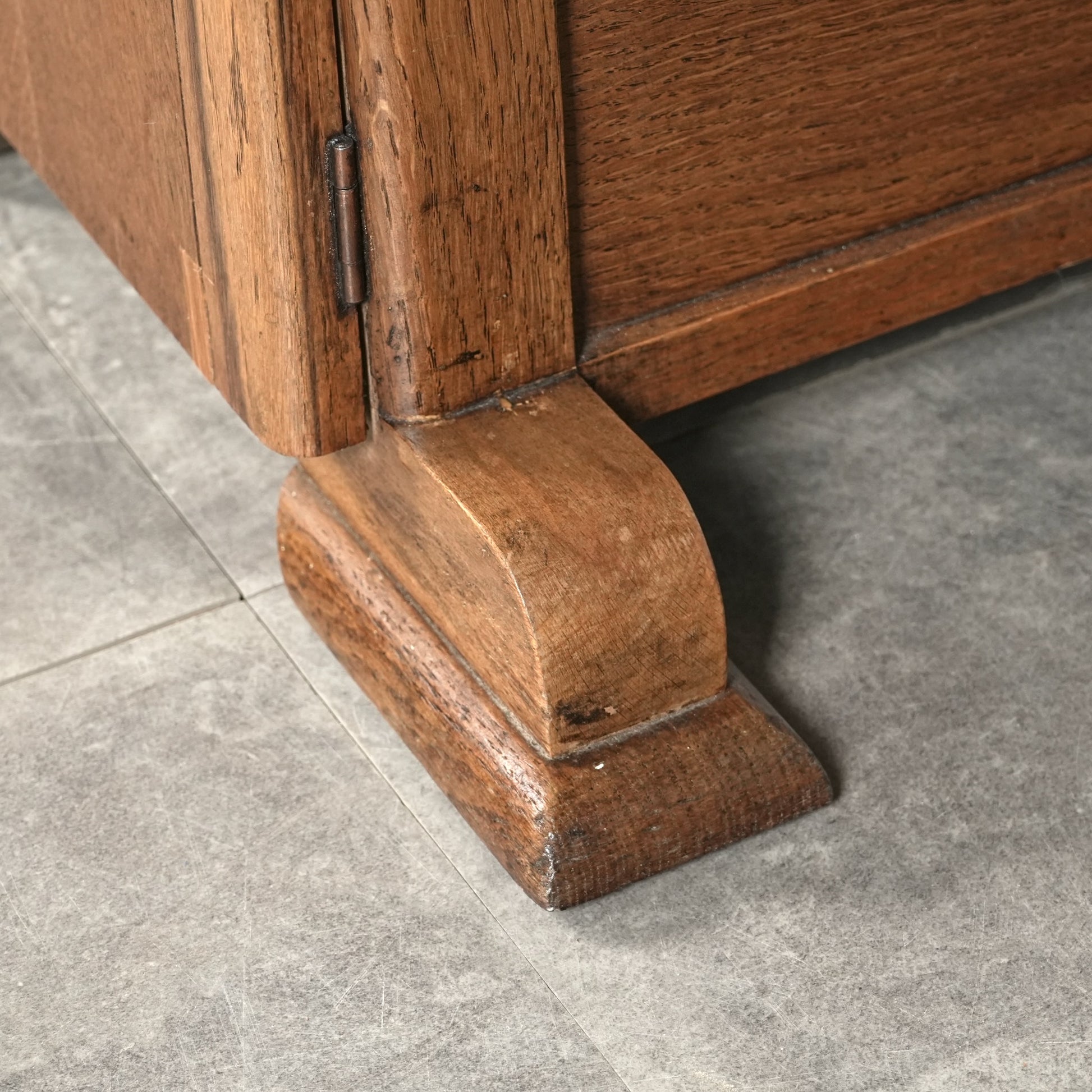 ・天板と扉の突板に、現地で施された補修跡がございます。