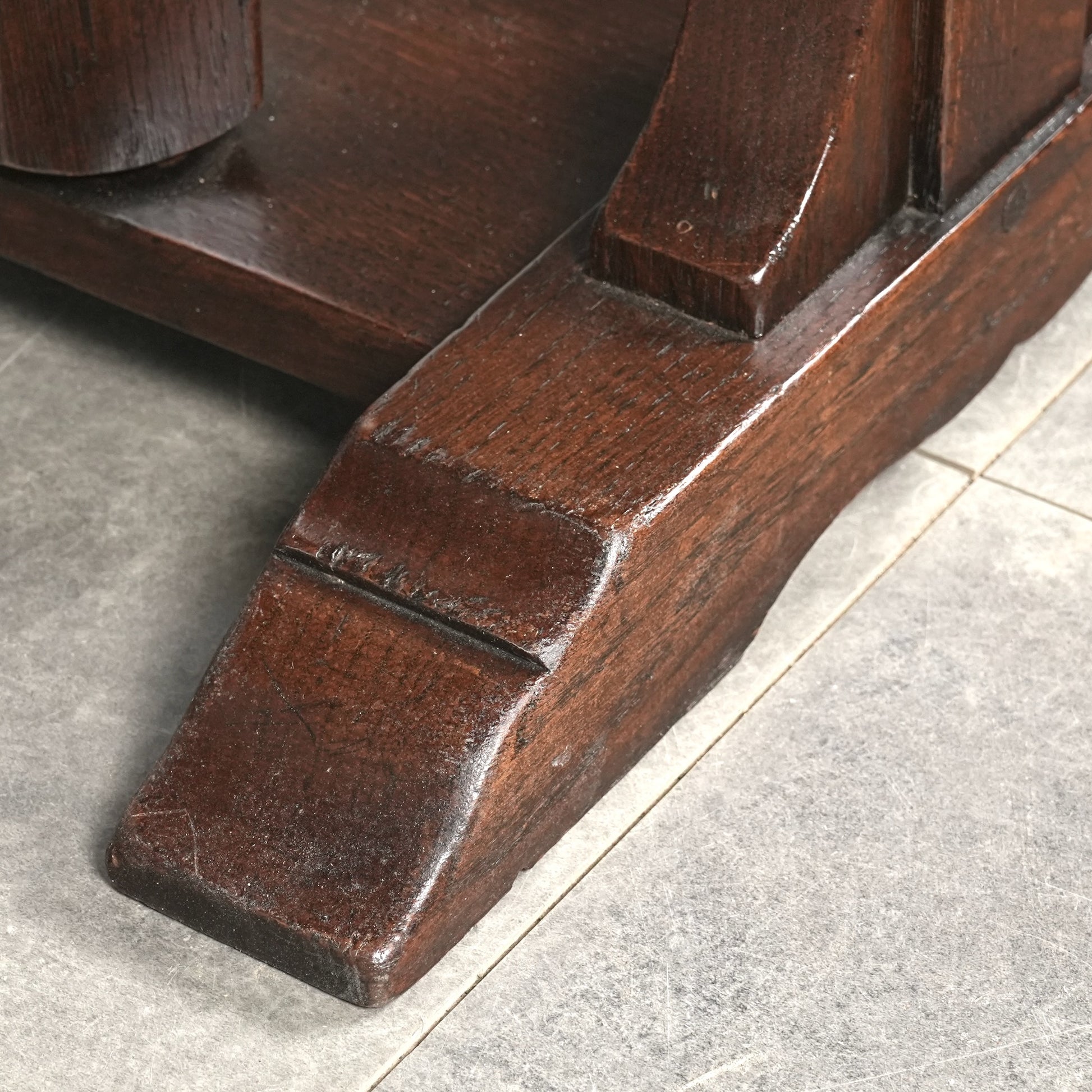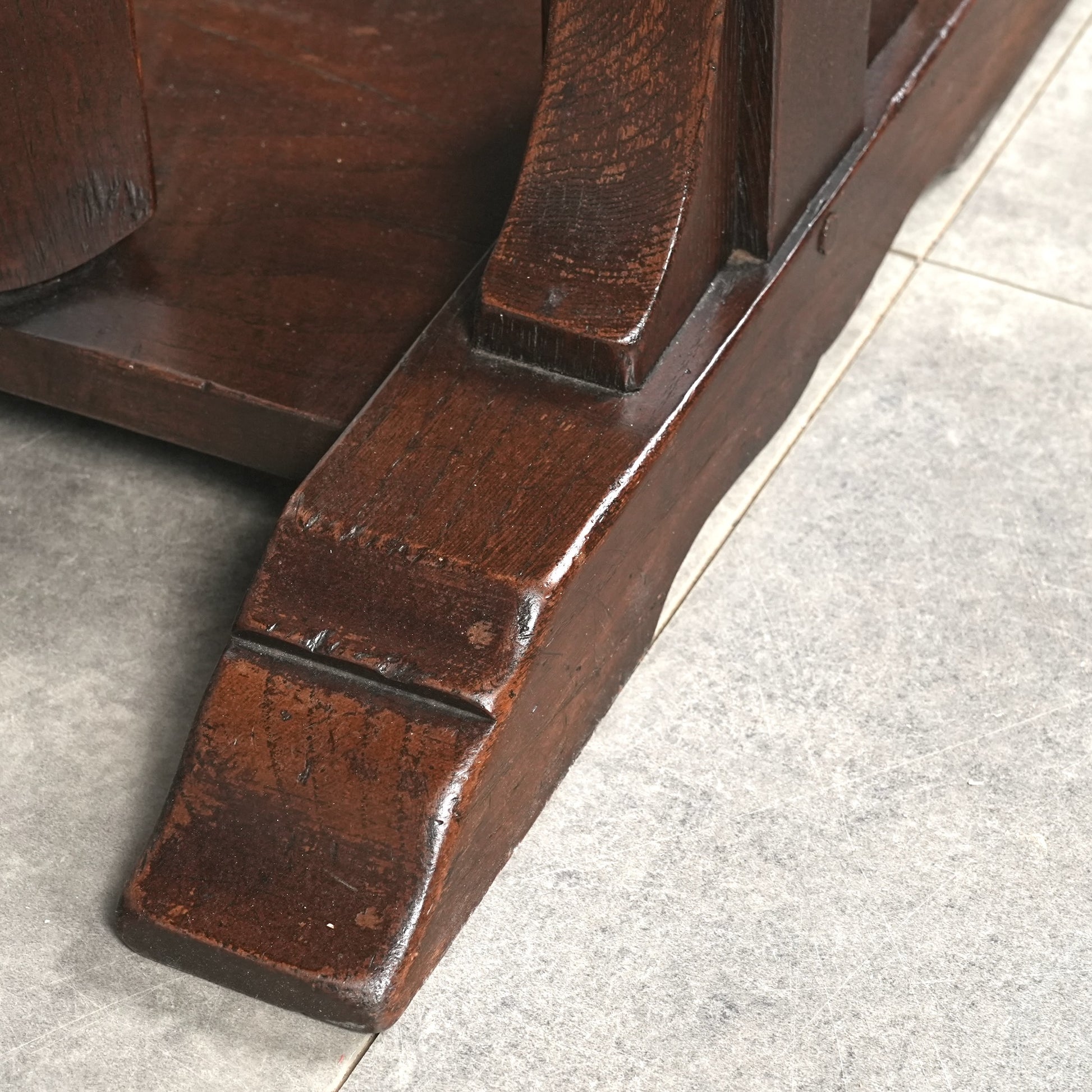 比較的シンプルなデザインではあるものの細部まで妥協なく丁寧に作り込まれた高品質なアイテムで、角のない天板の仕上げや脚部の美しい挽物細工からもその品質を感じ取って頂けるのではないでしょうか。