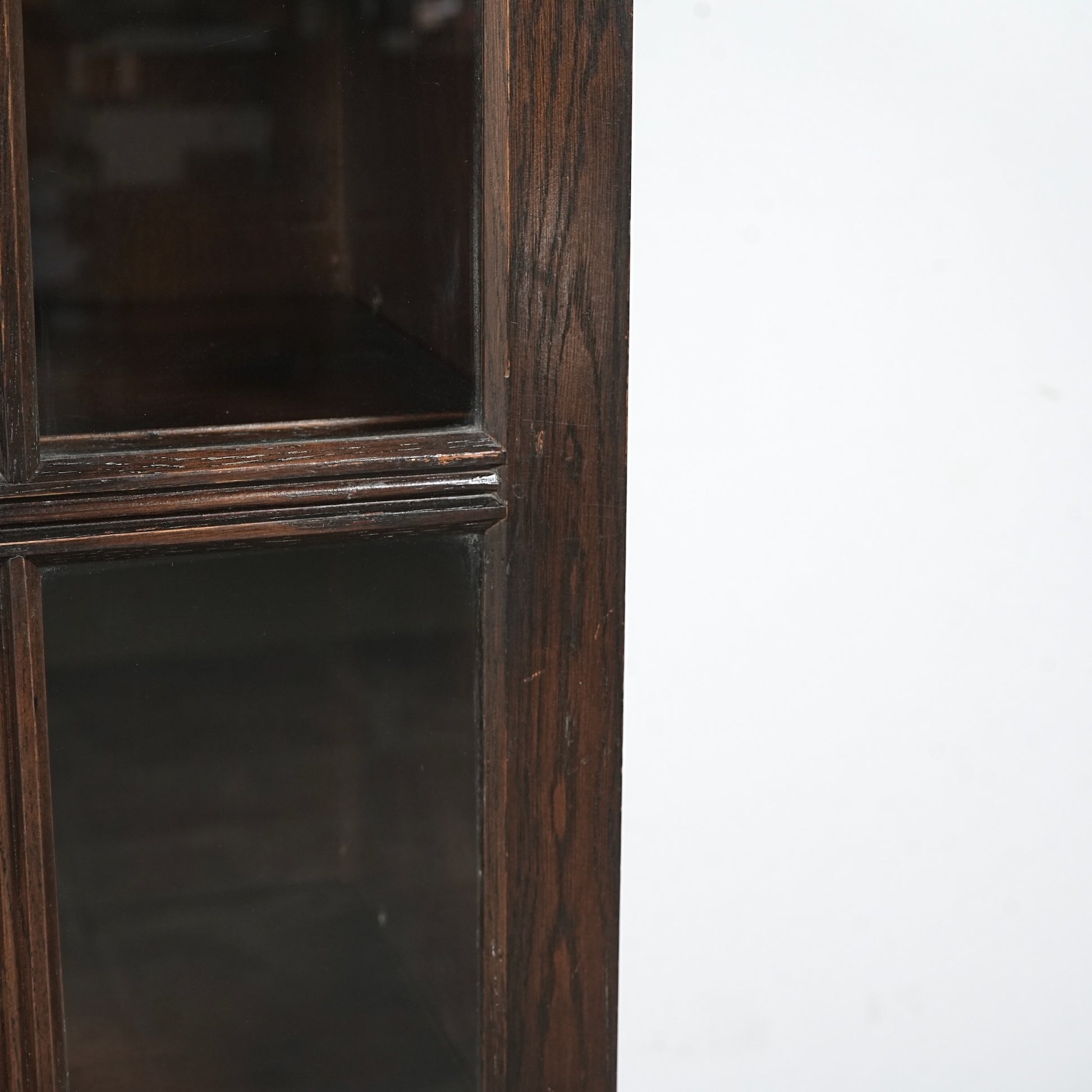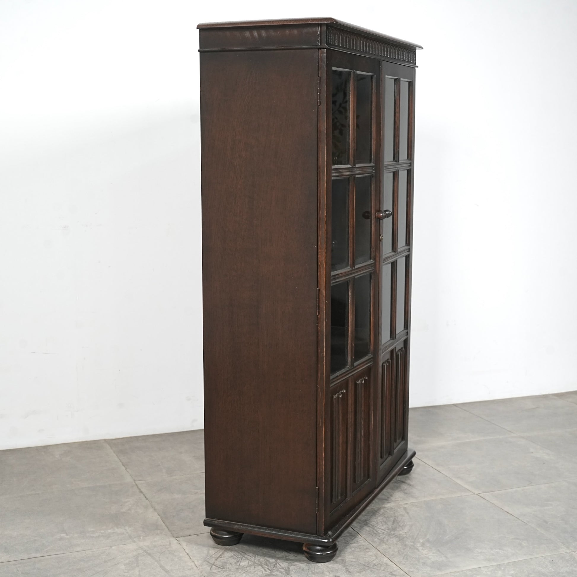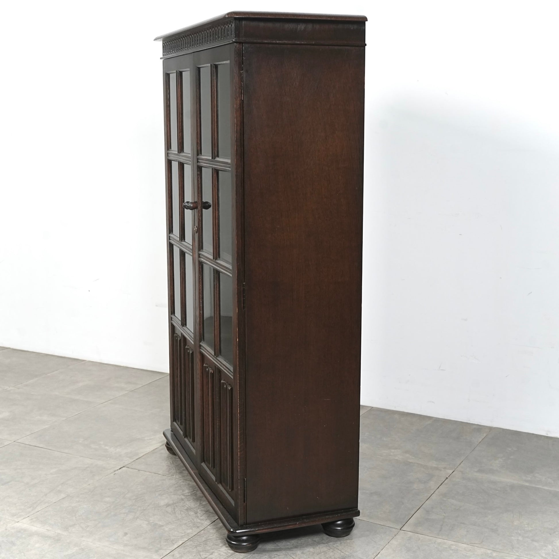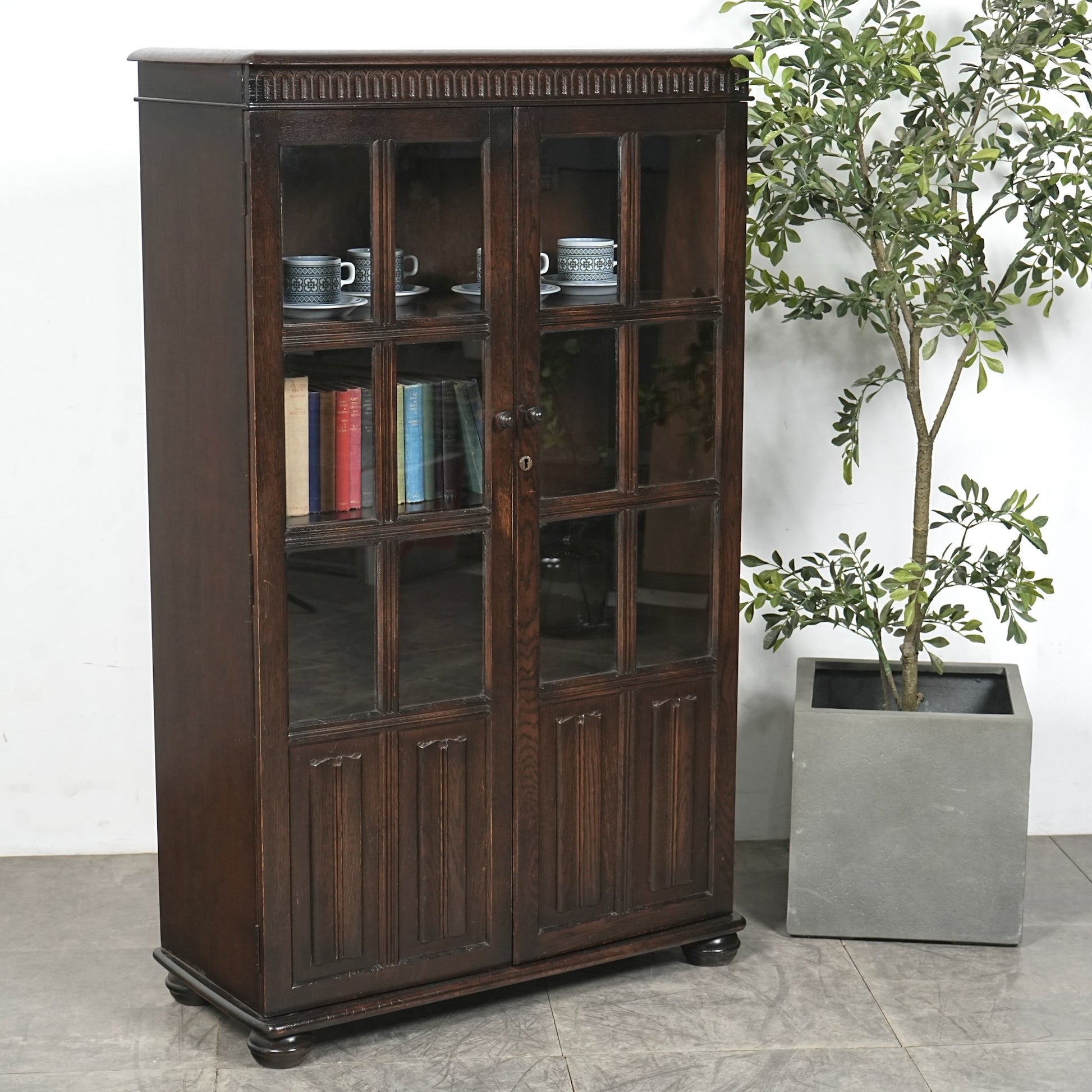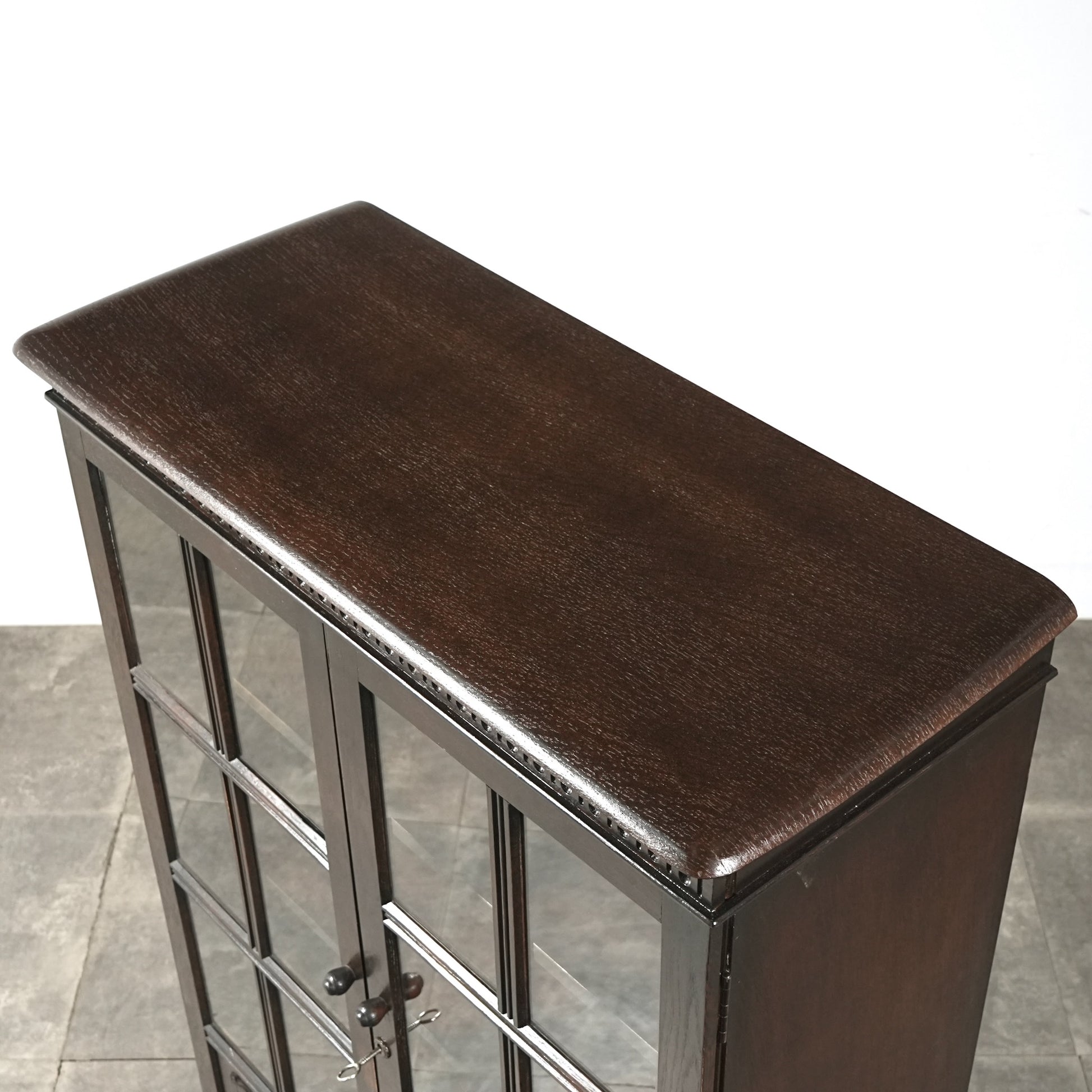 英国の伝統的な様式で仕上げられたヴィンテージ ガラスキャビネット。