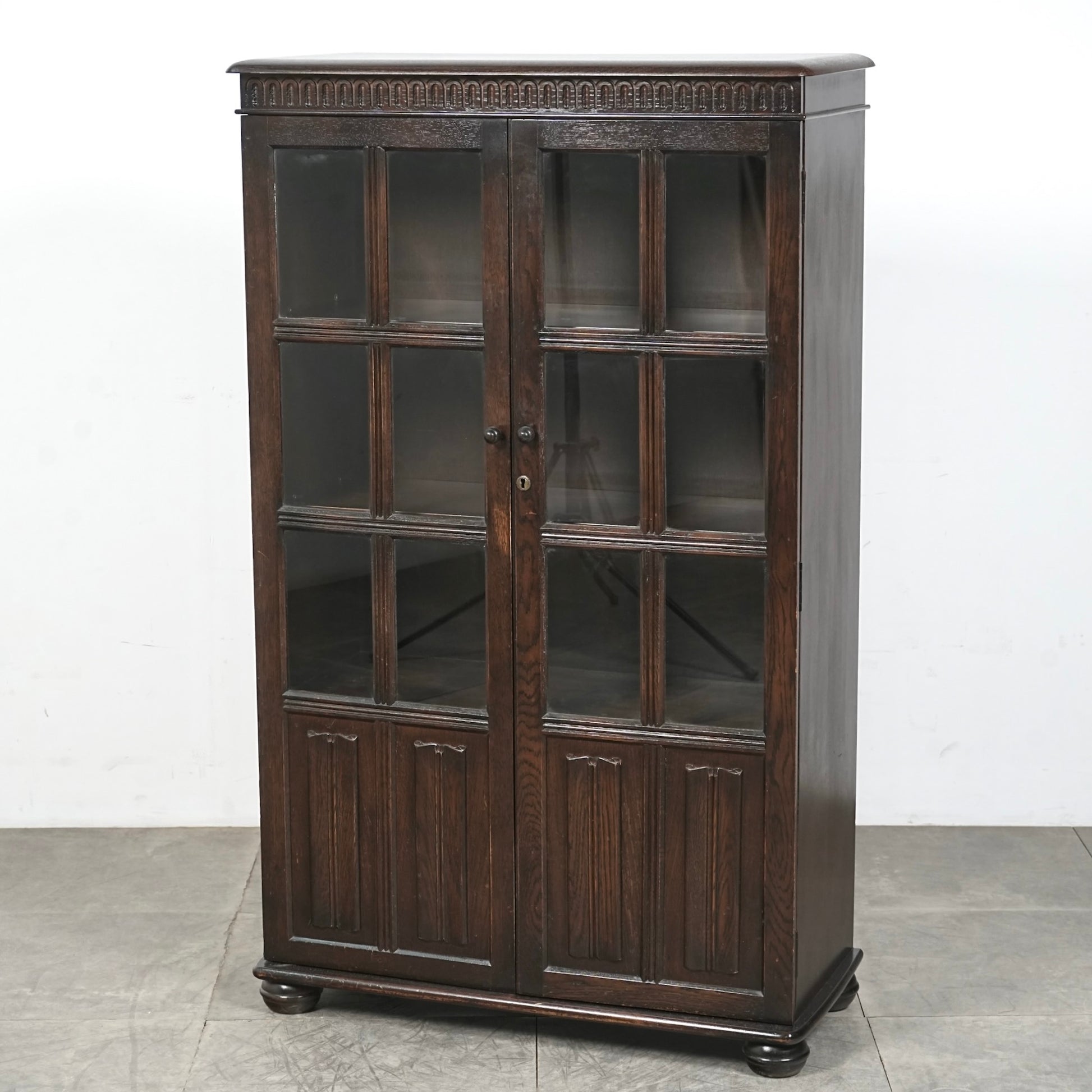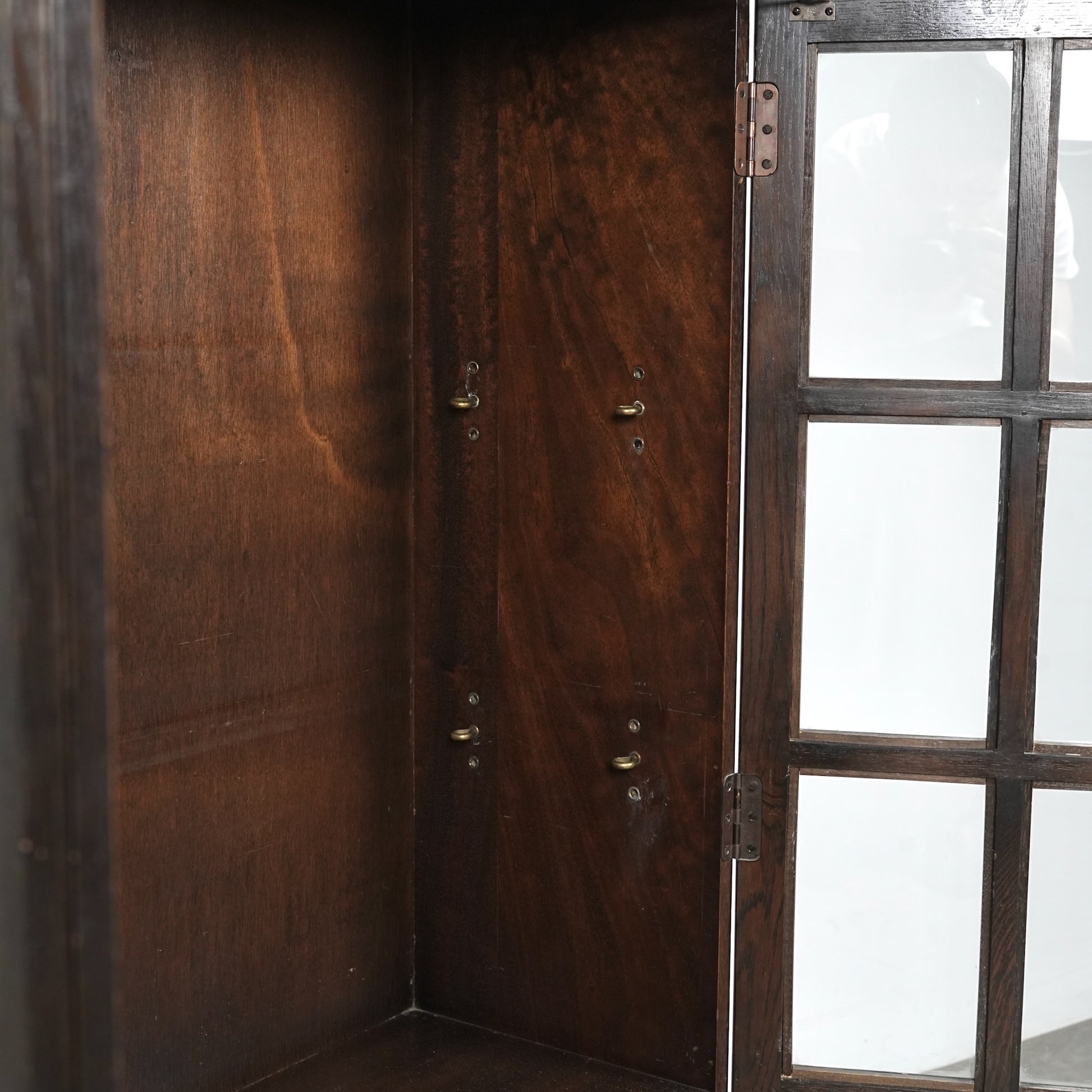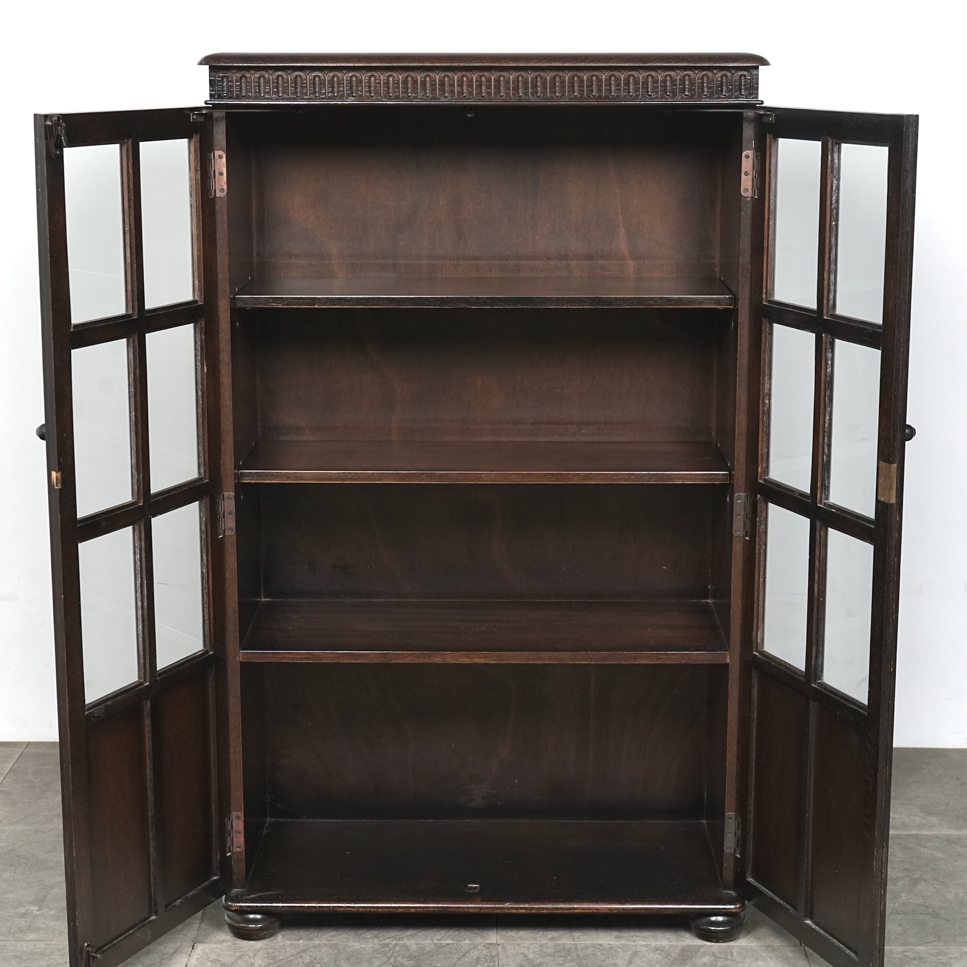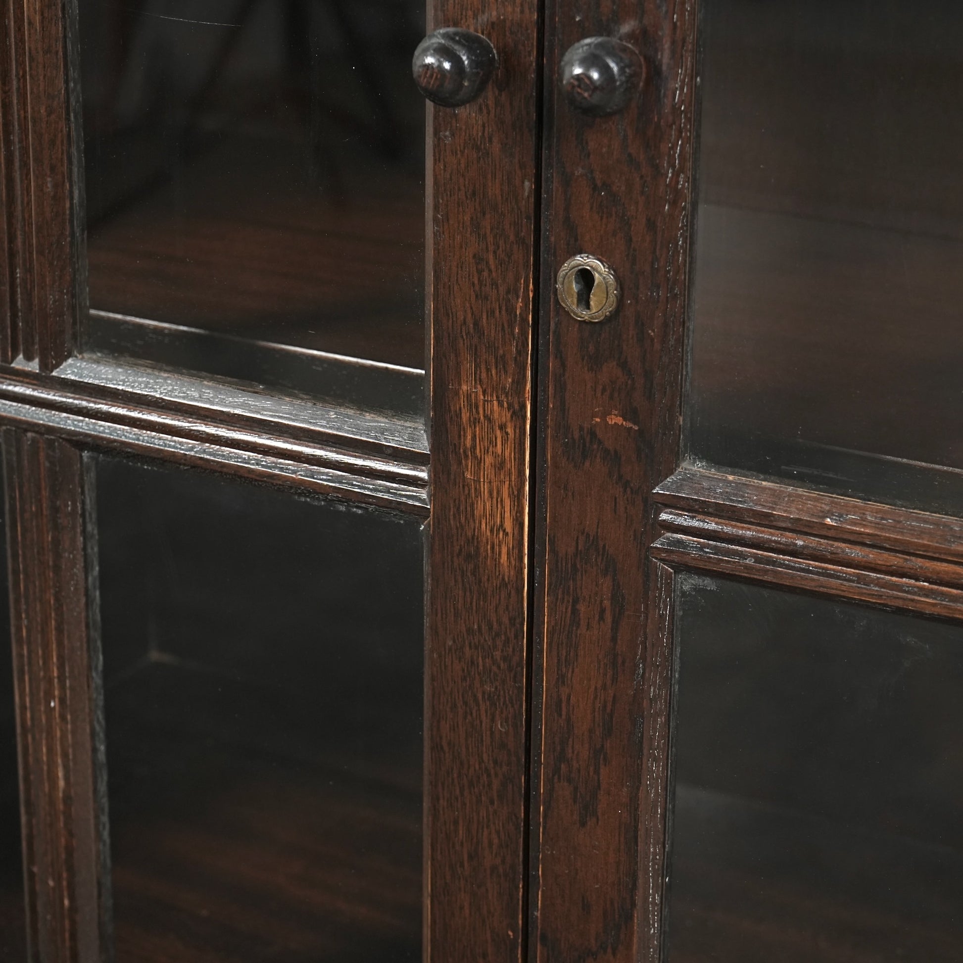 英国の伝統的な様式で仕上げられたヴィンテージ ガラスキャビネット。