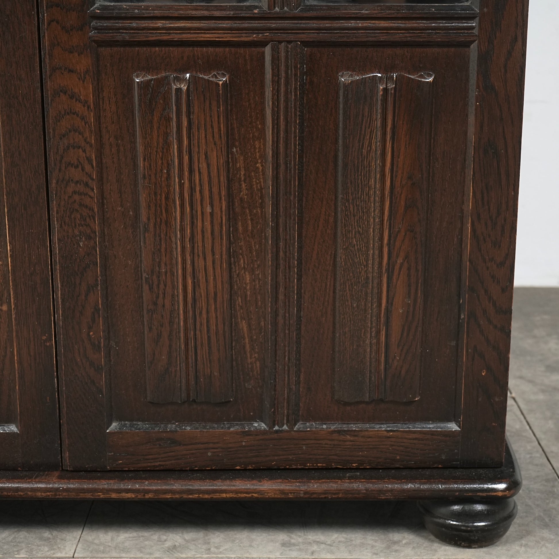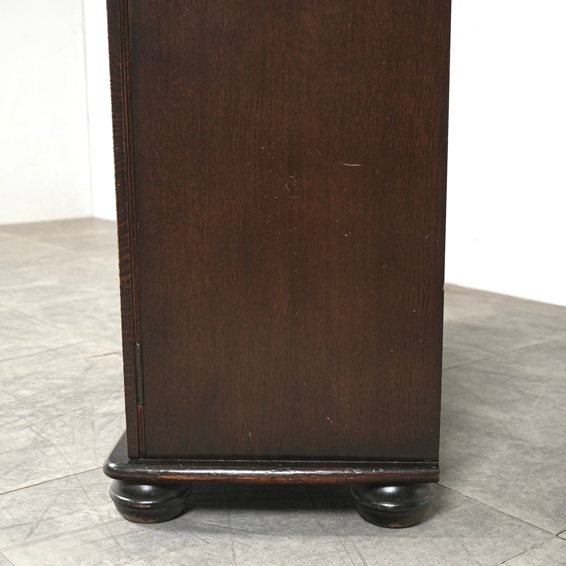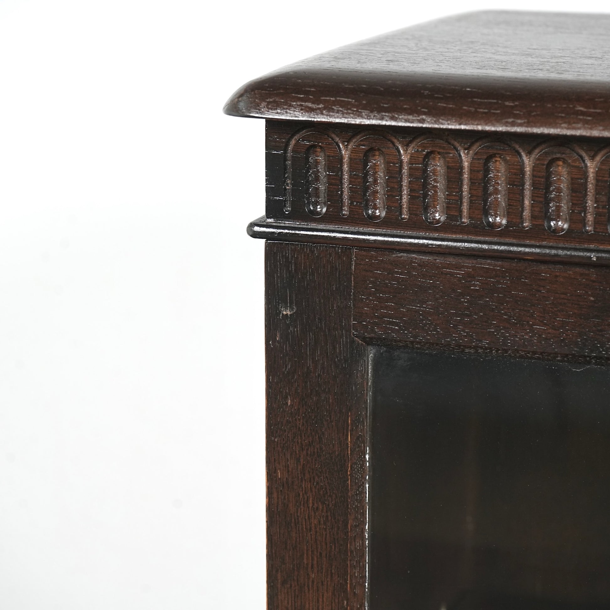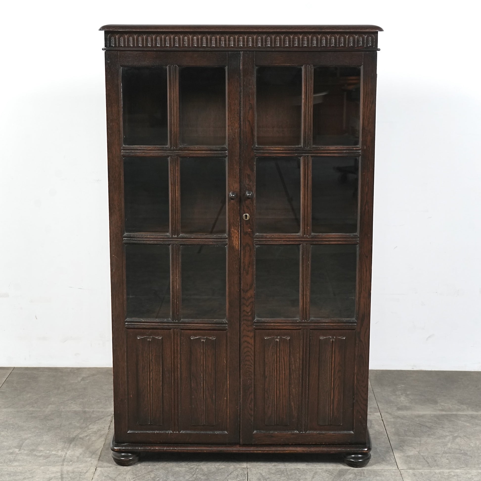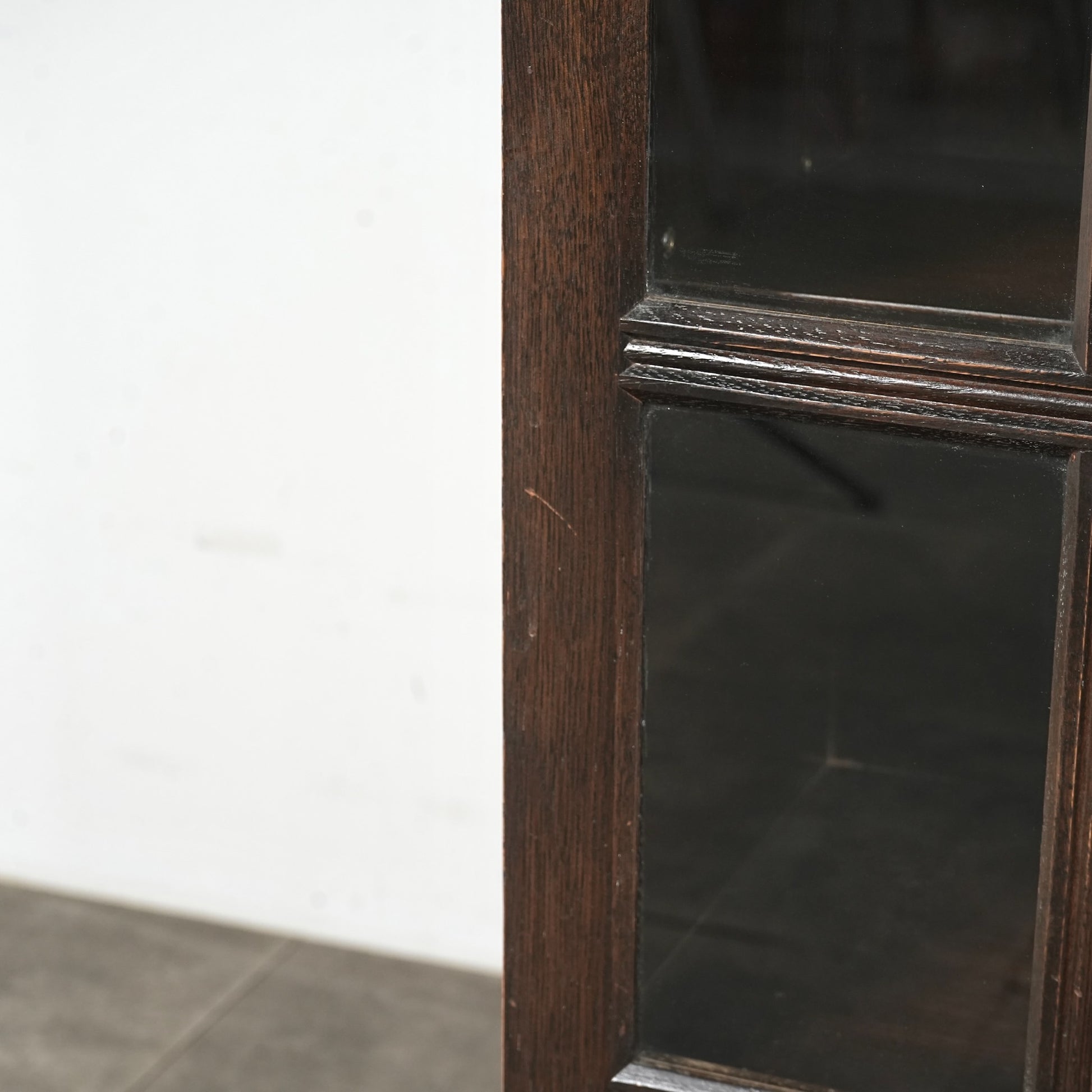 英国の伝統的な様式で仕上げられたヴィンテージ ガラスキャビネット。