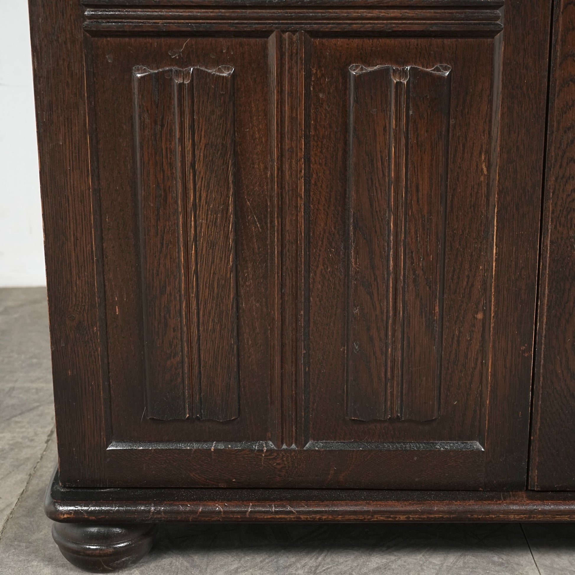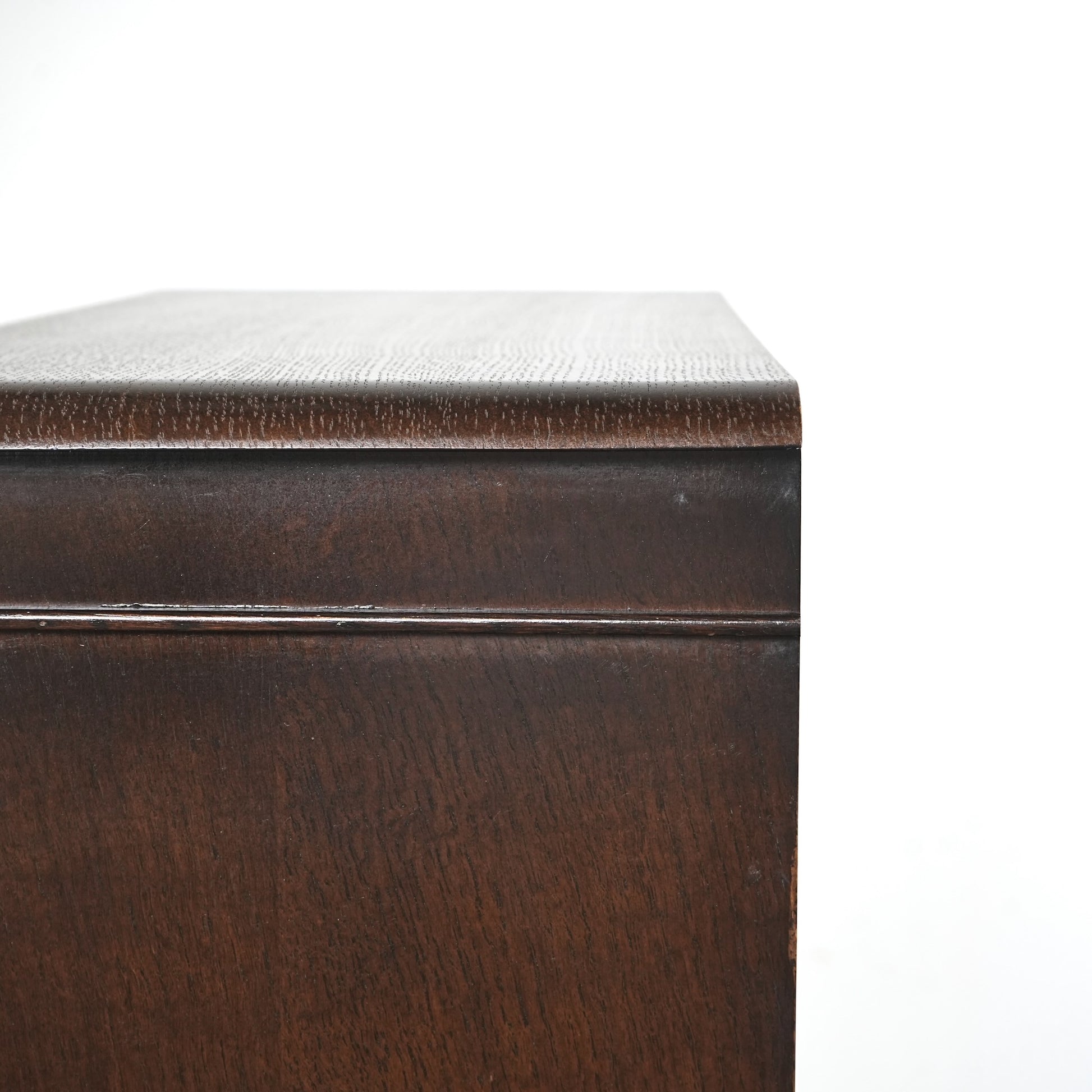 高品質なオーク材の見事な質感や落ち着いたトーンに加えて、フロントに施された美しい意匠も見事なバランス。