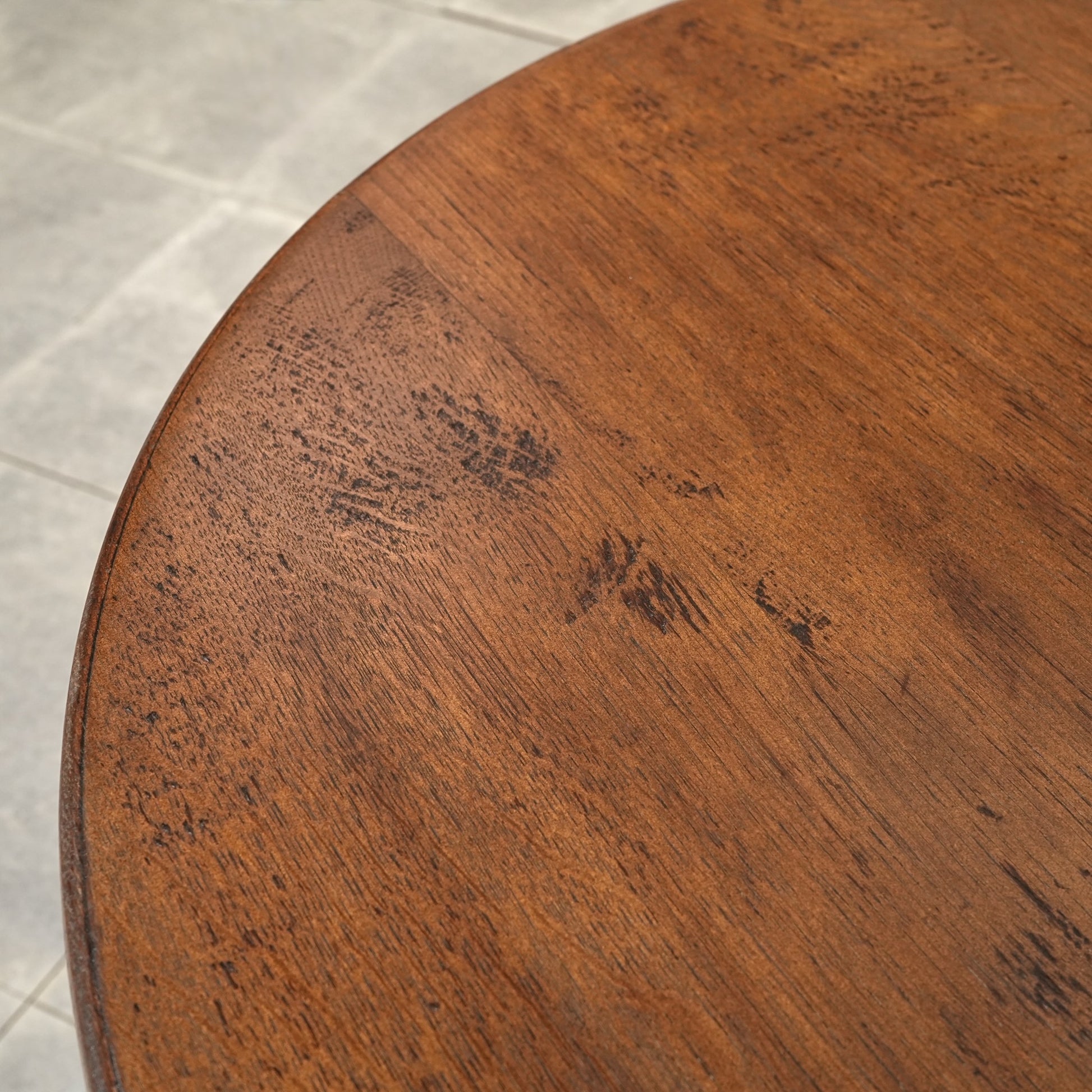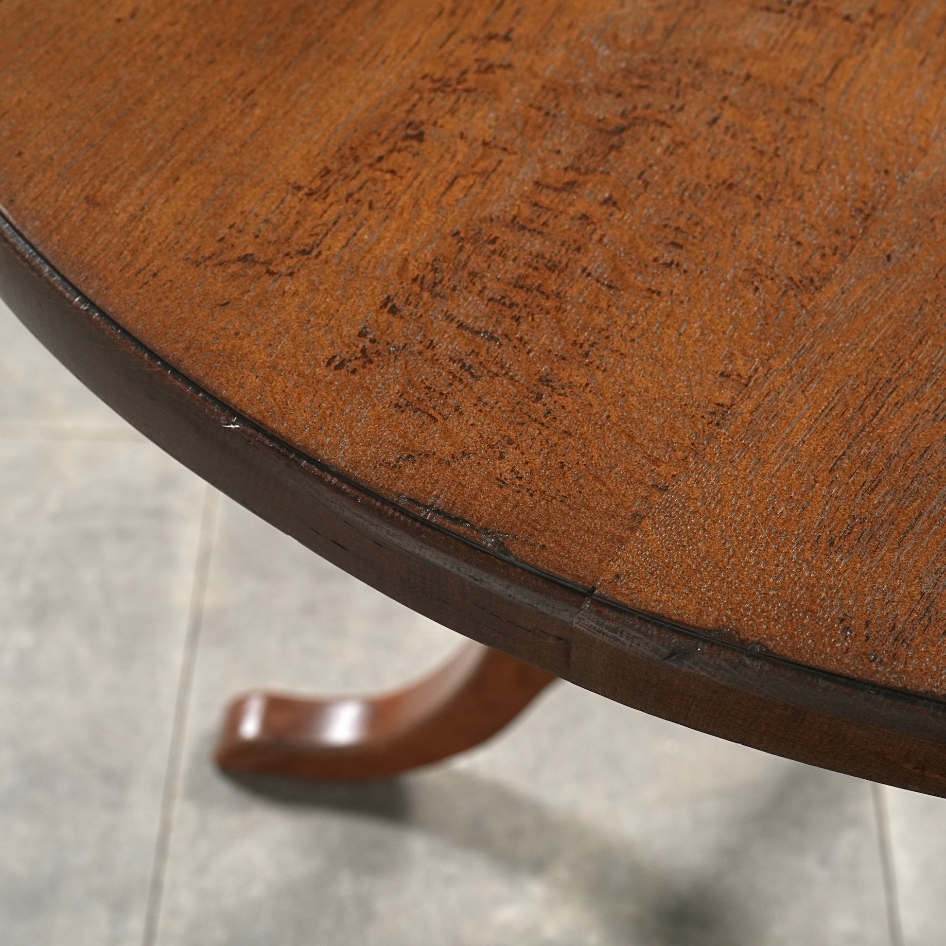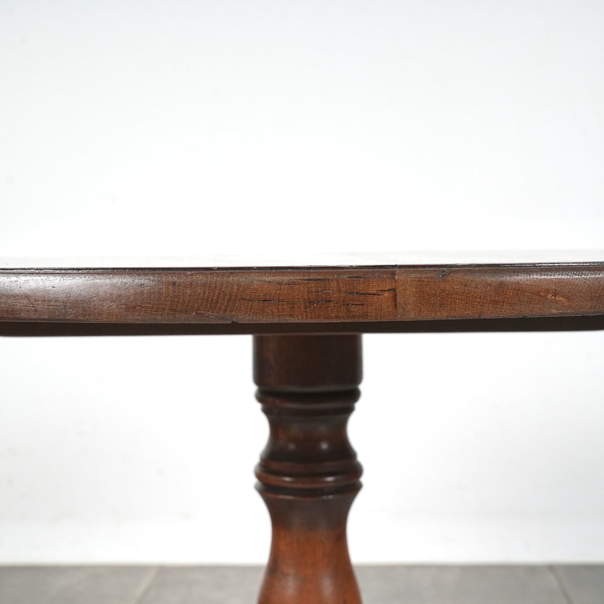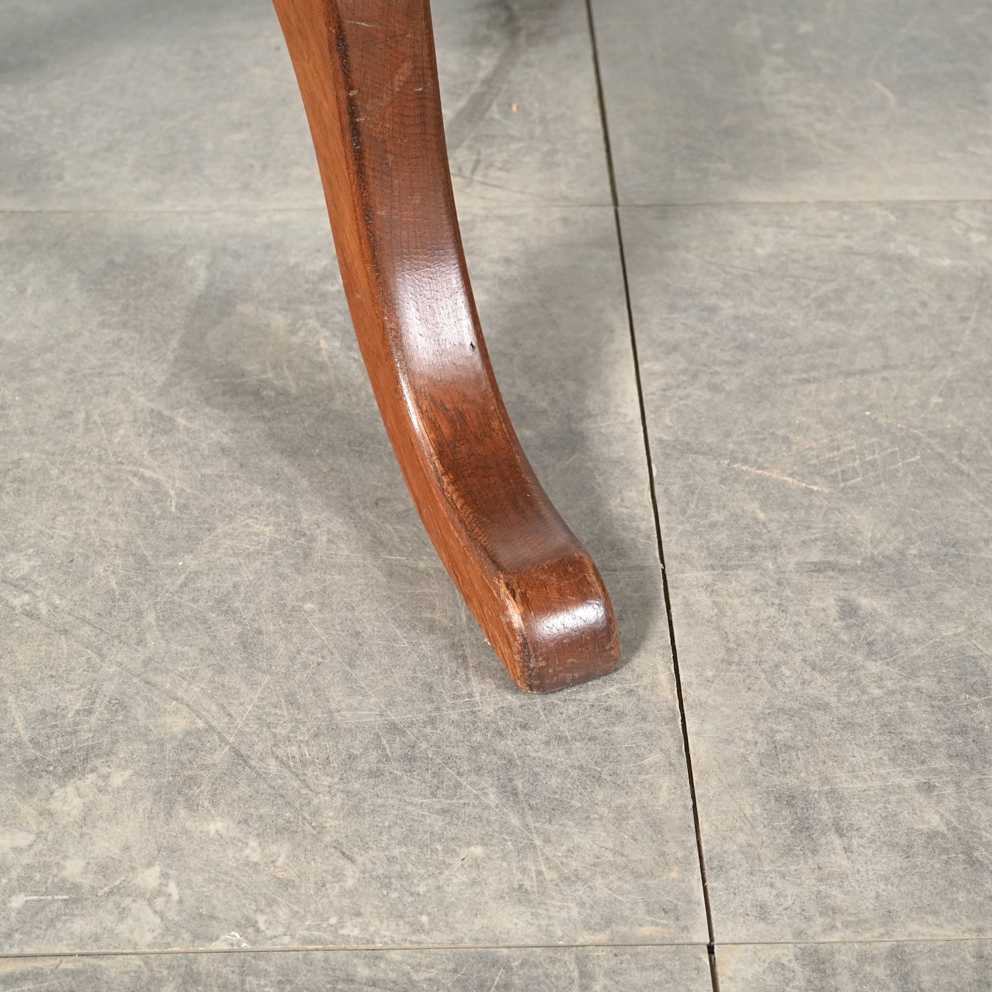 中央から伸びる挽物加工の脚部と、曲線を描く脚先がクラシカルな表情を生み、英国家具らしい品の良さを感じさせます。