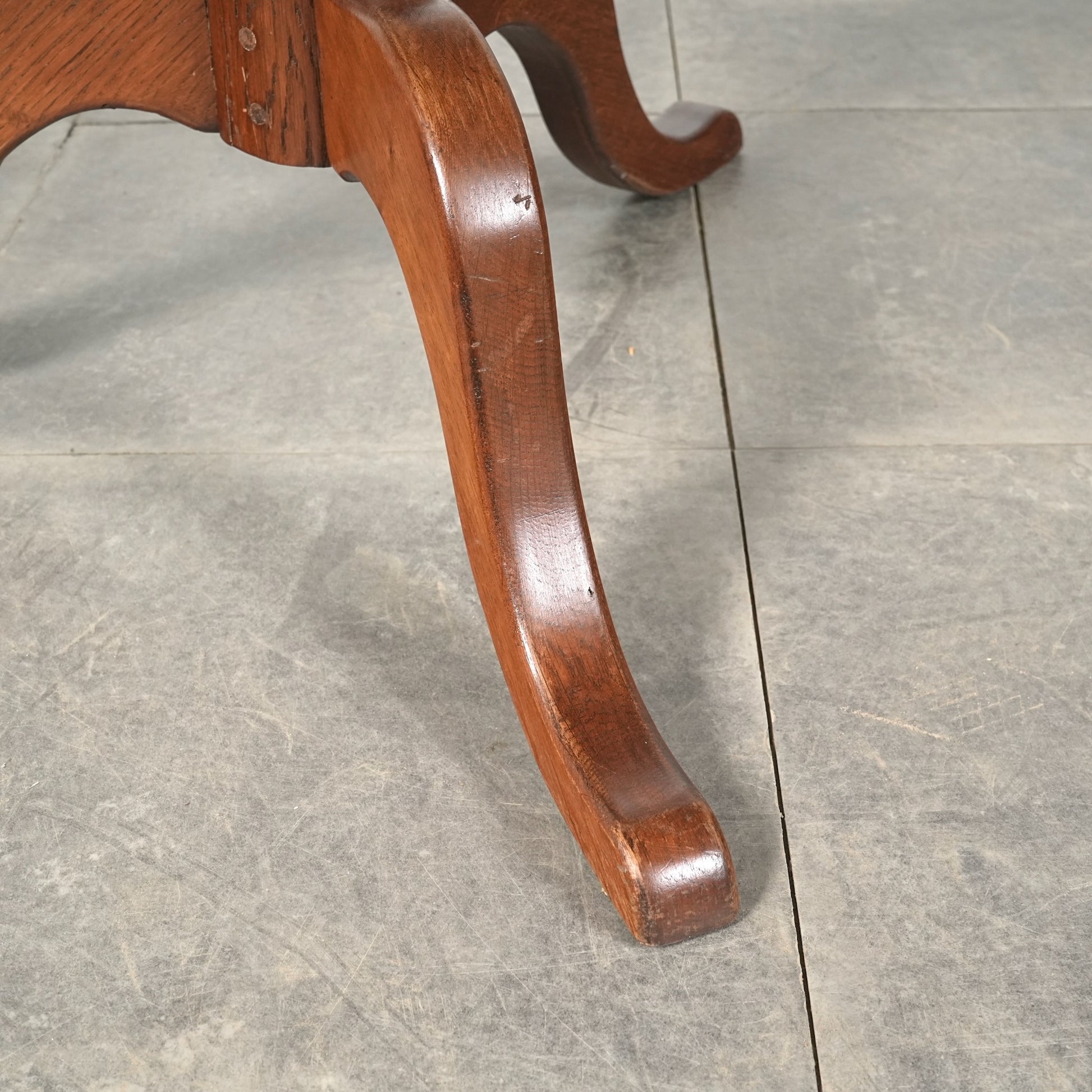 構造面のレストアに加えて、天板は素材の魅力を引き出すよう丁寧に再塗装済みで、脚部はヴィンテージの風合いを活かしながら軽く磨いて仕上げています。