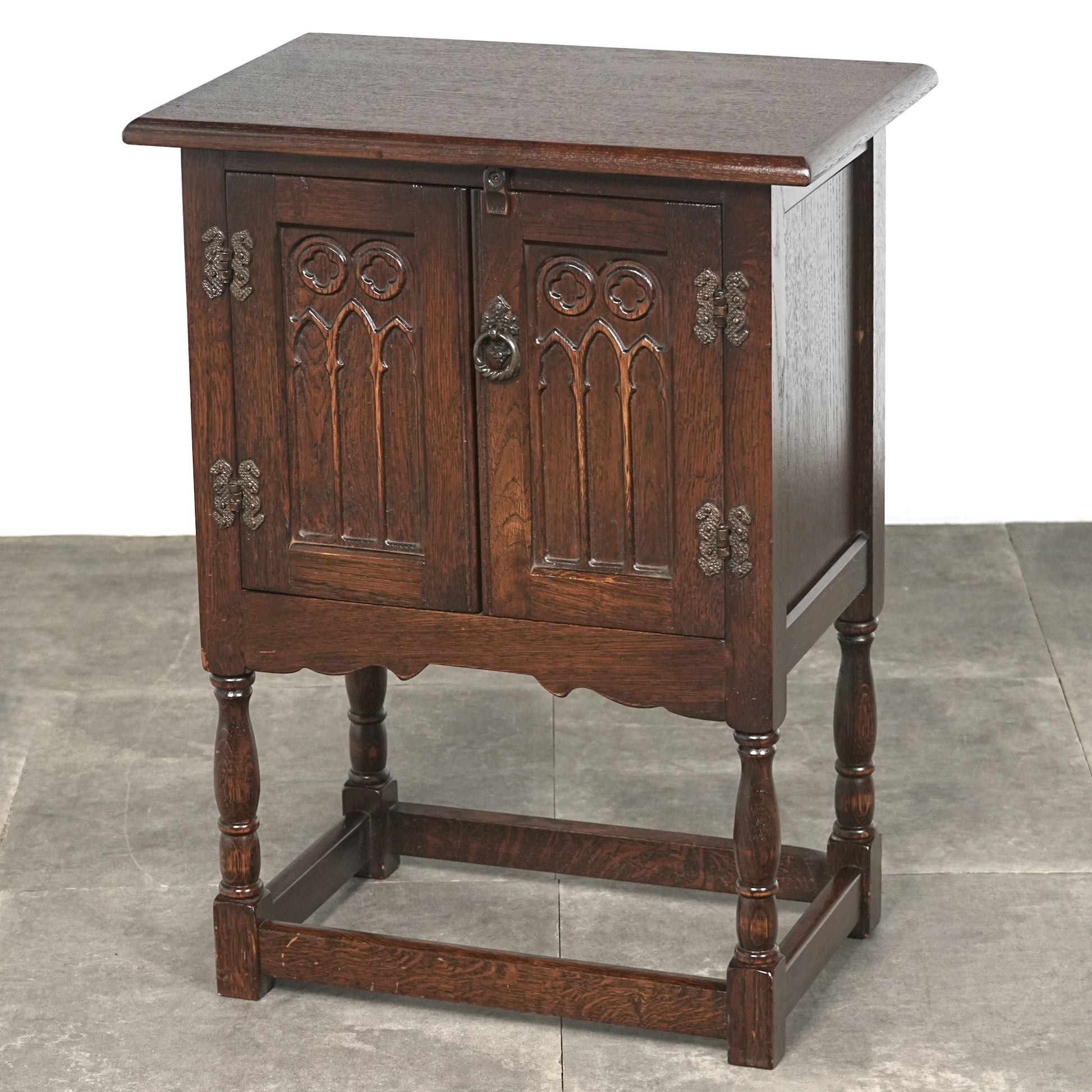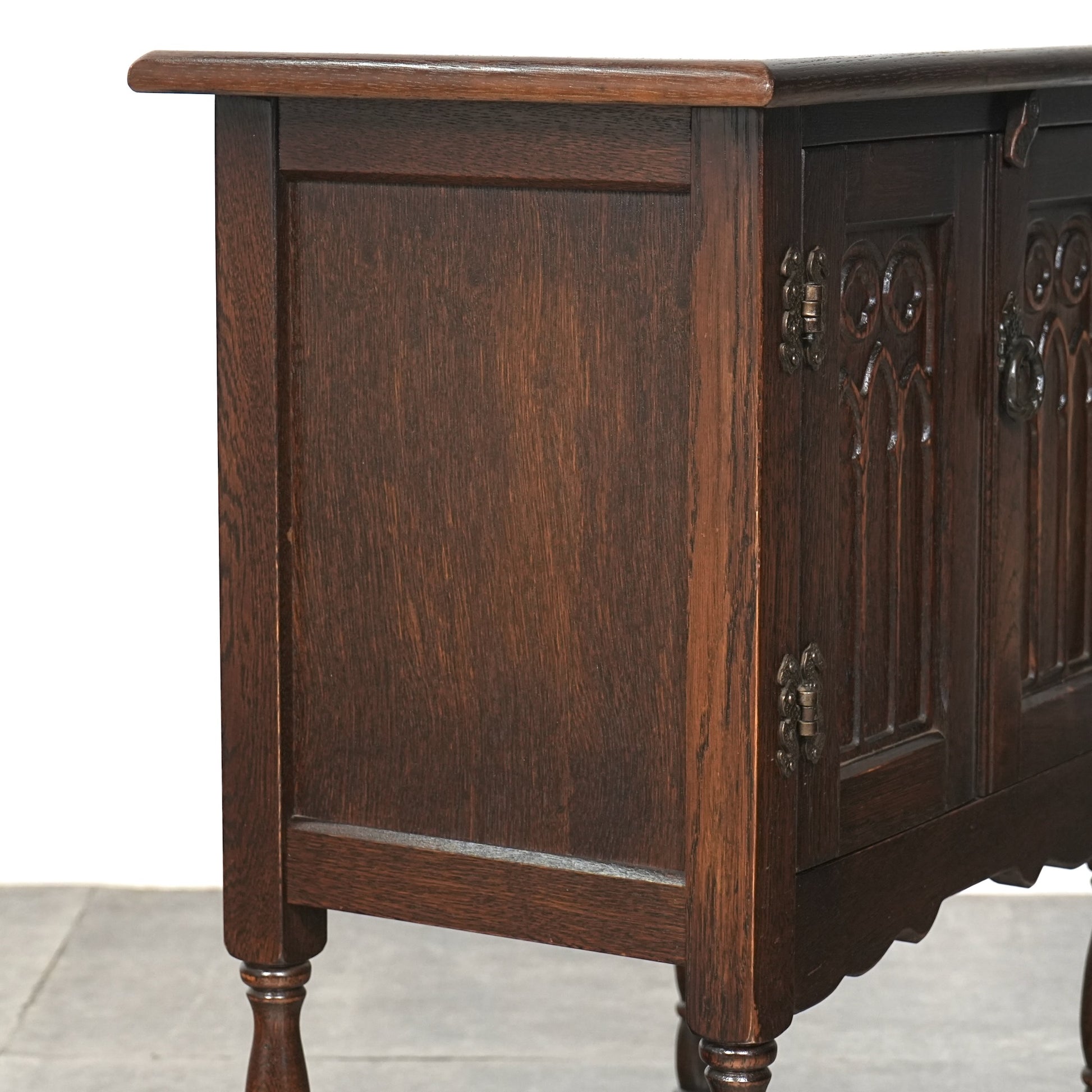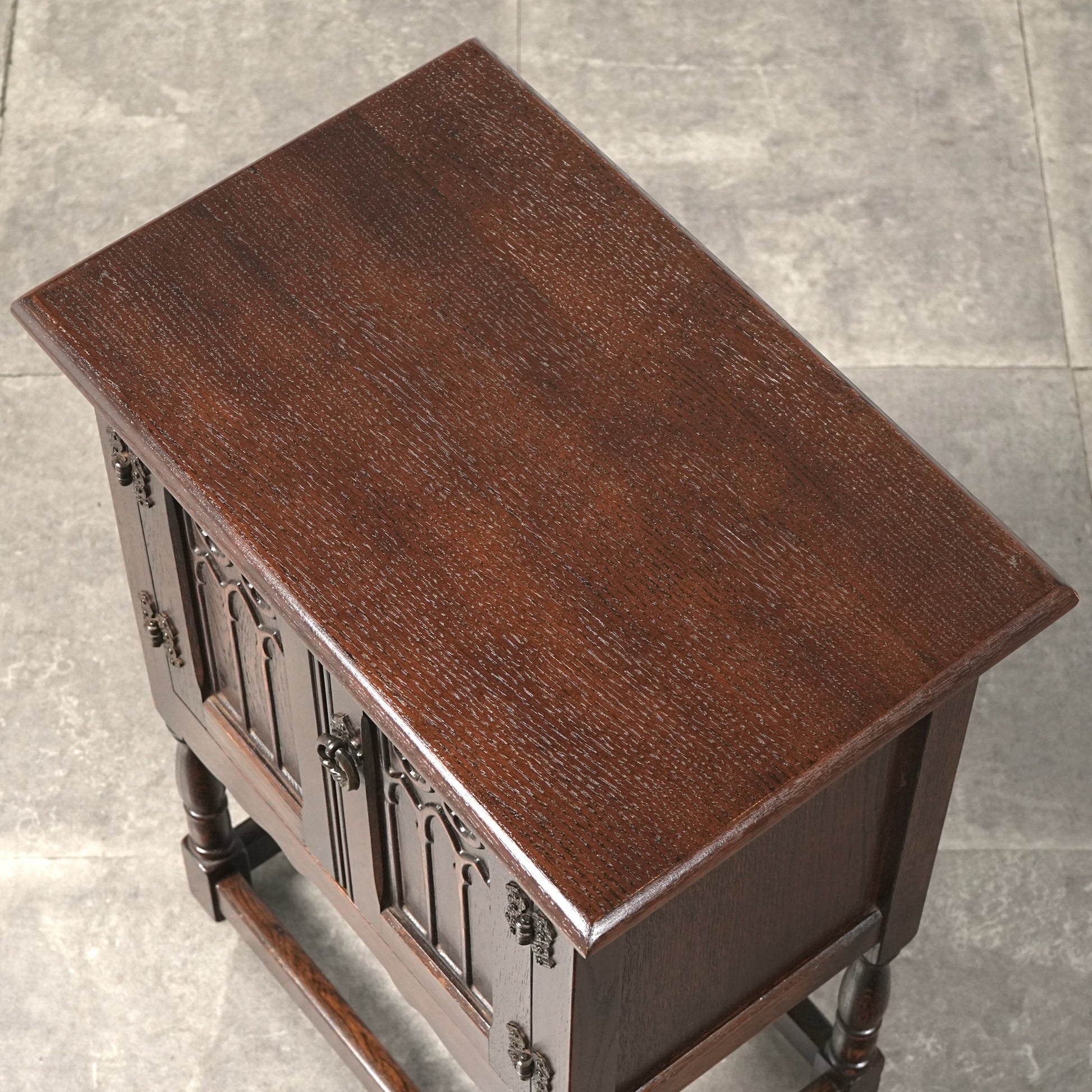 良質なオーク材の深みある木肌とクラシカルな扉の意匠が相まって、英国家具らしい品格を漂わせています。