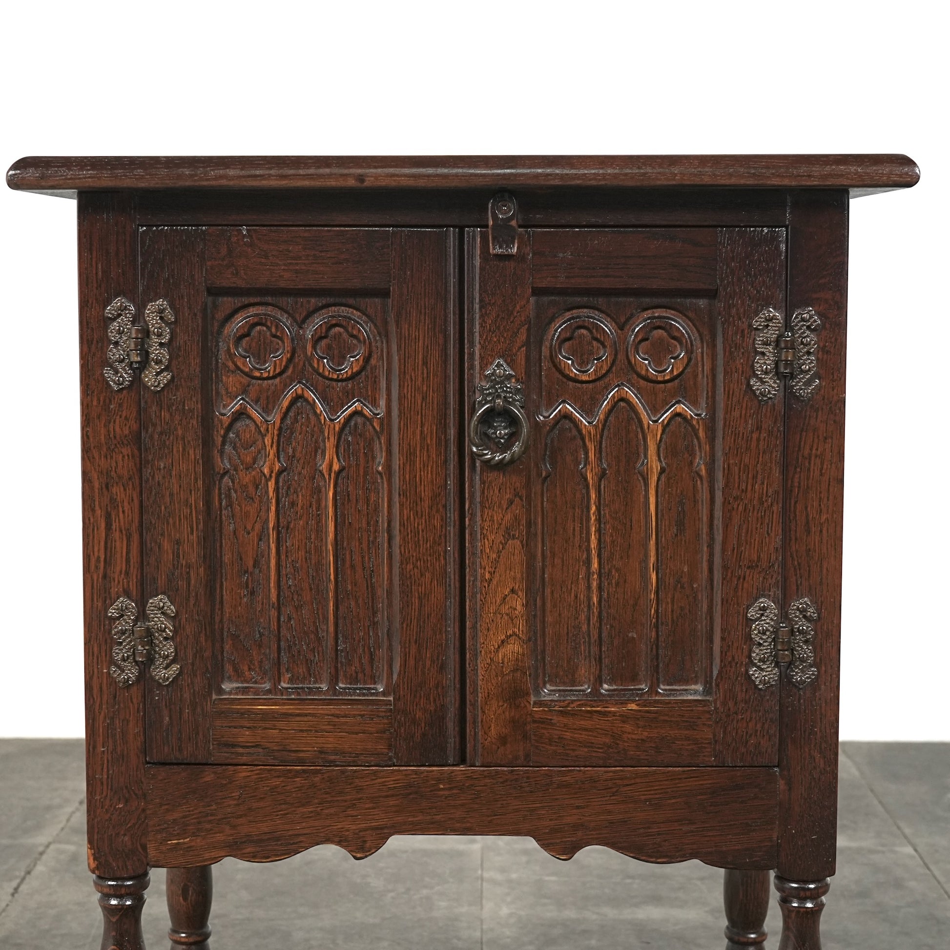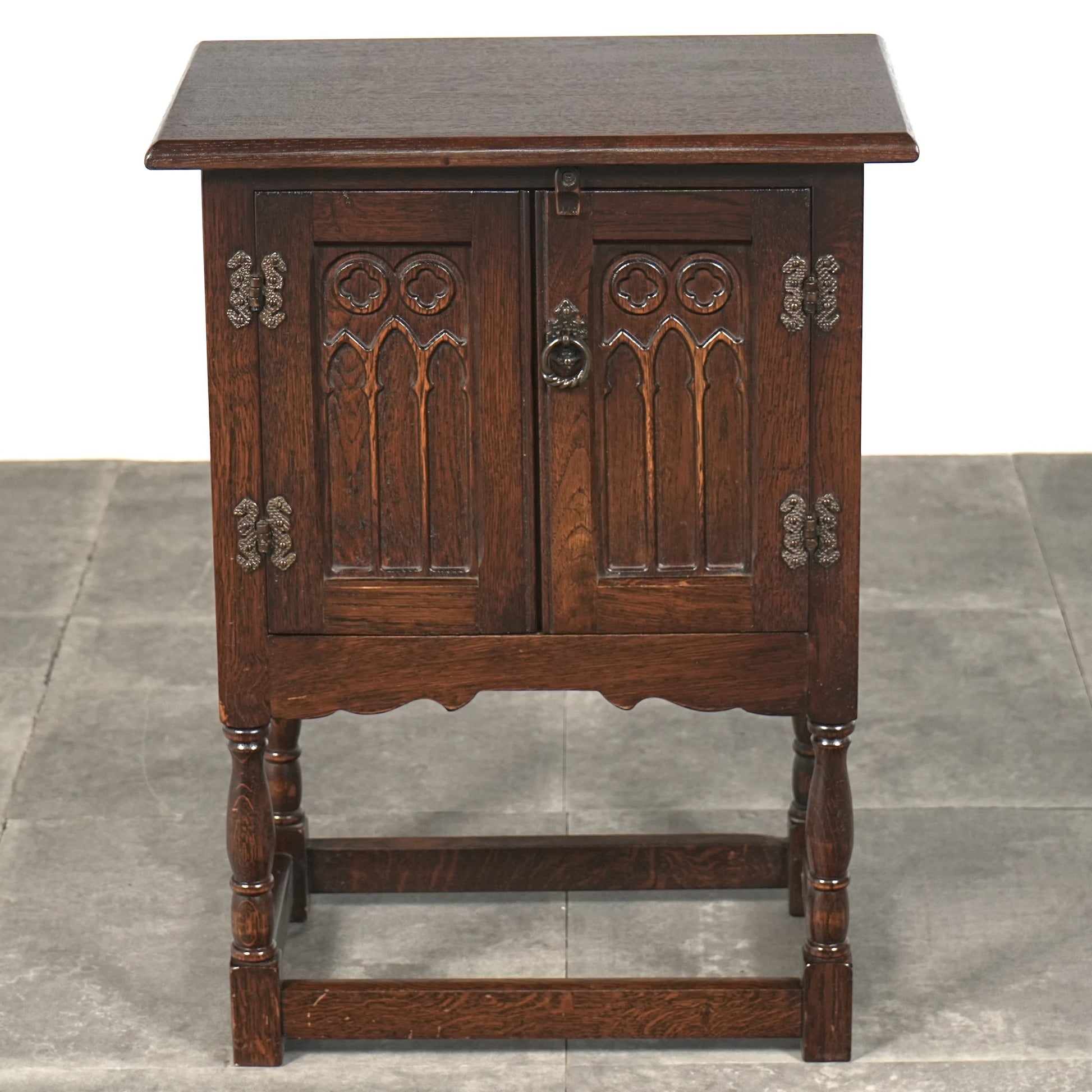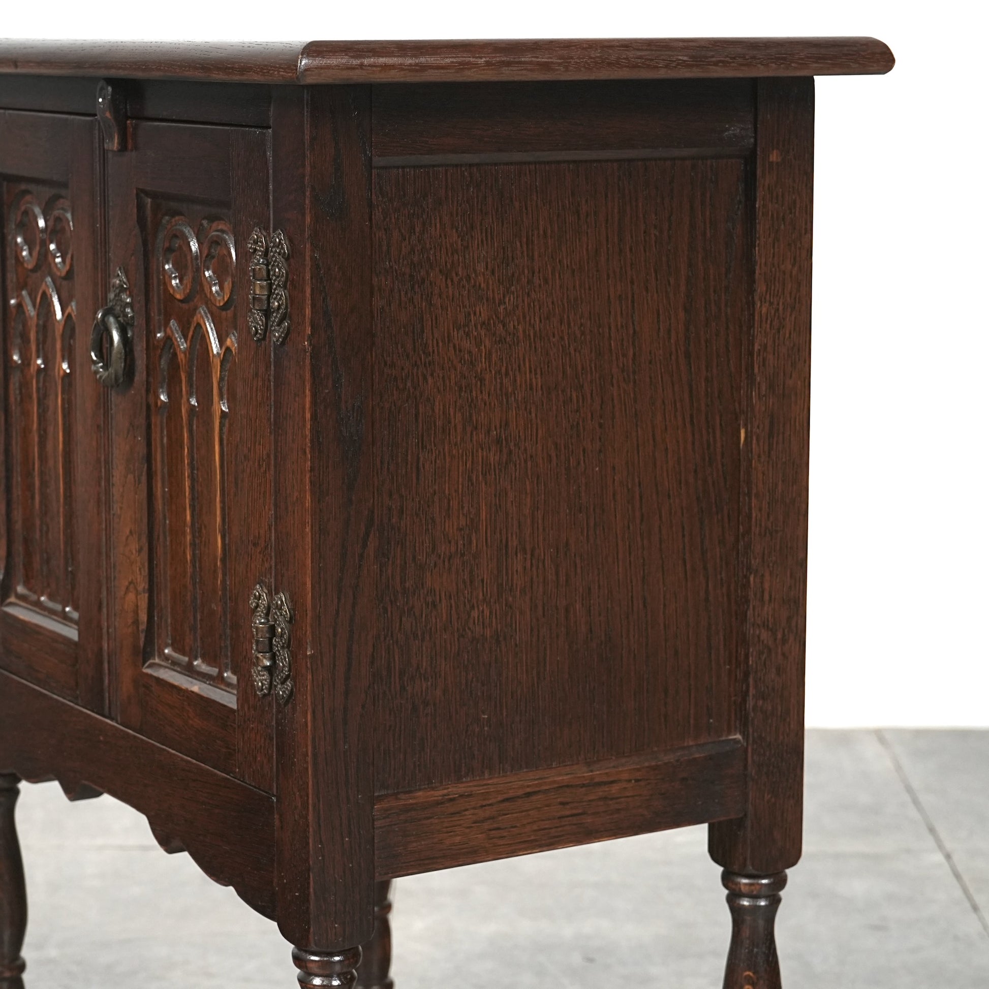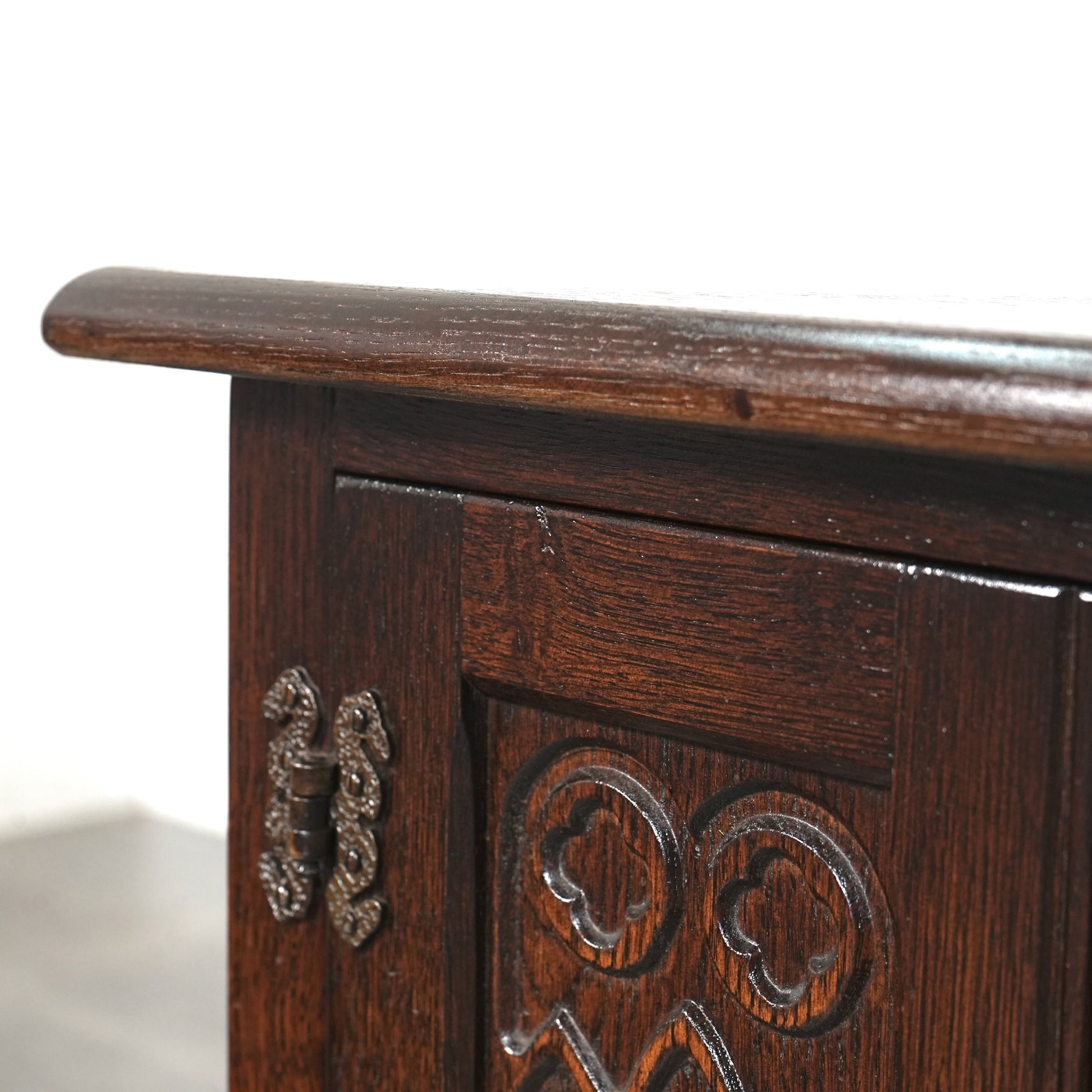 良質なオーク材の深みある木肌とクラシカルな扉の意匠が相まって、英国家具らしい品格を漂わせています。