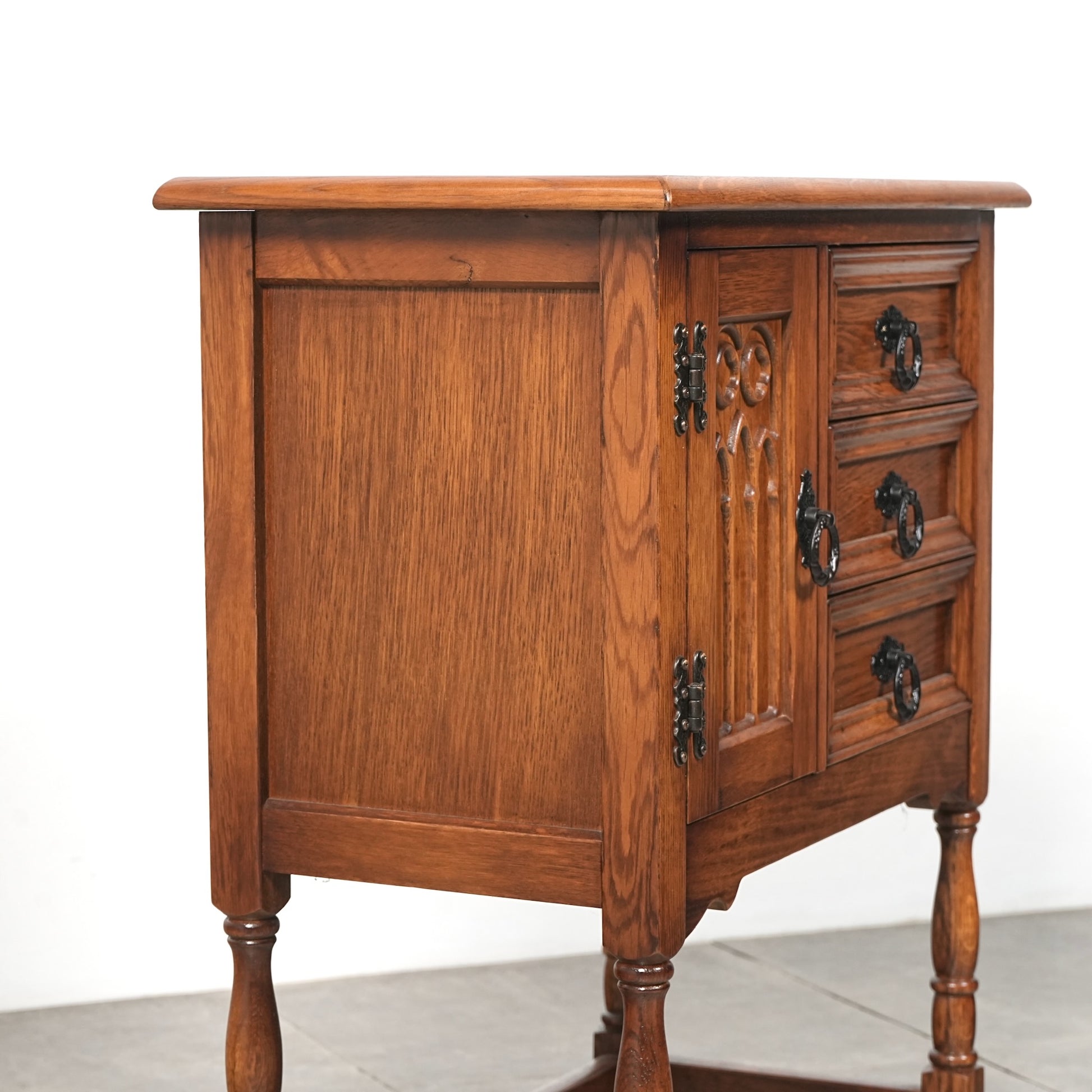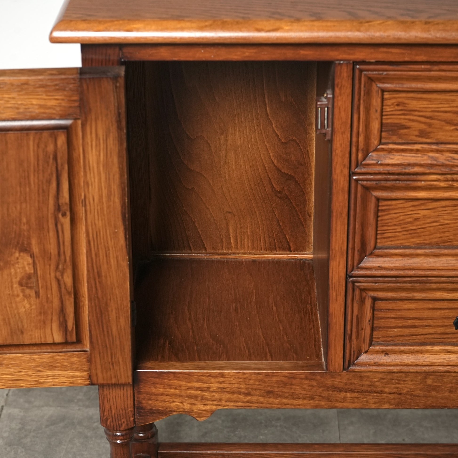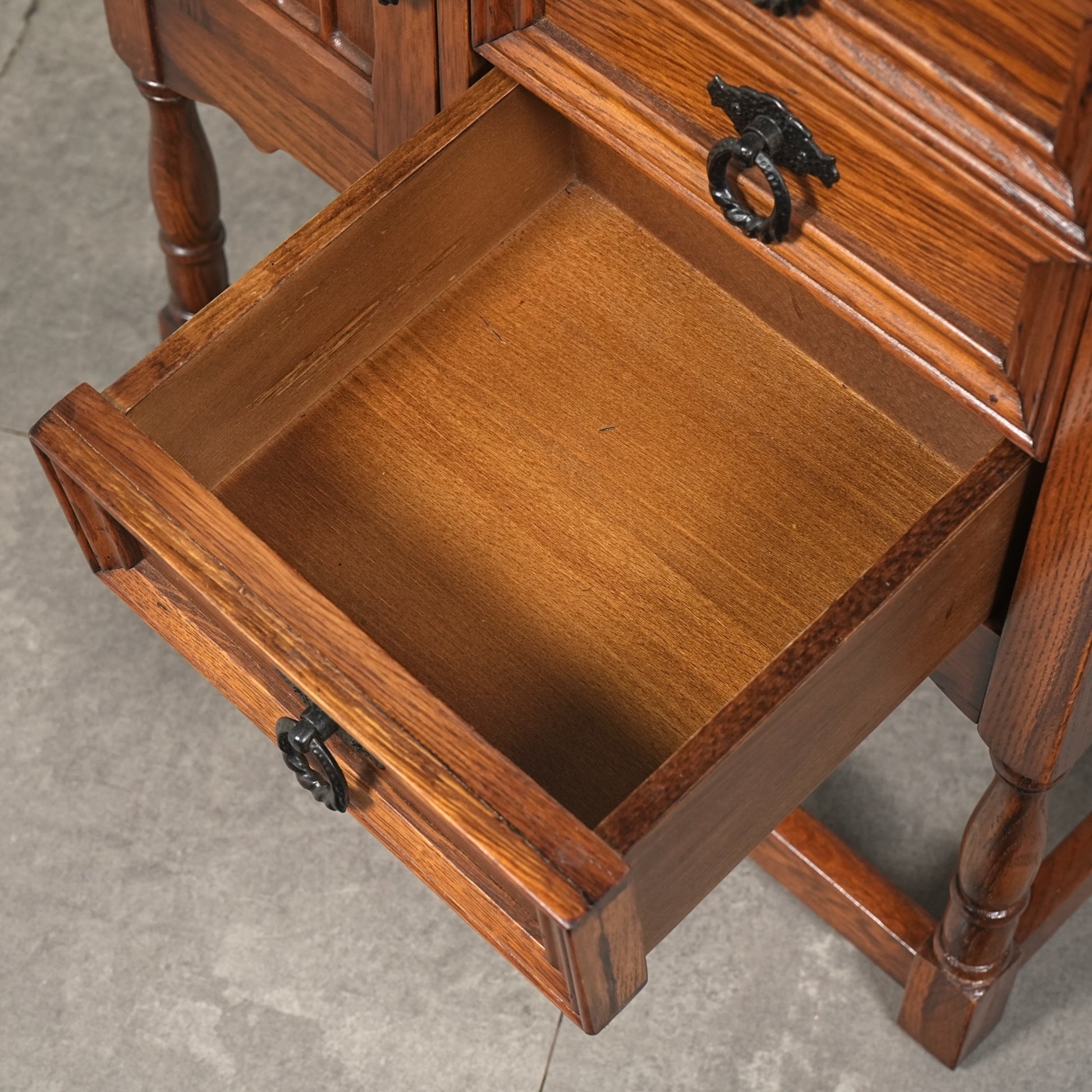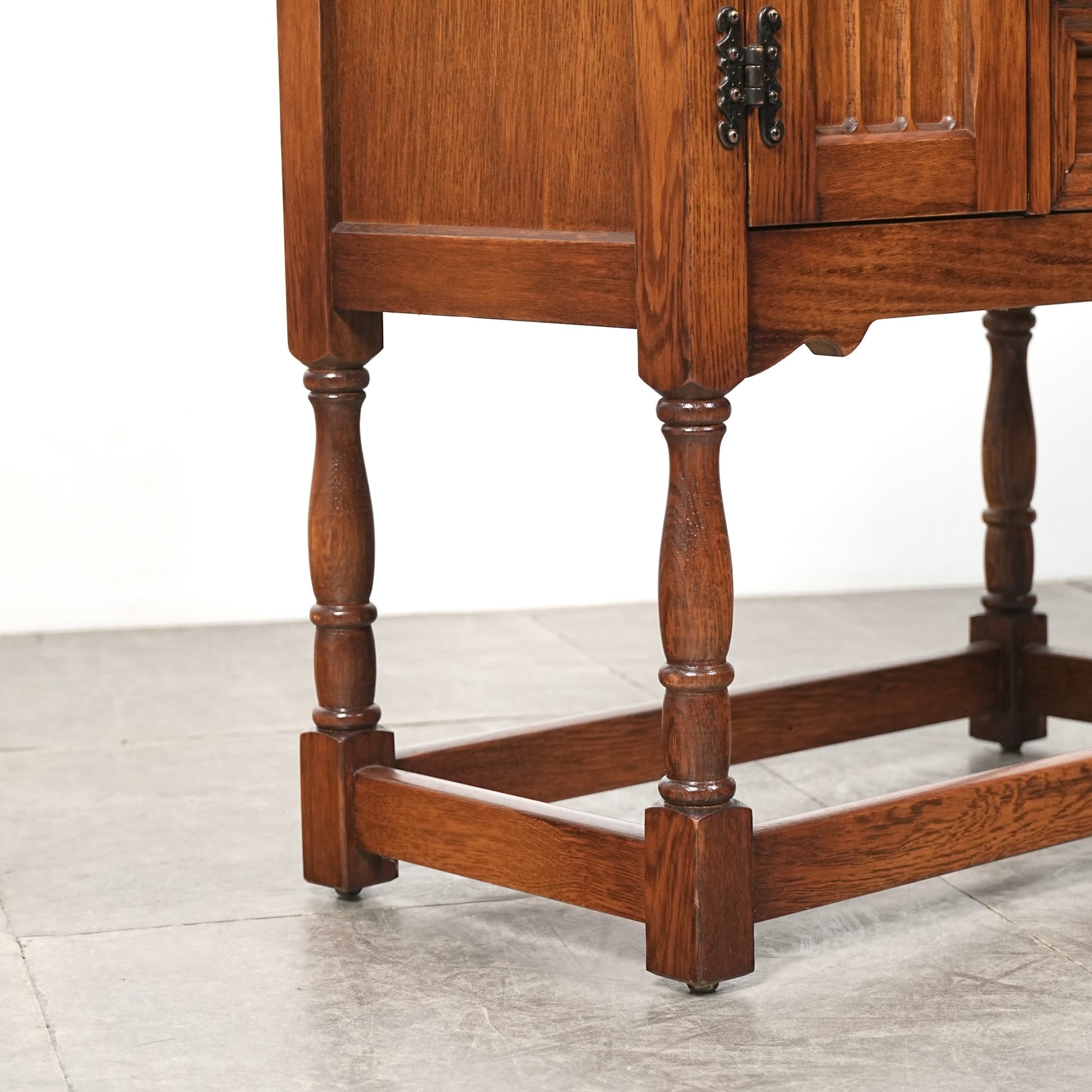 良質なオーク材の深みある木肌とクラシカルな扉の意匠が相まって、英国家具らしい品格を漂わせています。