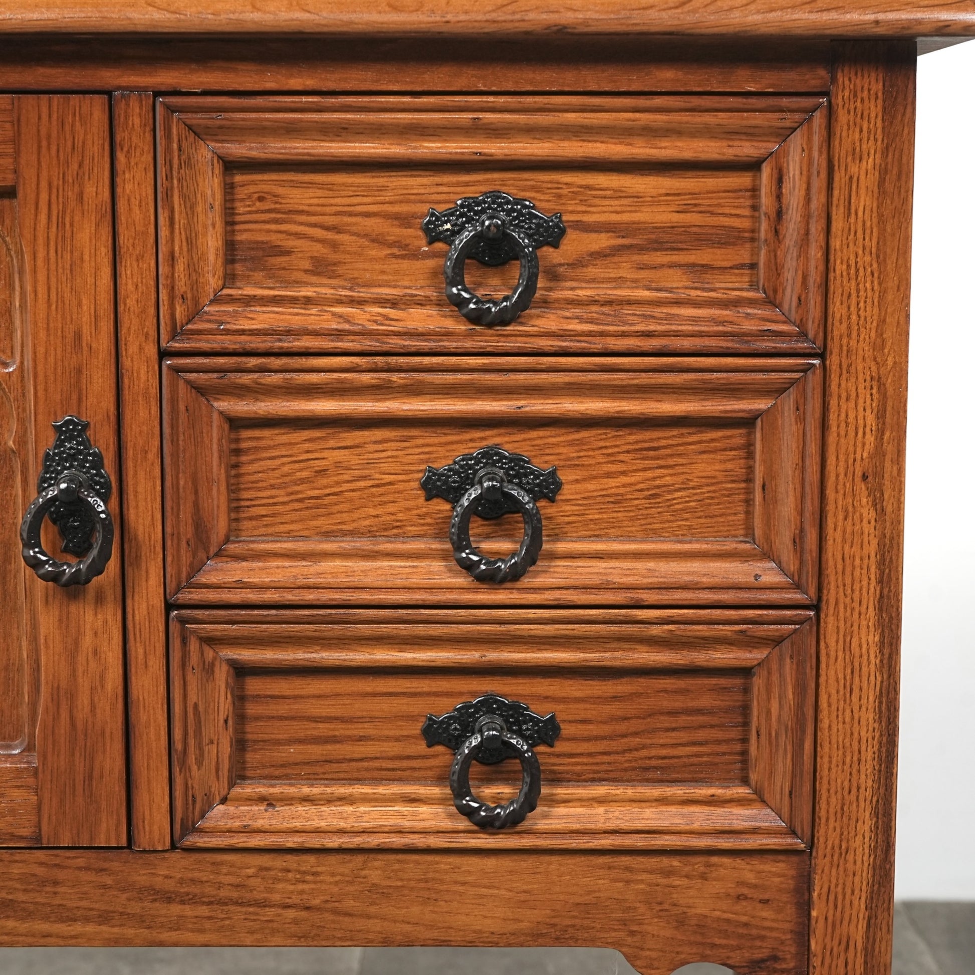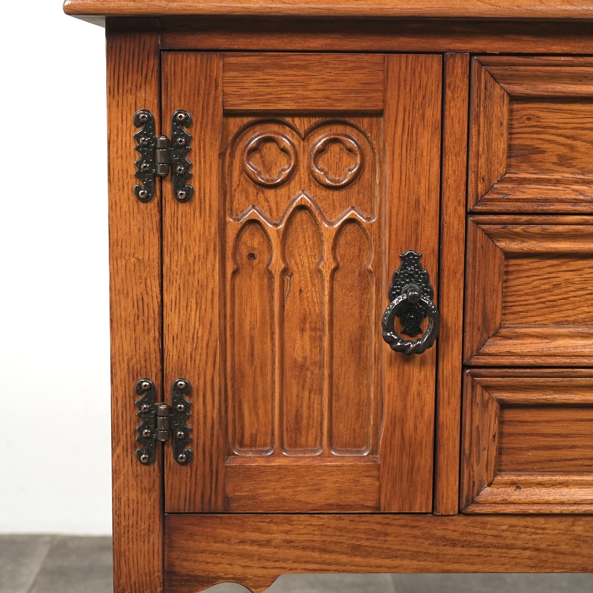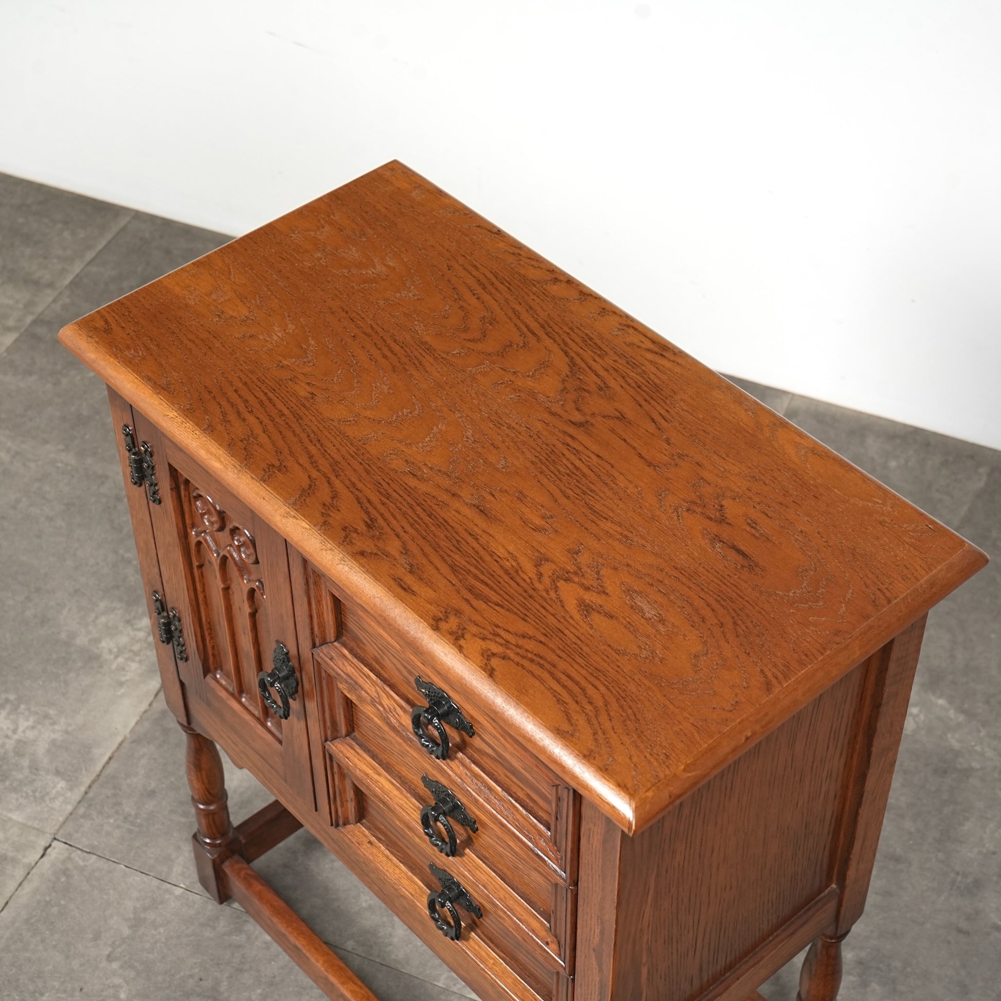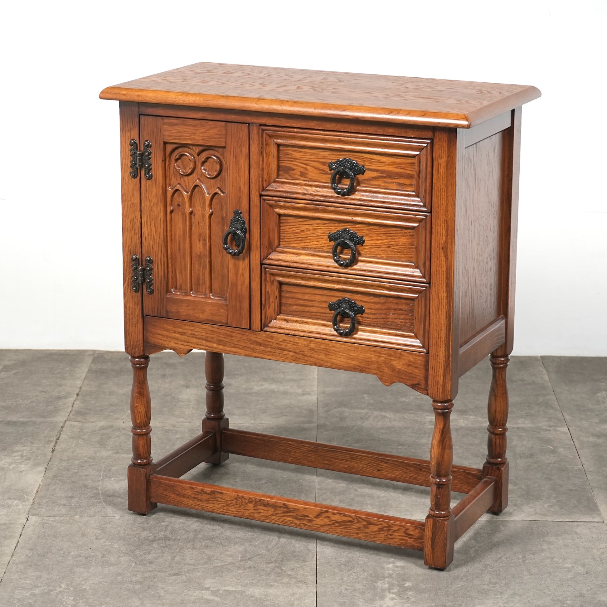 良質なオーク材の深みある木肌とクラシカルな扉の意匠が相まって、英国家具らしい品格を漂わせています。