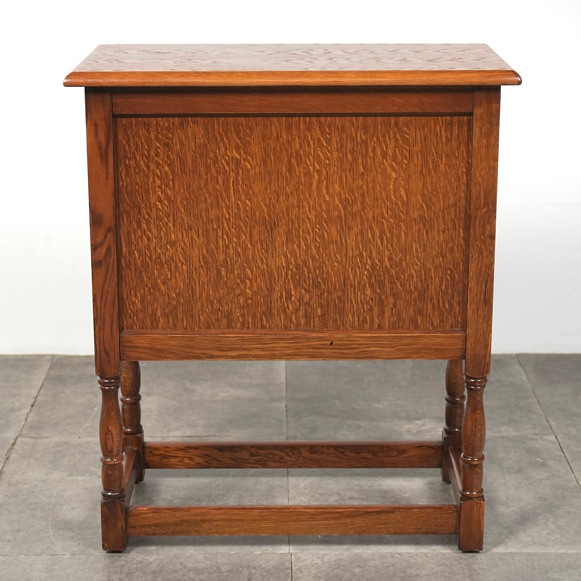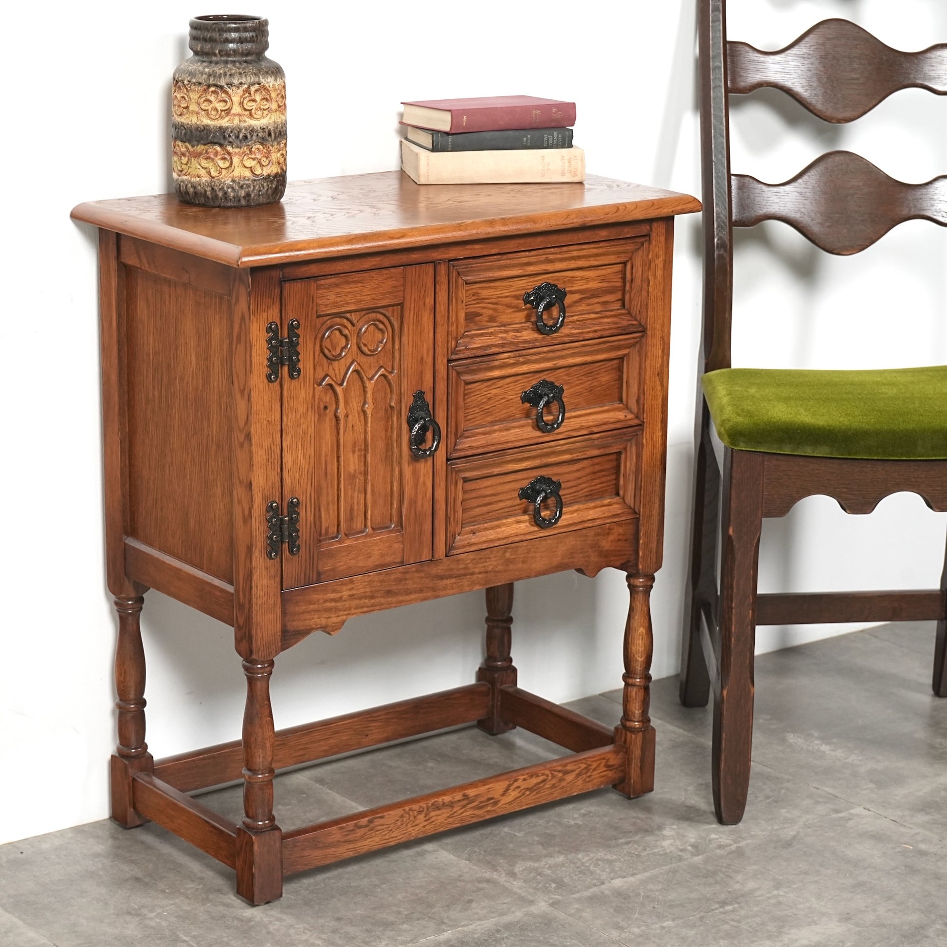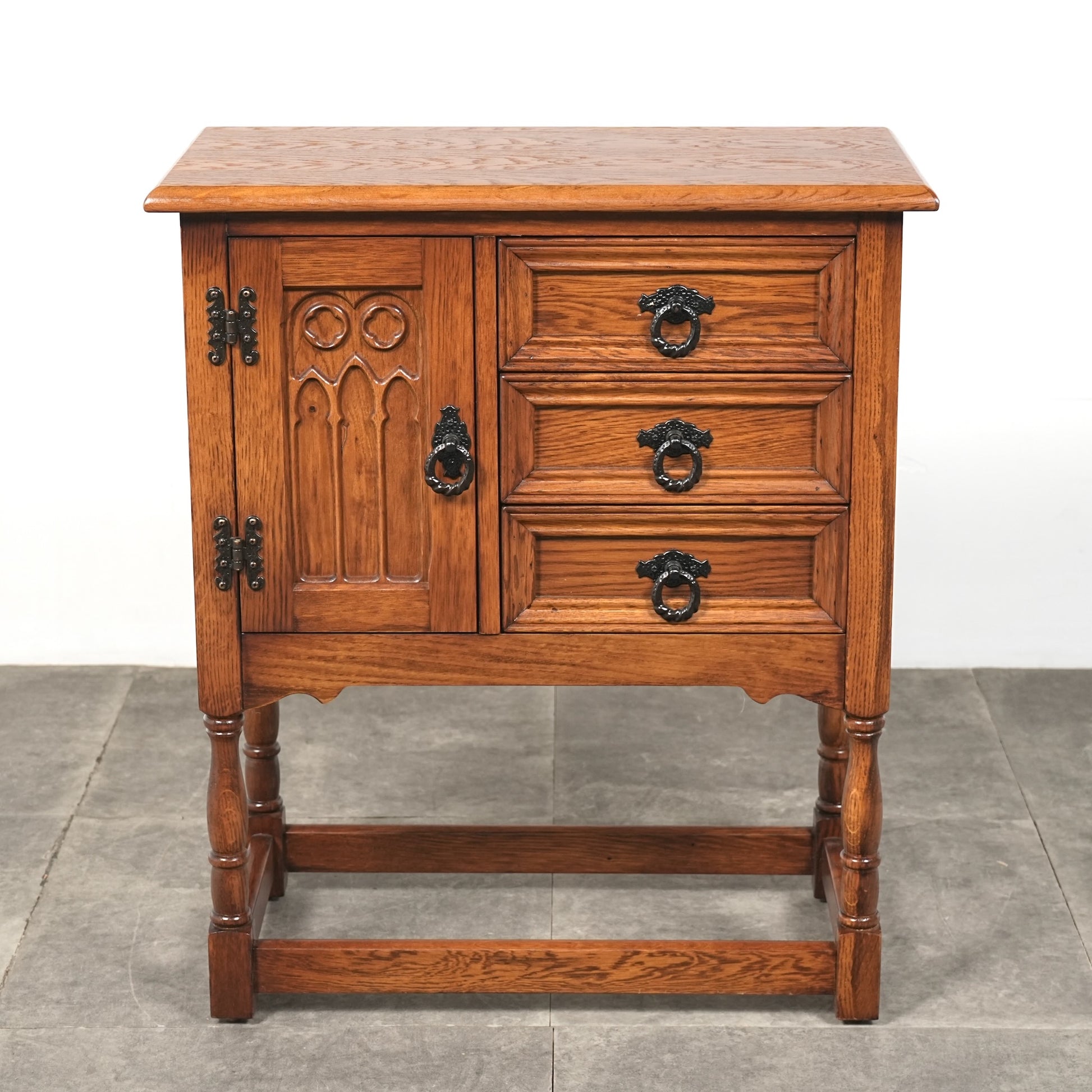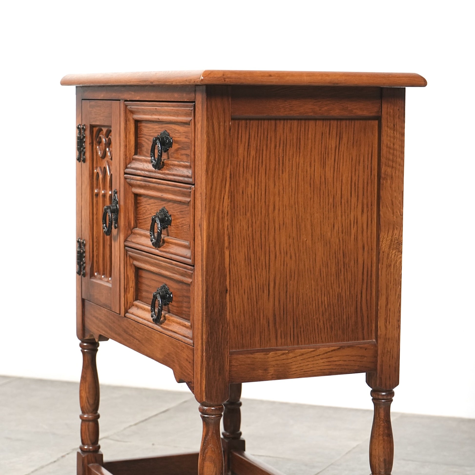 良質なオーク材の深みある木肌とクラシカルな扉の意匠が相まって、英国家具らしい品格を漂わせています。