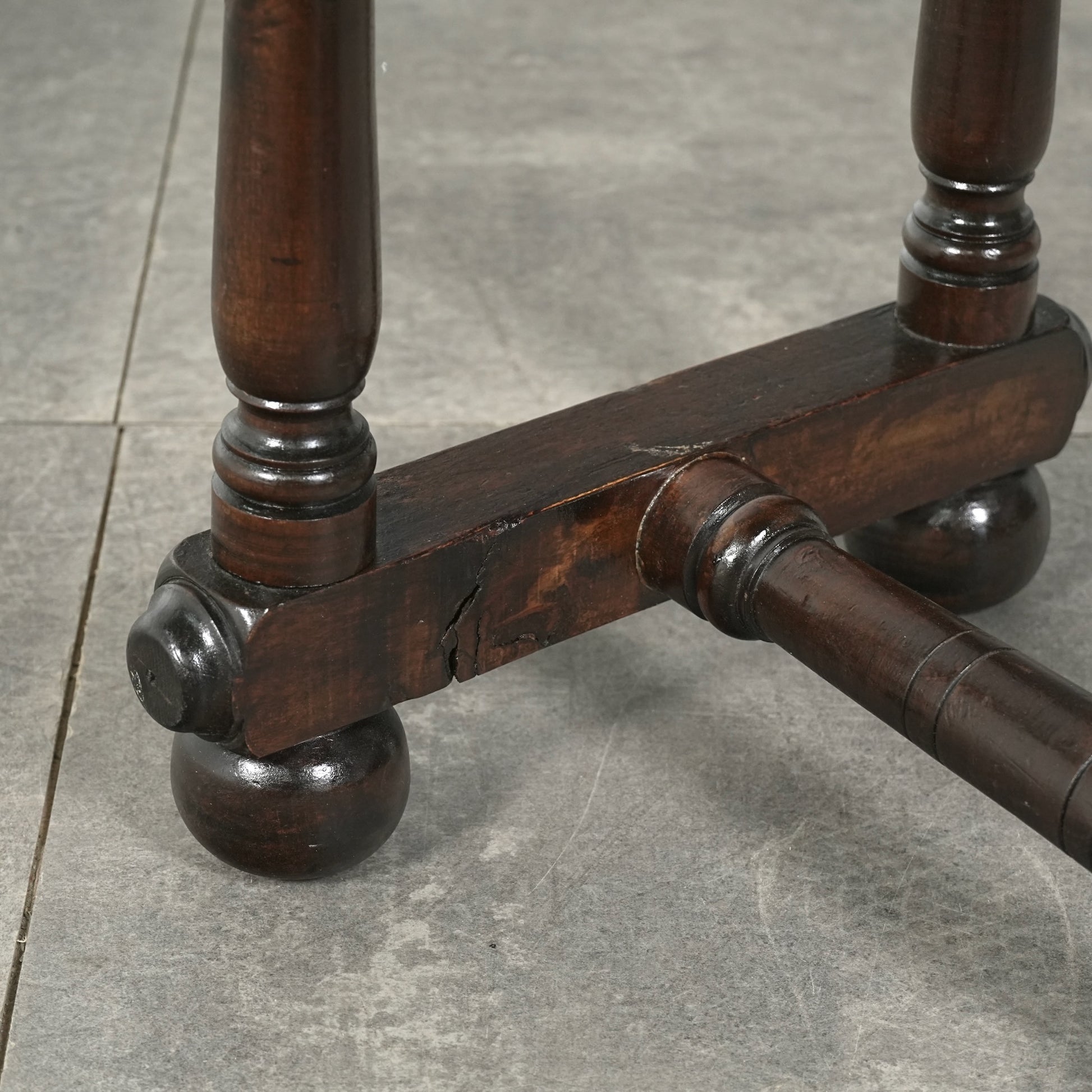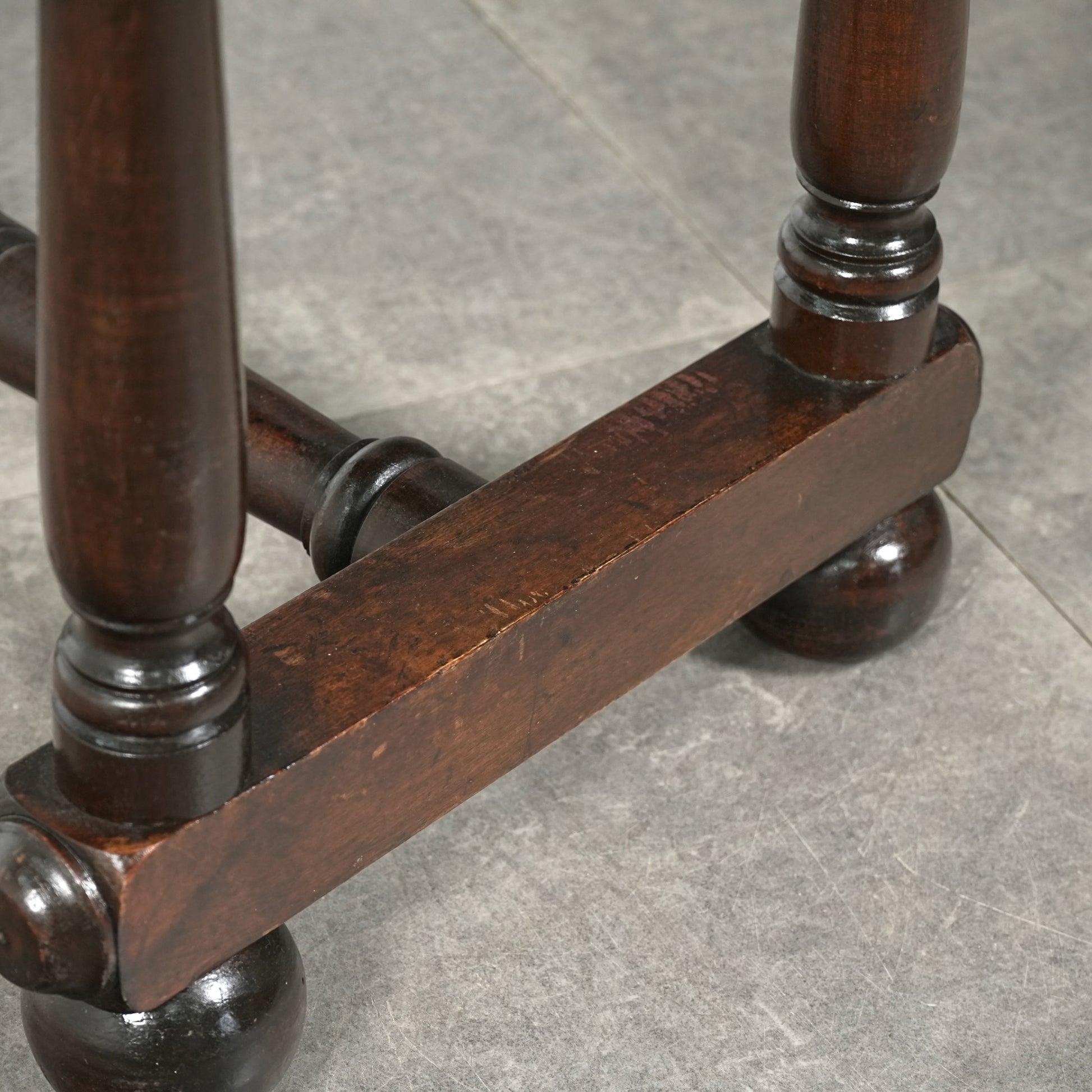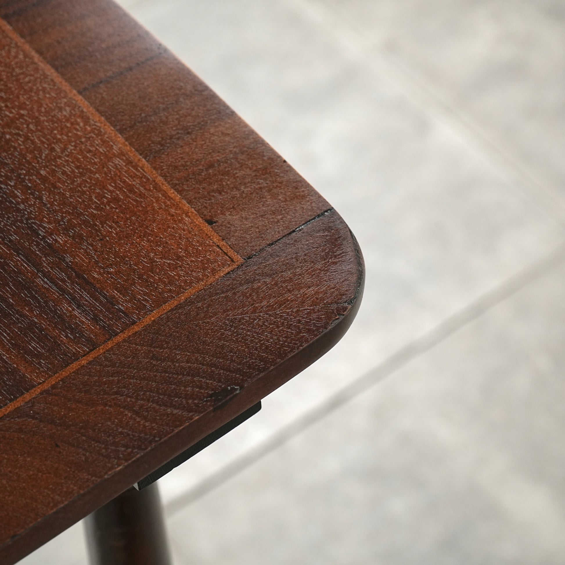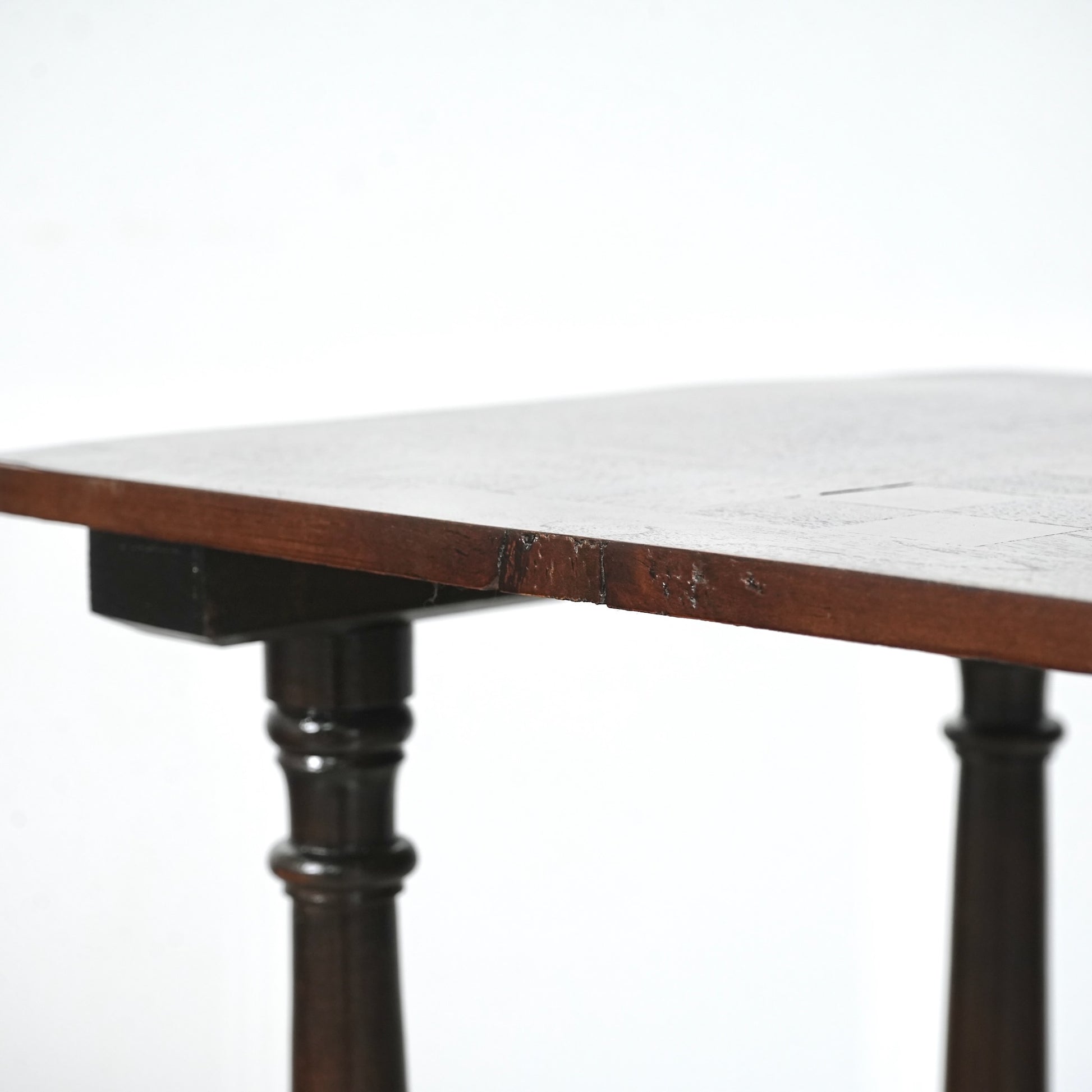 寄木細工で施された天板のチェスボード模様が印象的で、当時の職人の丁寧な作業が光ります。