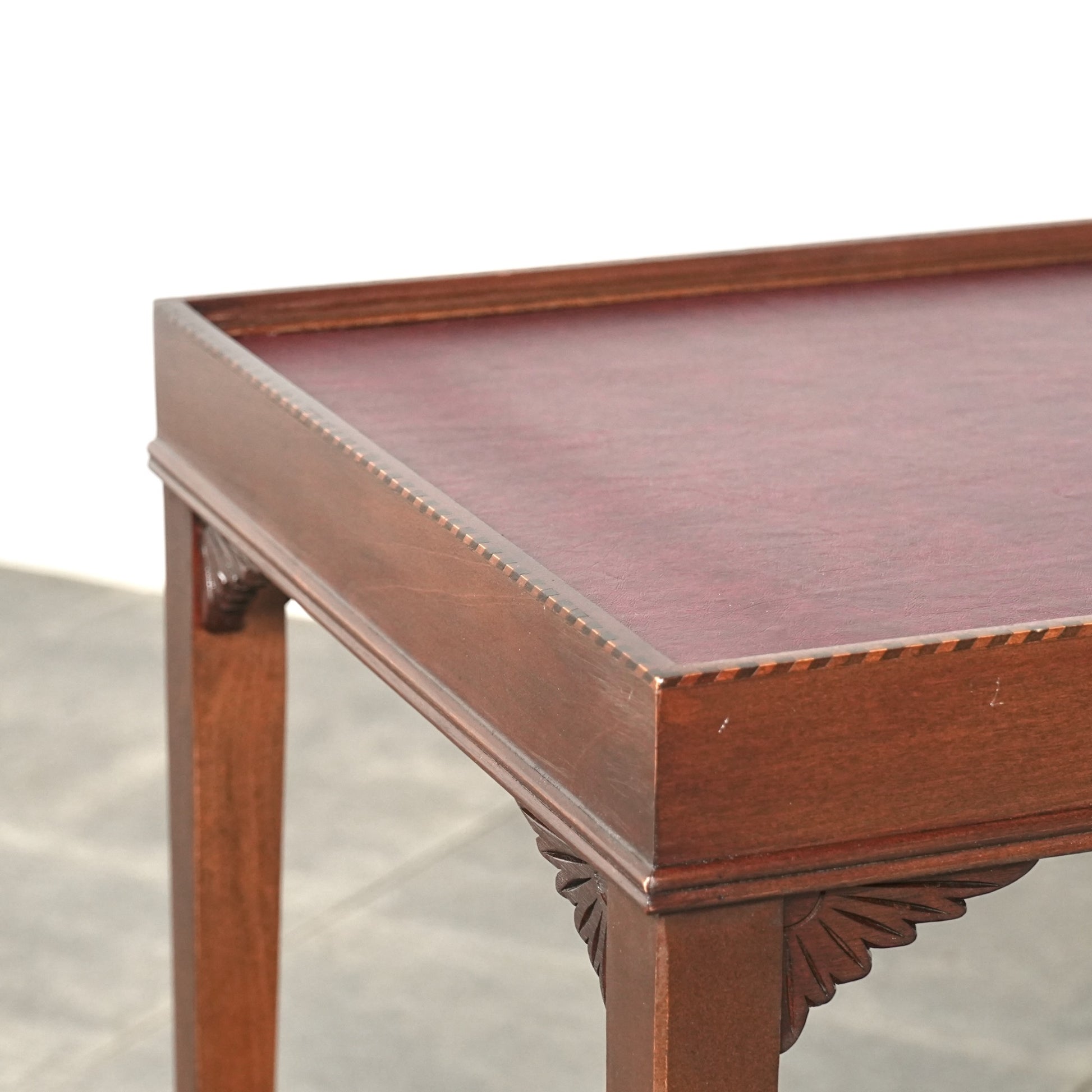主張しすぎないクラシックな佇まいが魅力的で、天板縁にはさり気ないインレイ(象嵌細工)も施されています。